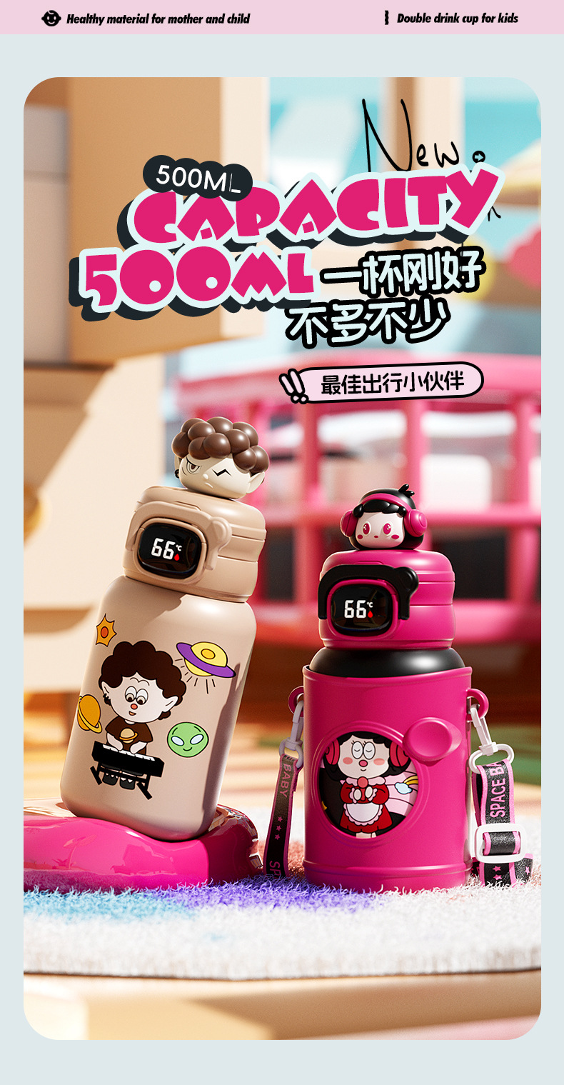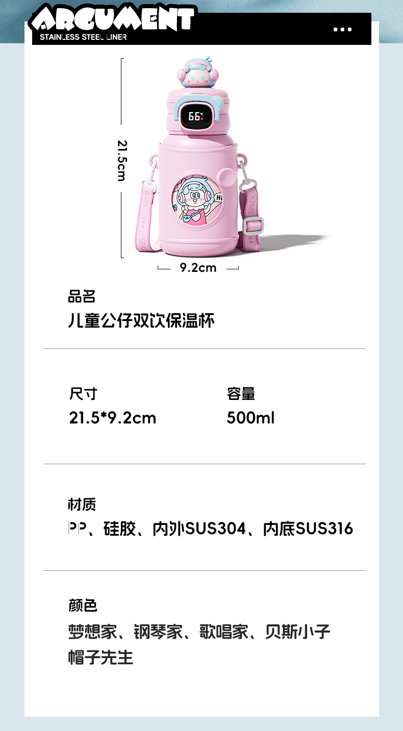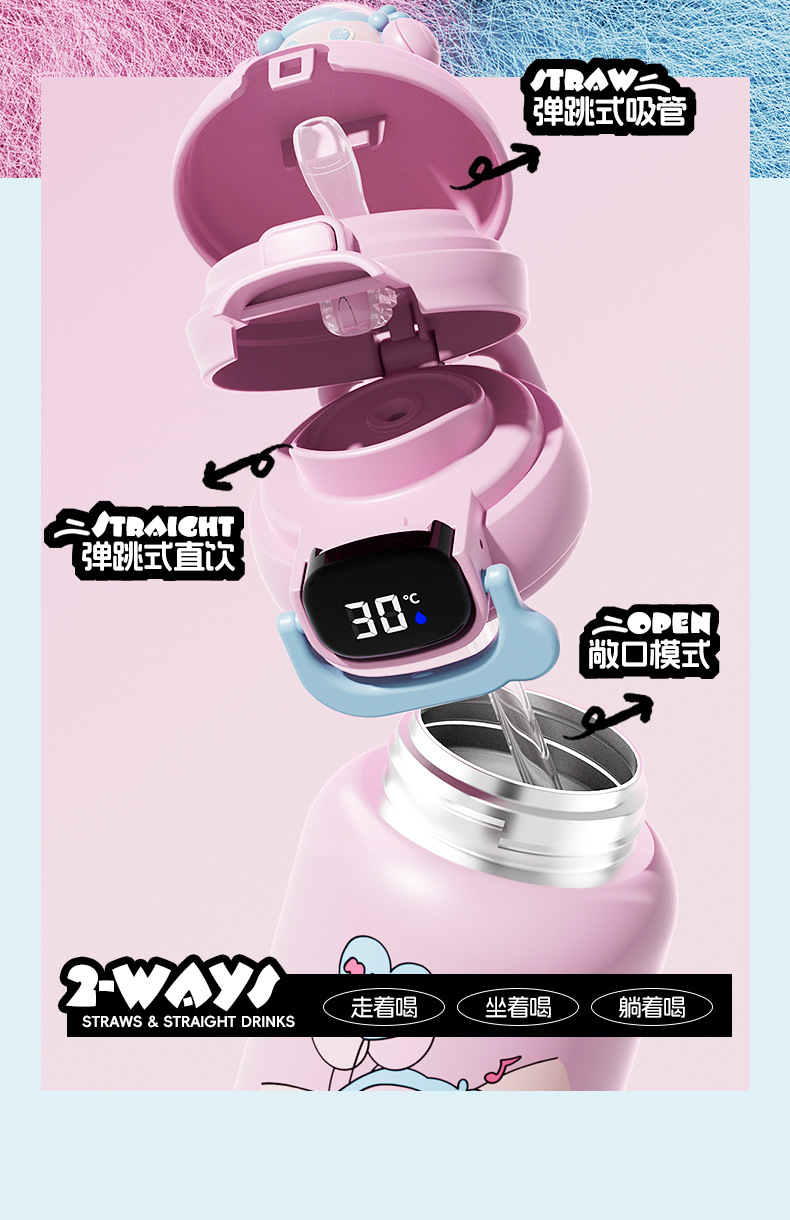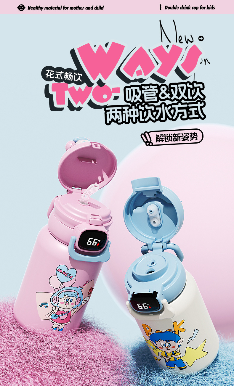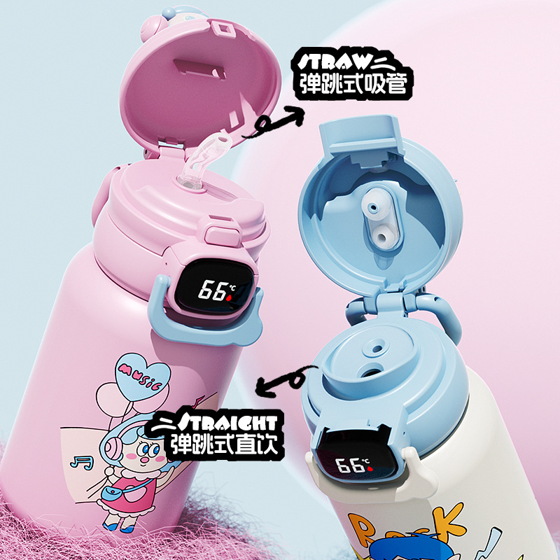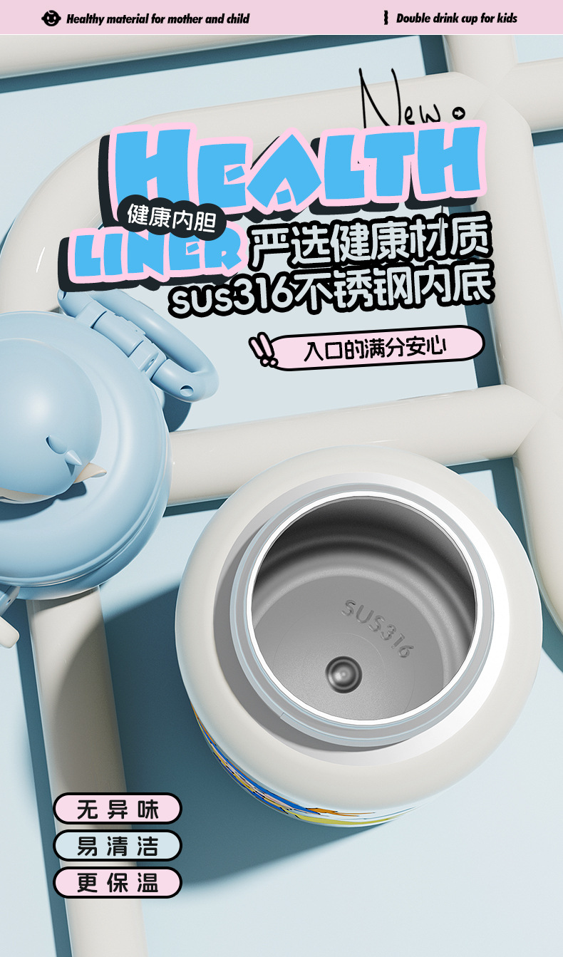 2025新款双饮弹跳吸管水杯316不锈钢保温杯便携可爱学生儿童杯