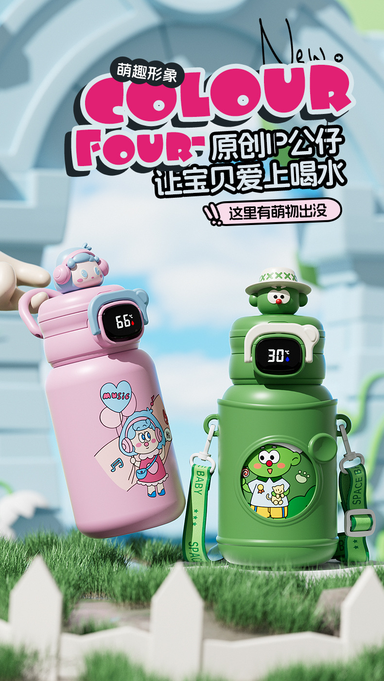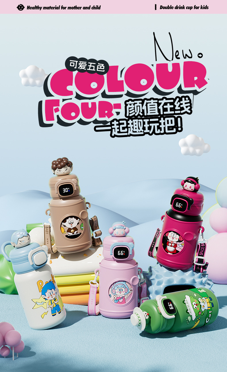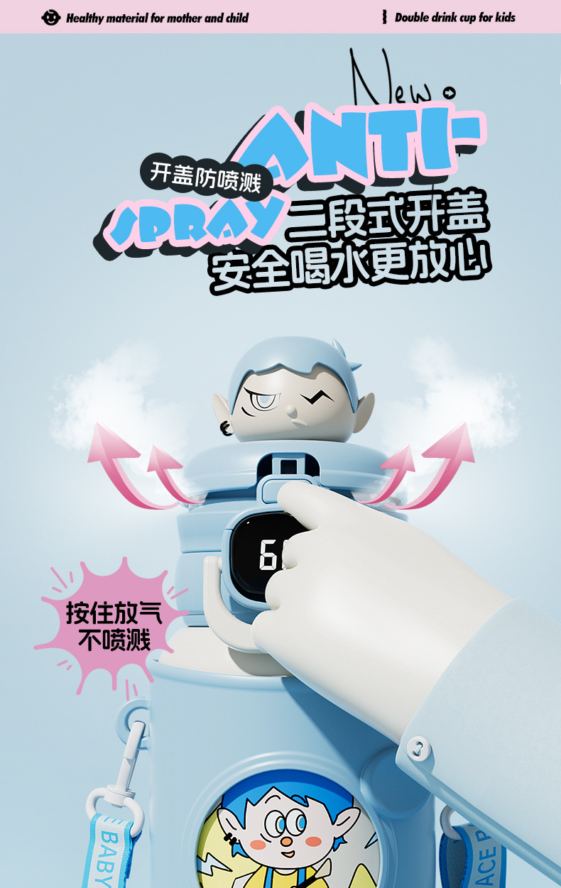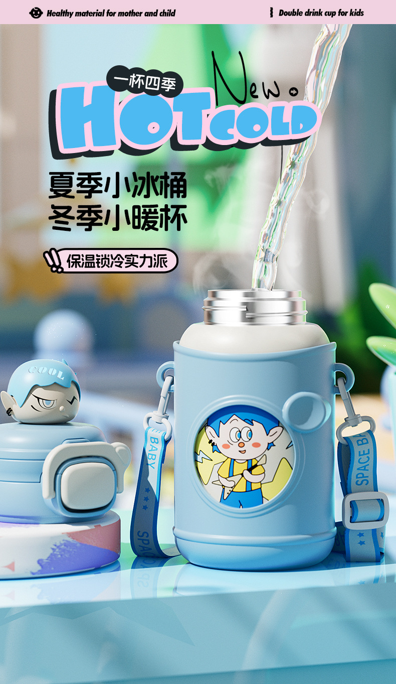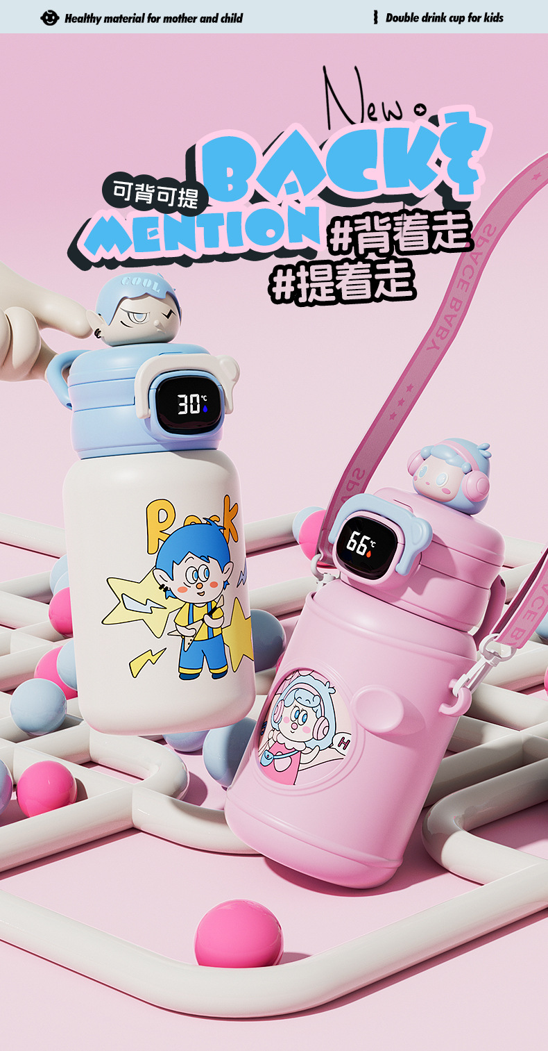 2025新款双饮弹跳吸管水杯316不锈钢保温杯便携可爱学生儿童杯