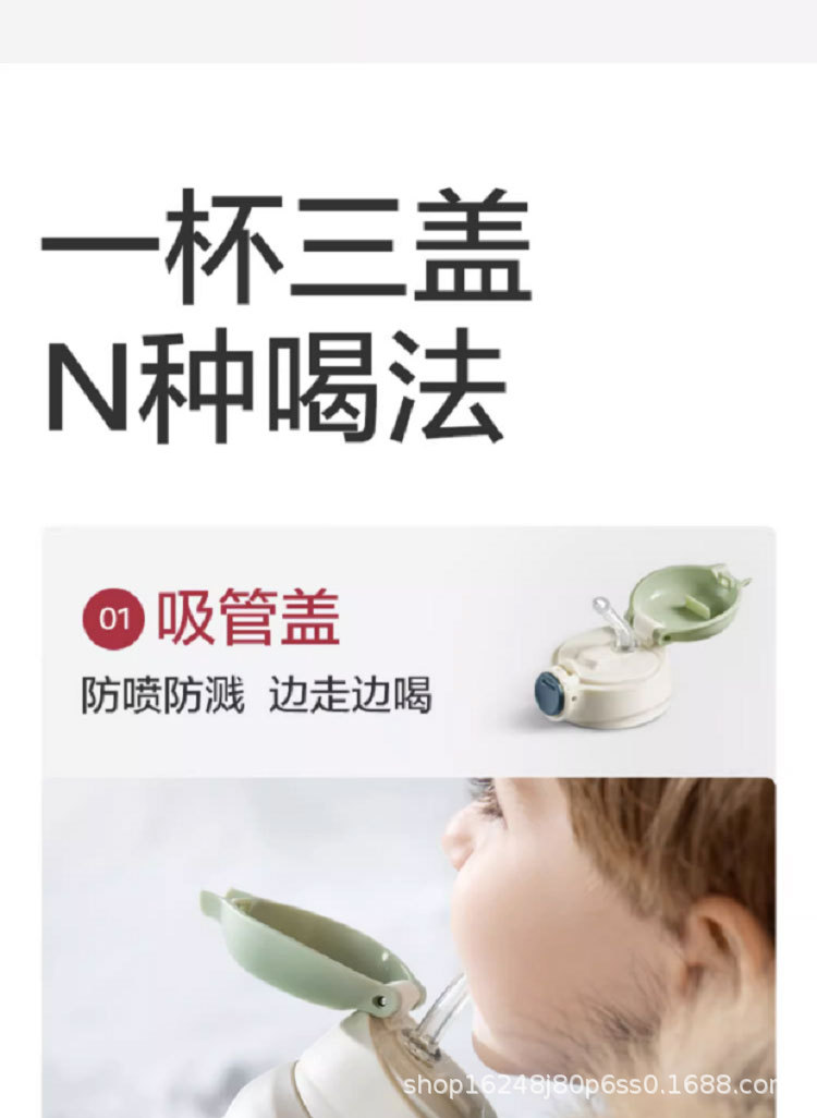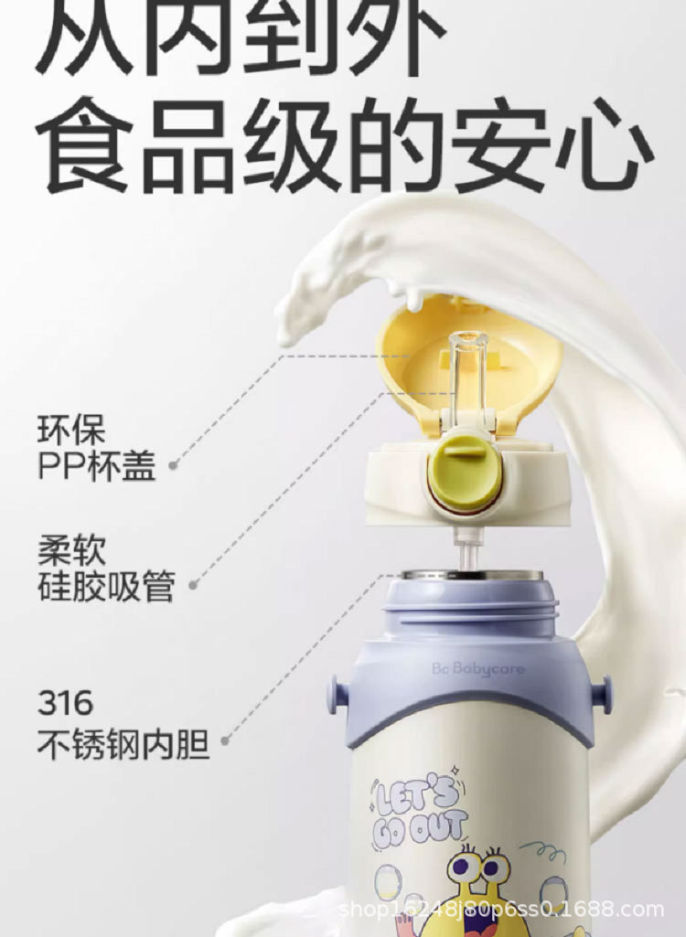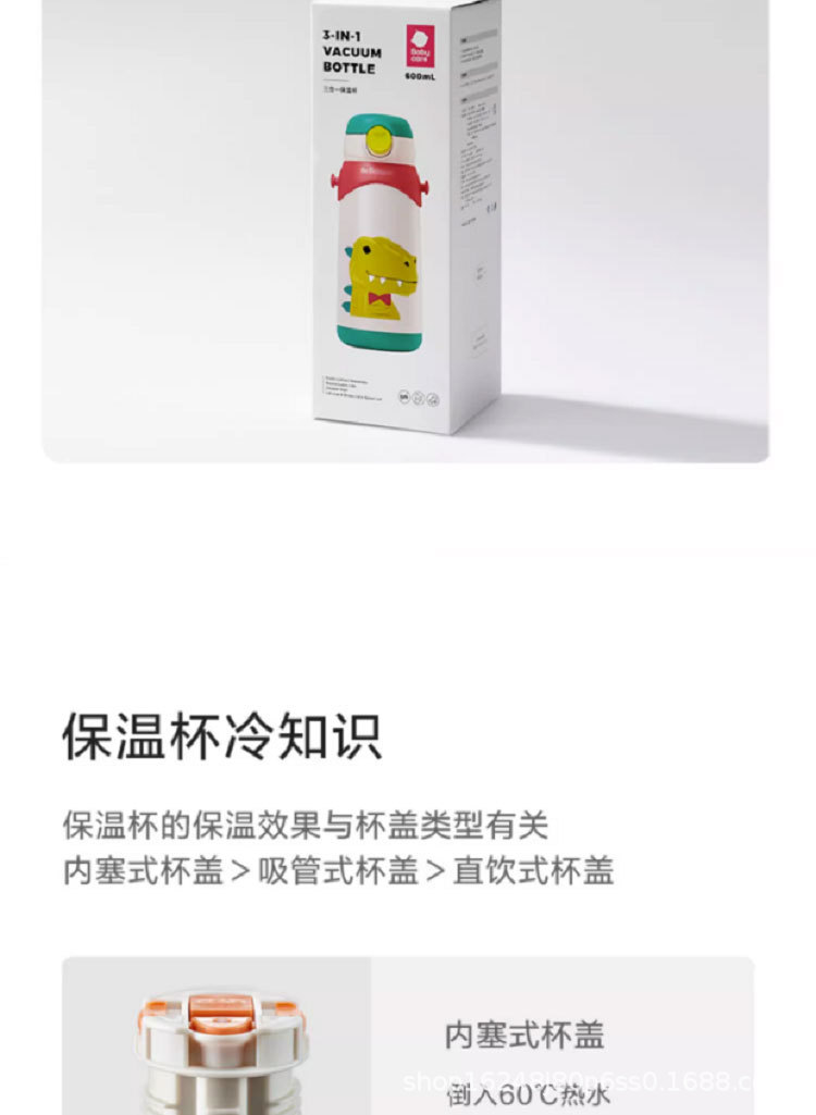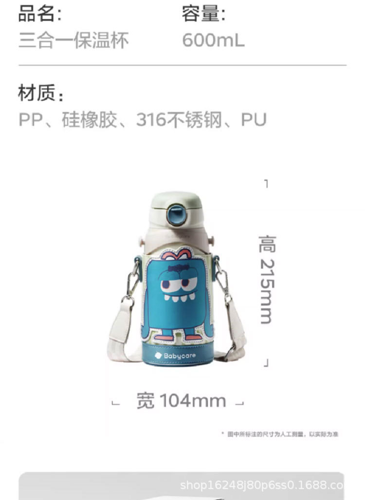 babycare保温杯大容量三合一儿童吸管杯礼品不锈钢喝水杯子礼盒
