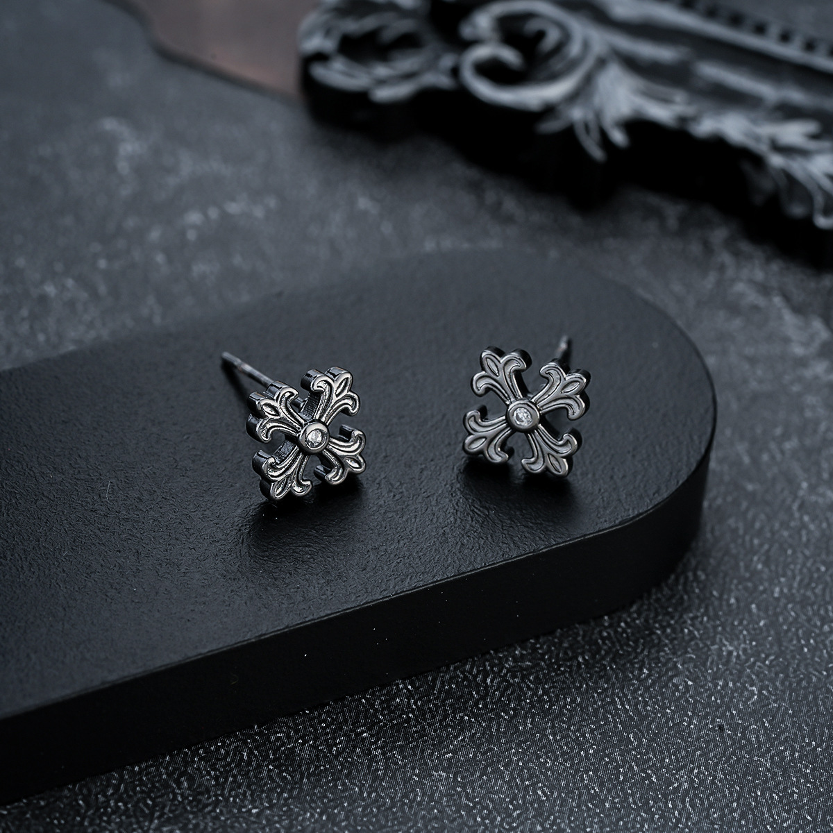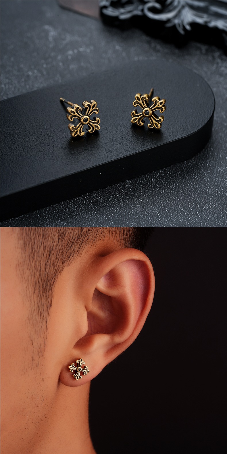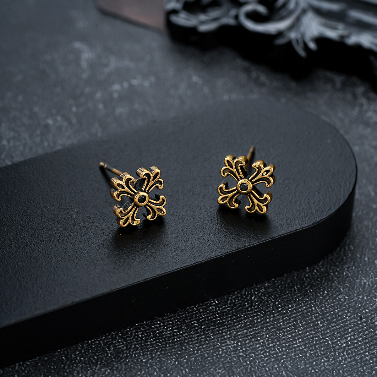 复古做旧十字架耳钉男痞帅时尚潮流个性设计耳扣女高级感百搭耳饰
