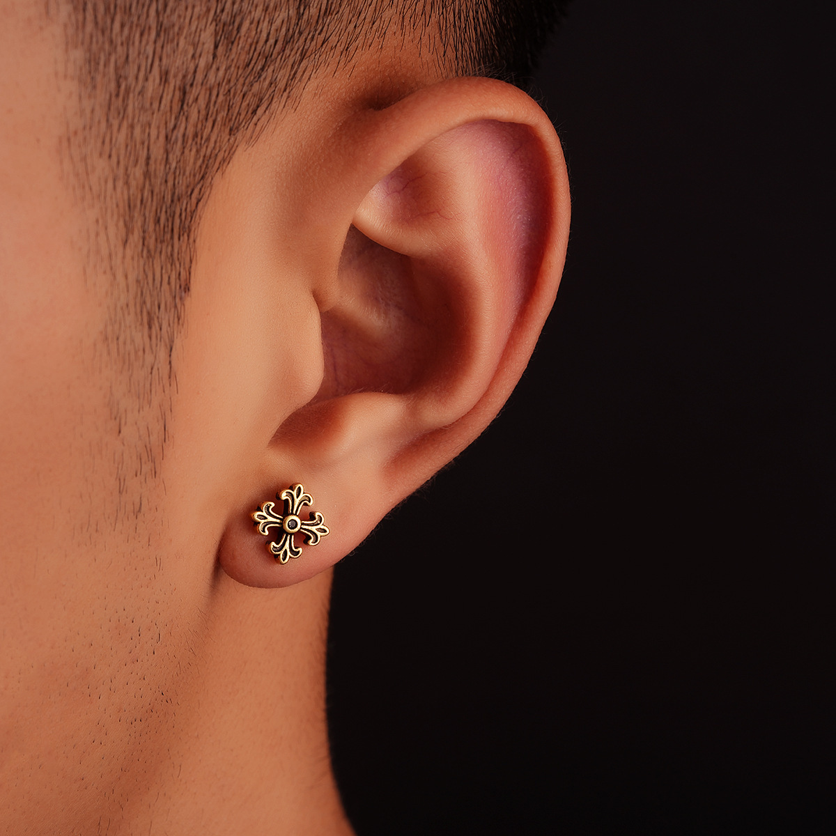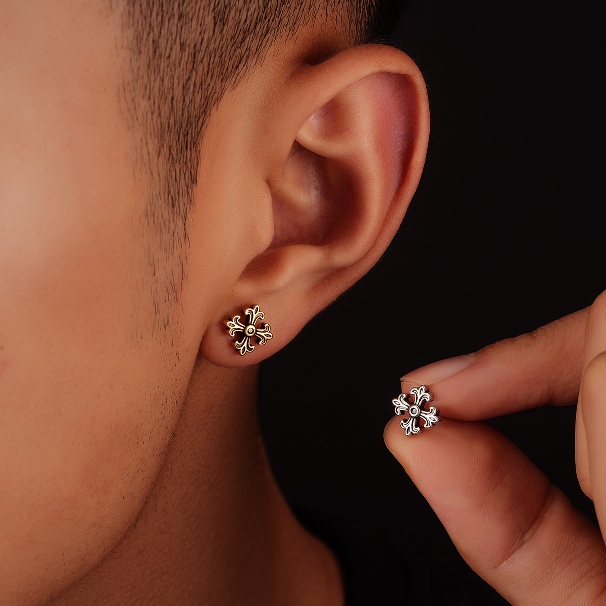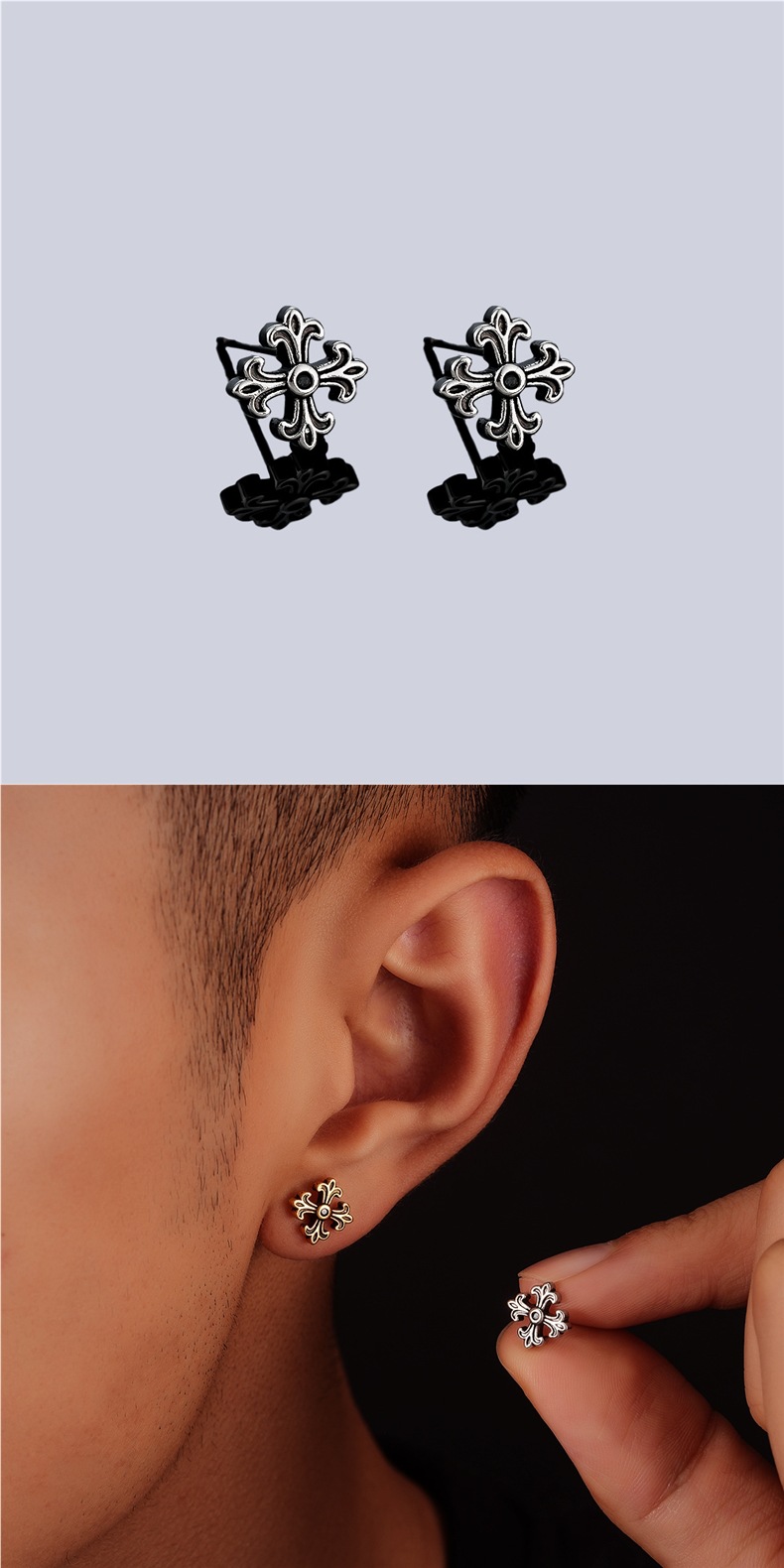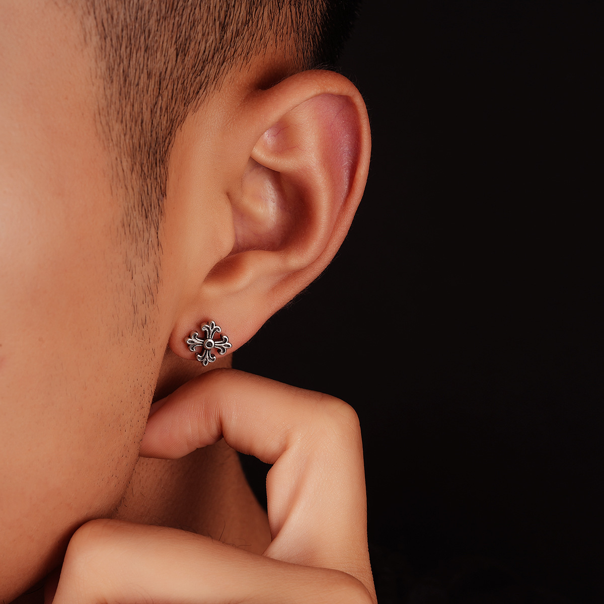 复古做旧十字架耳钉男痞帅时尚潮流个性设计耳扣女高级感百搭耳饰
