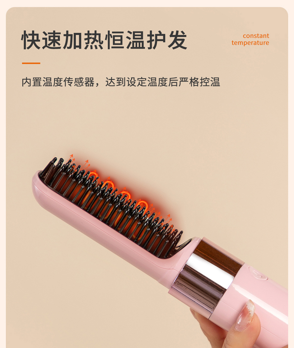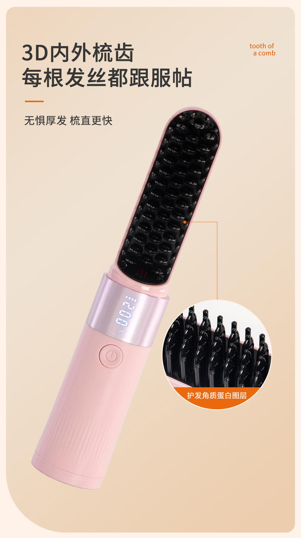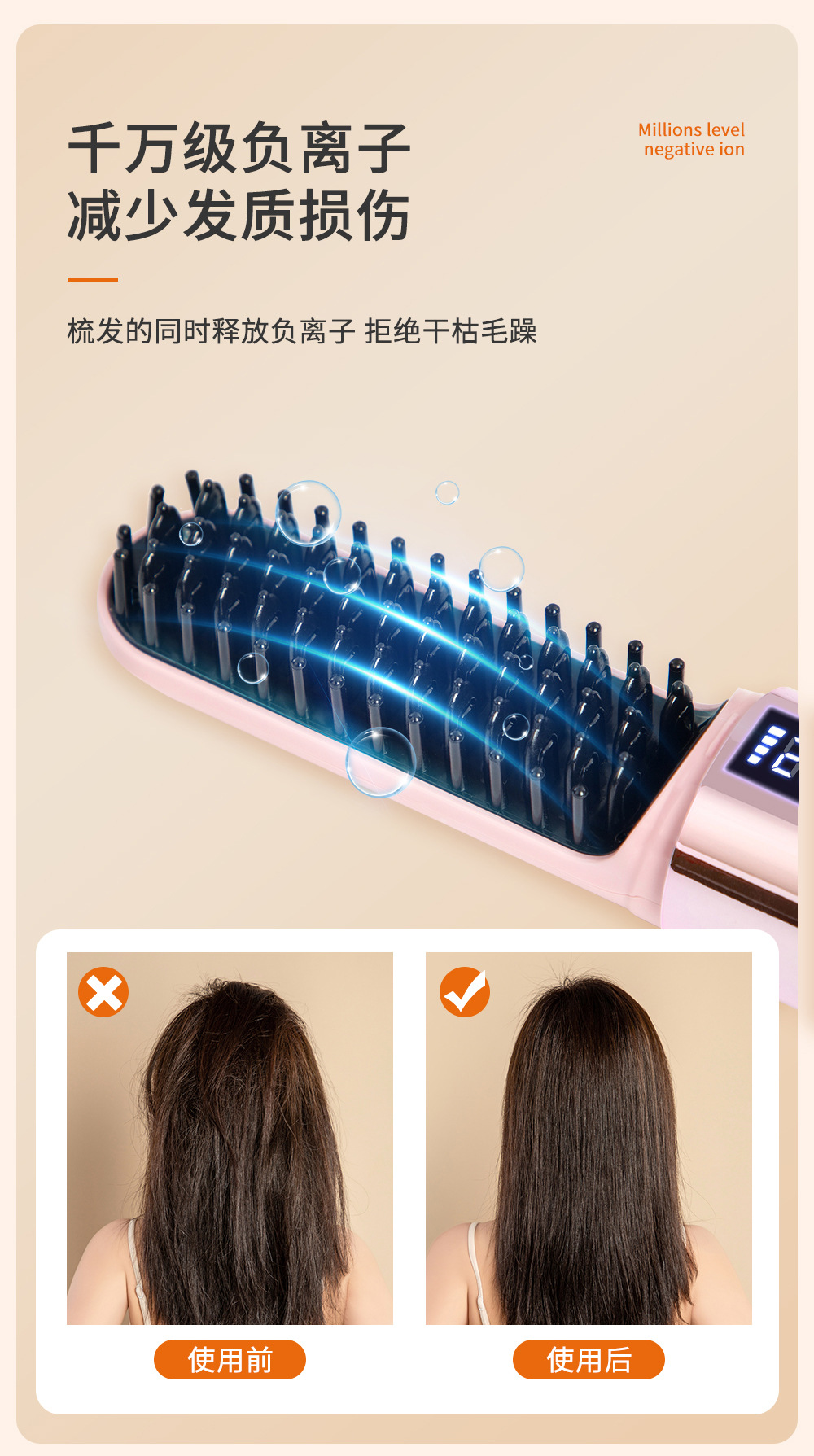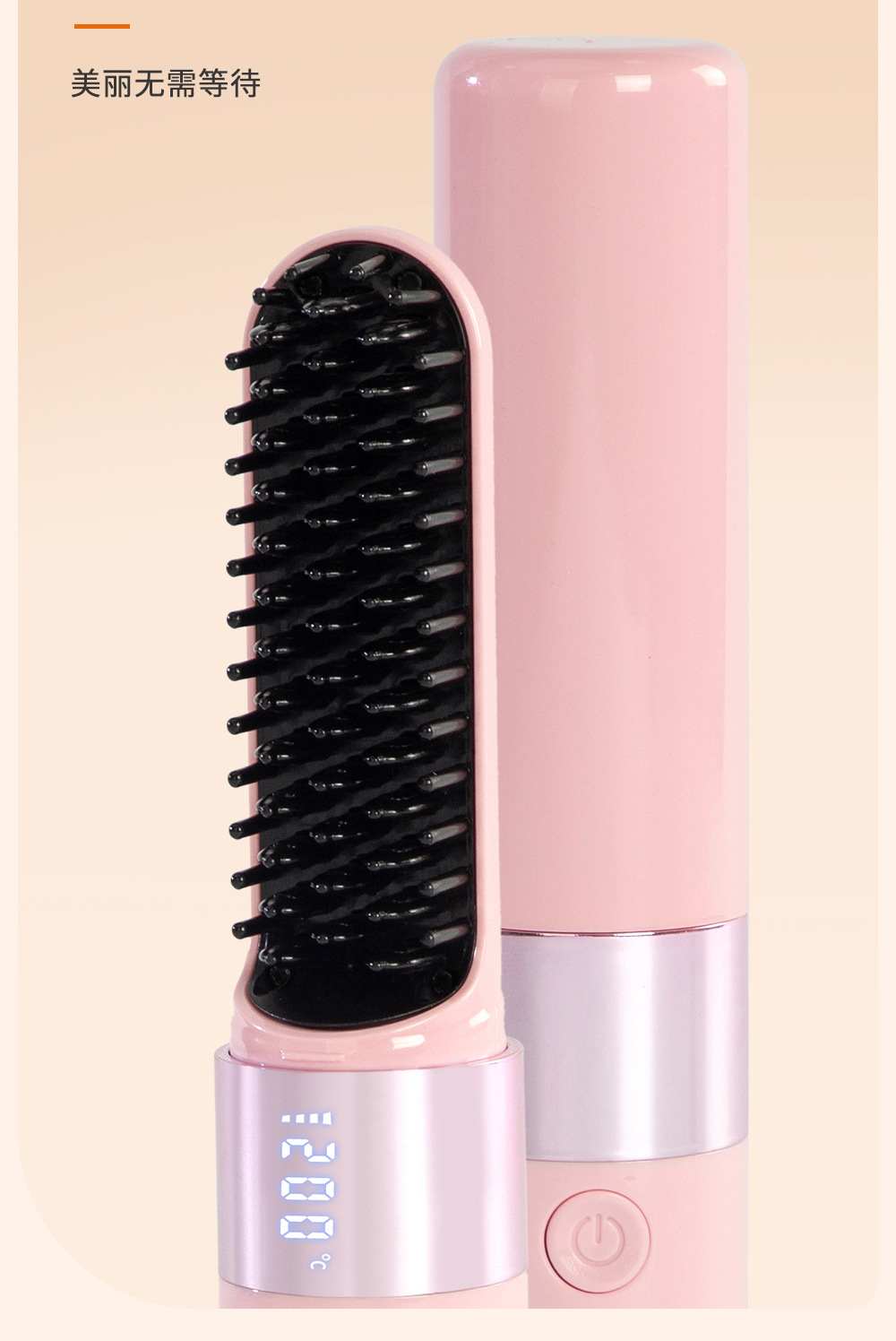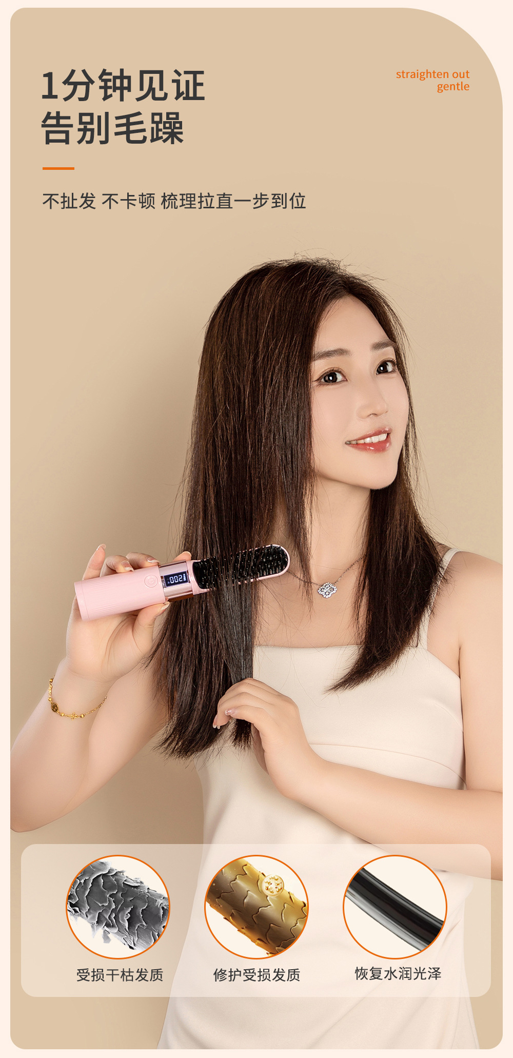 跨境家用直发梳新款无线便携负离子不伤发直发器懒人两用卷发棒