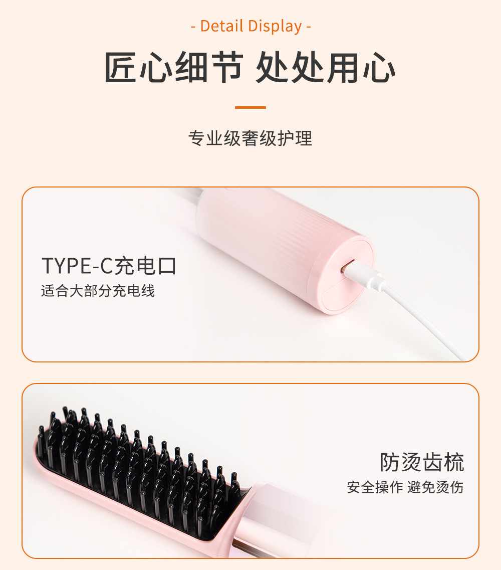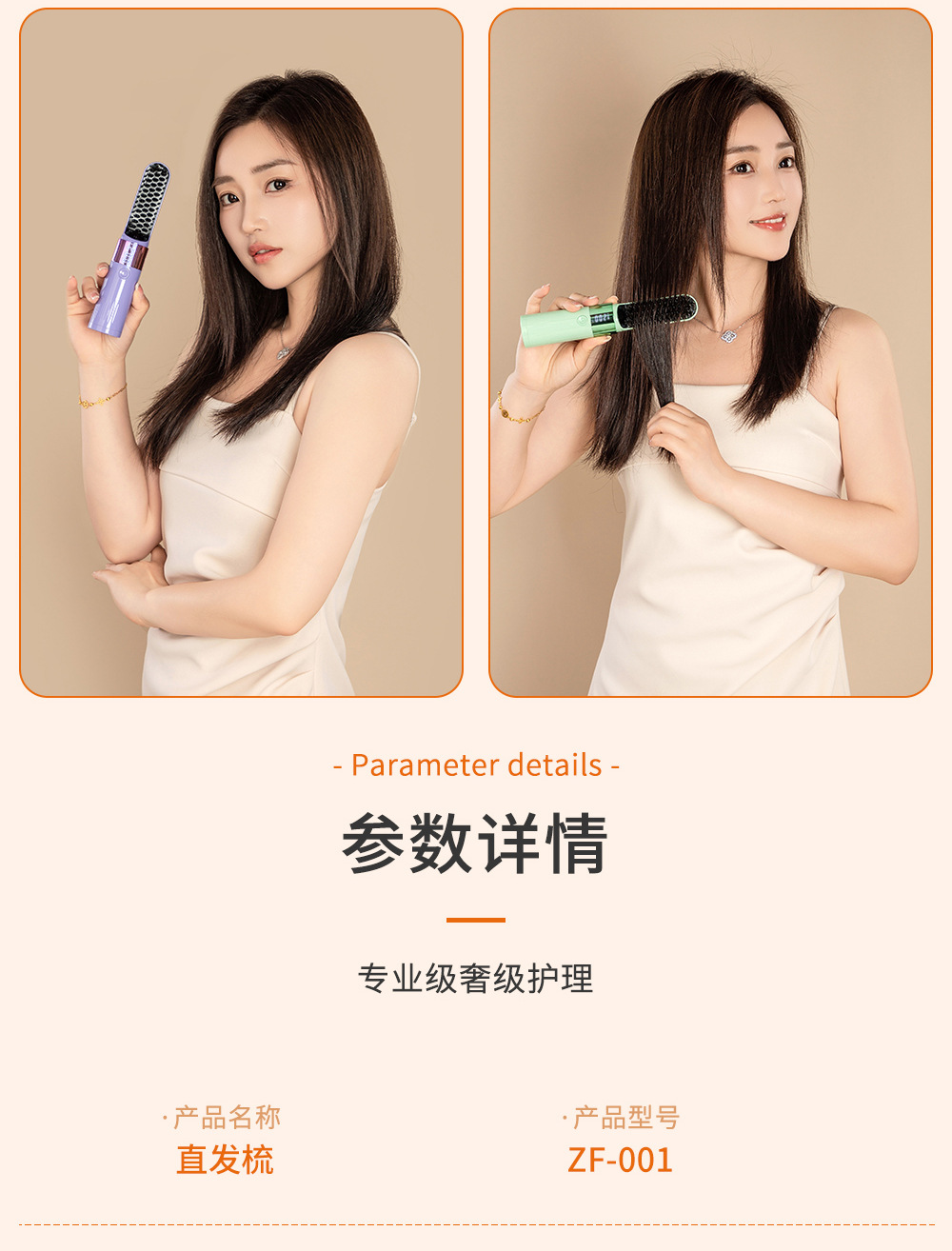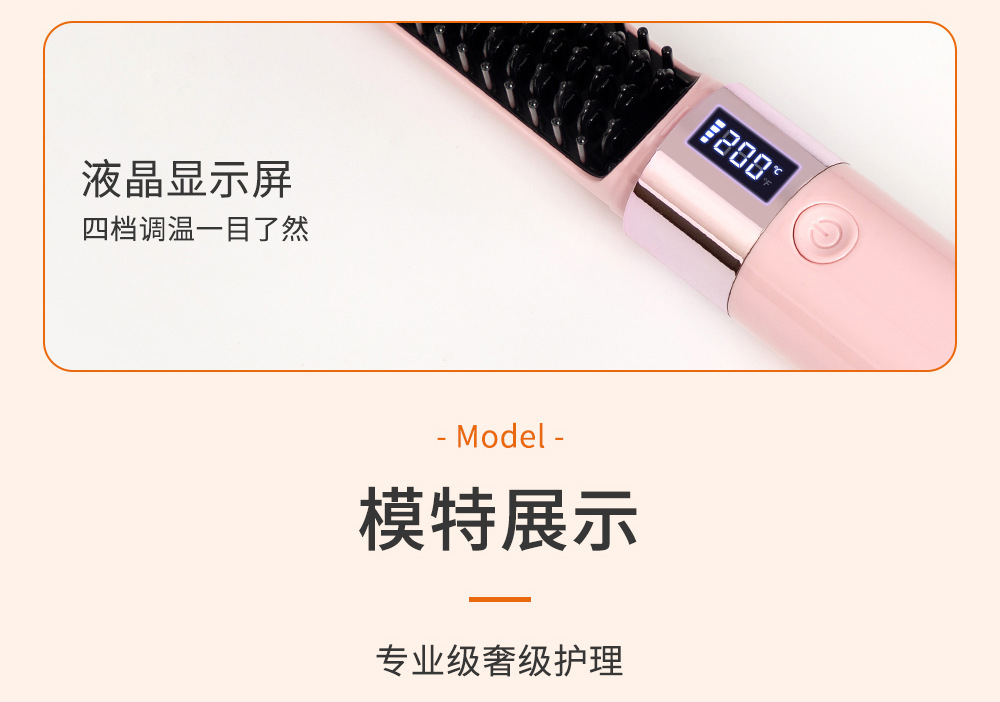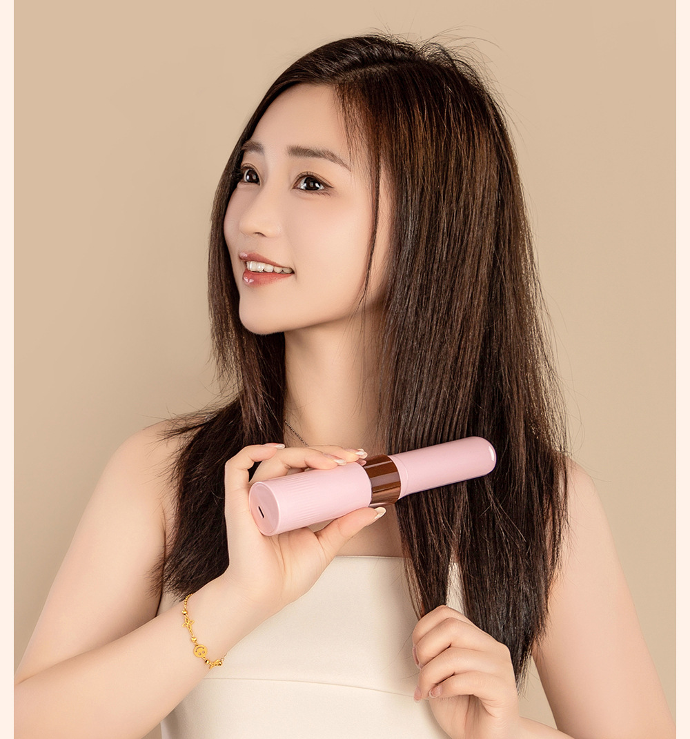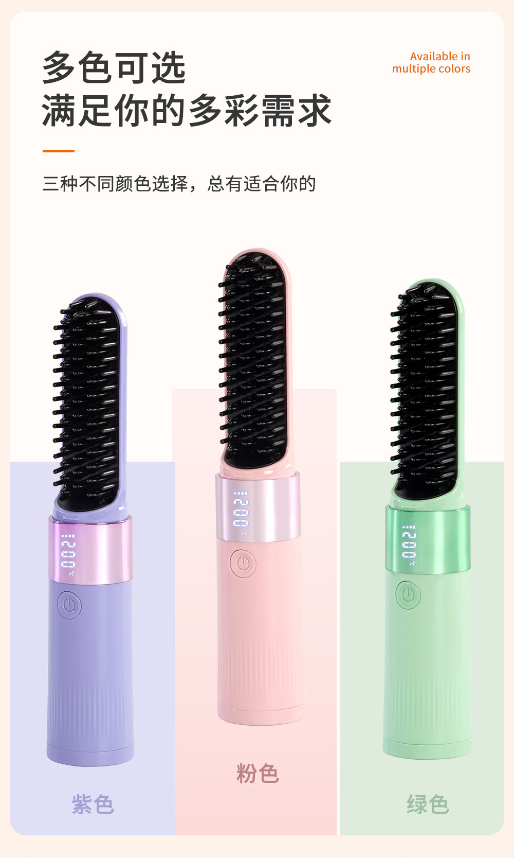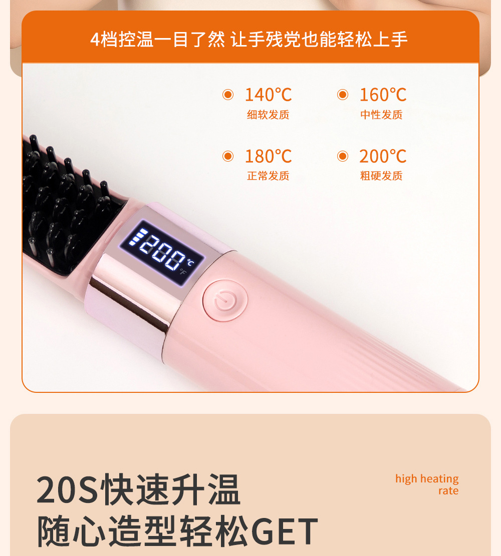 跨境家用直发梳新款无线便携负离子不伤发直发器懒人两用卷发棒