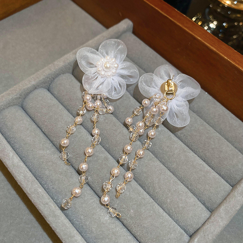 超仙花朵流苏耳环高级感小众气质度假风耳钉夏日花海百搭耳饰批发