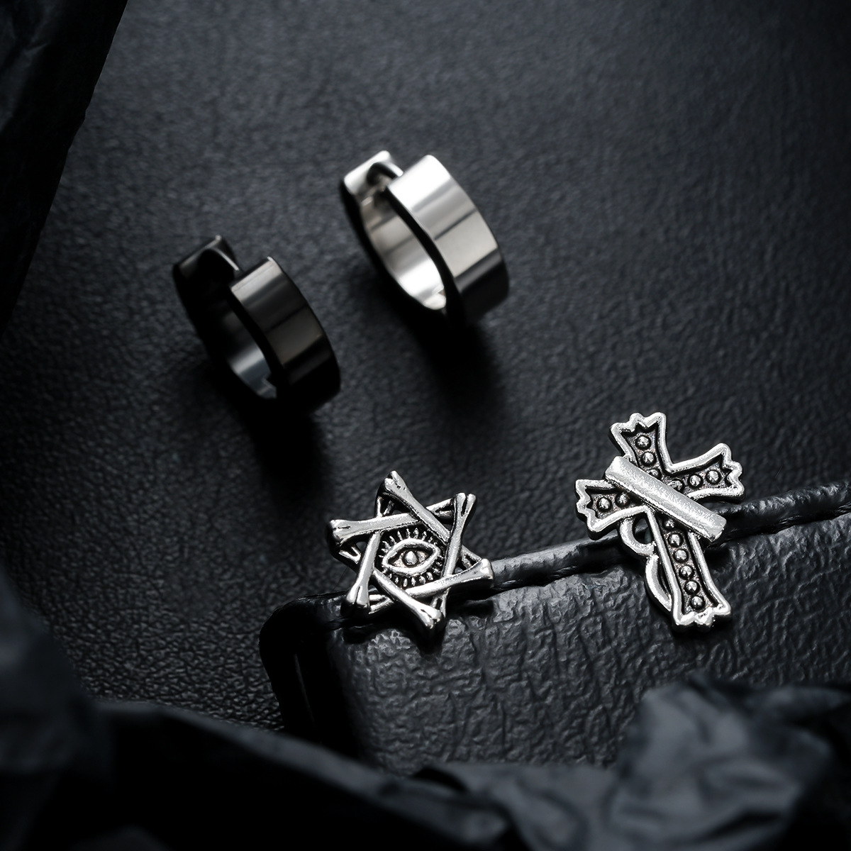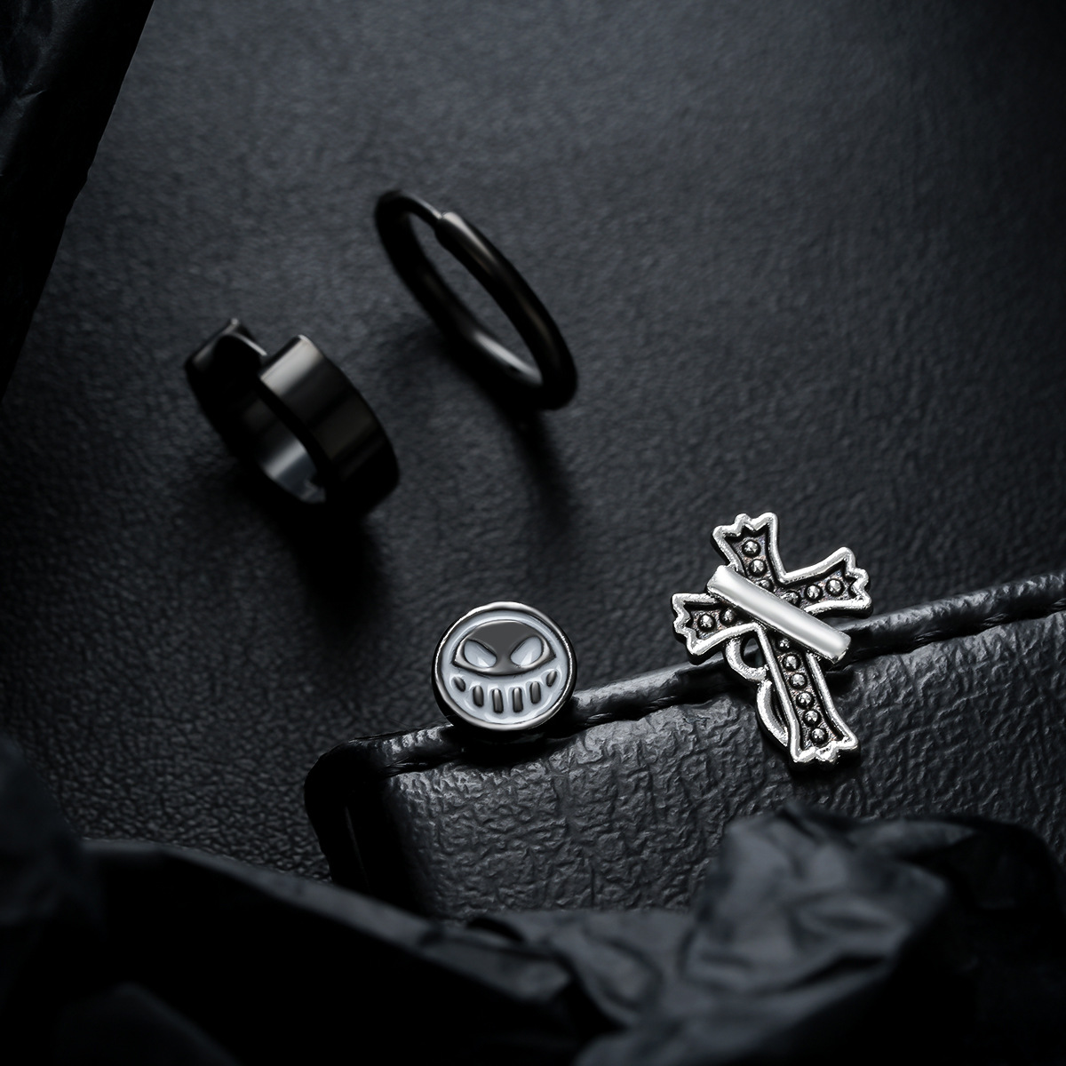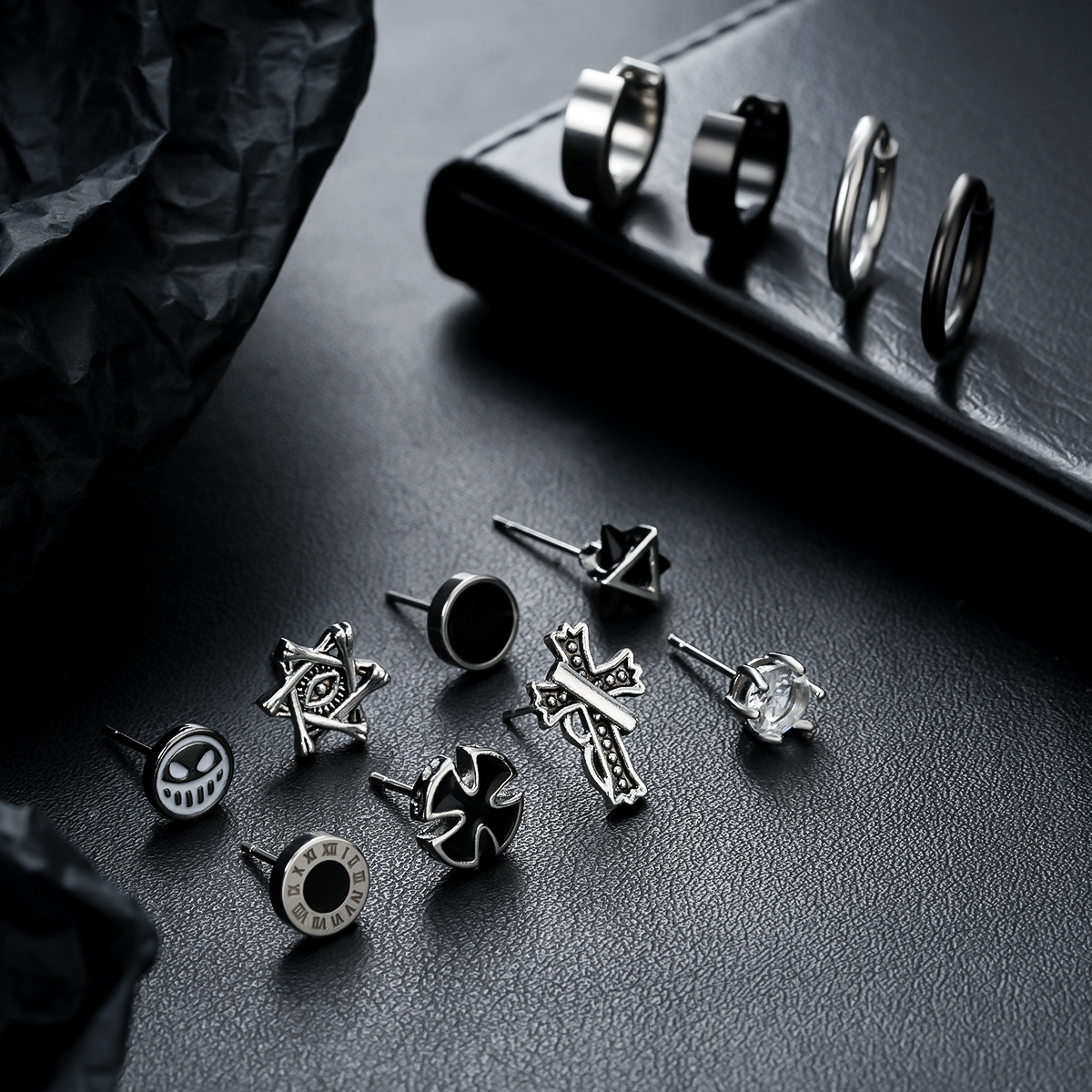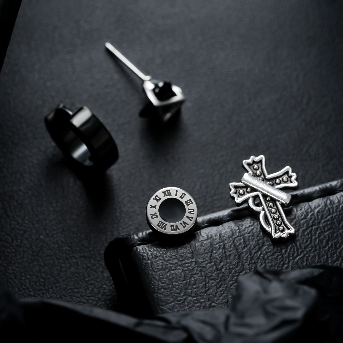 钛钢耳钉男套装痞帅潮流耳饰街头百搭耳环女街头嘻哈简约单只配饰