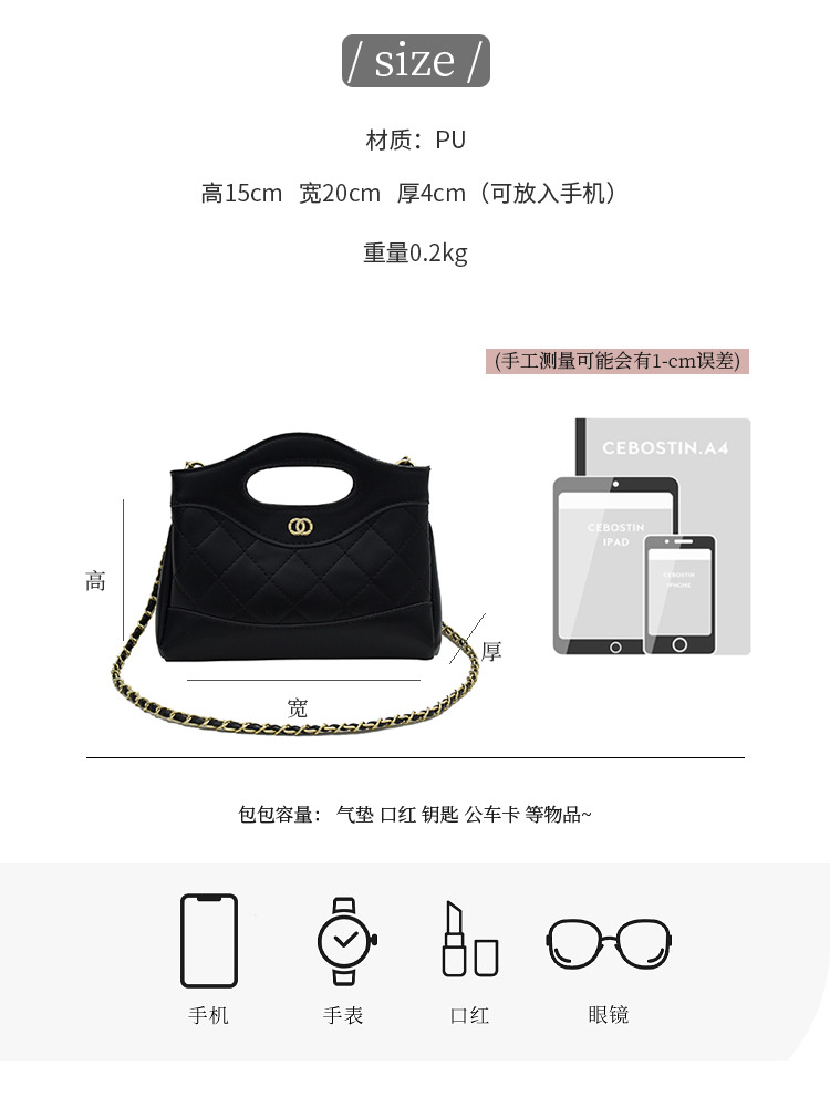 韩版时尚手提小方包女2026新款小香风链条单肩包大容量百搭斜挎包