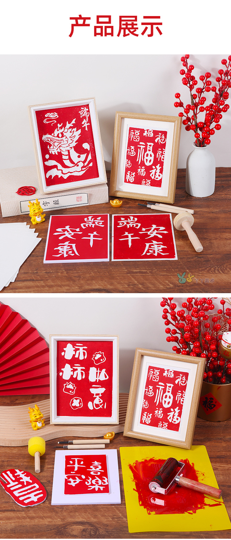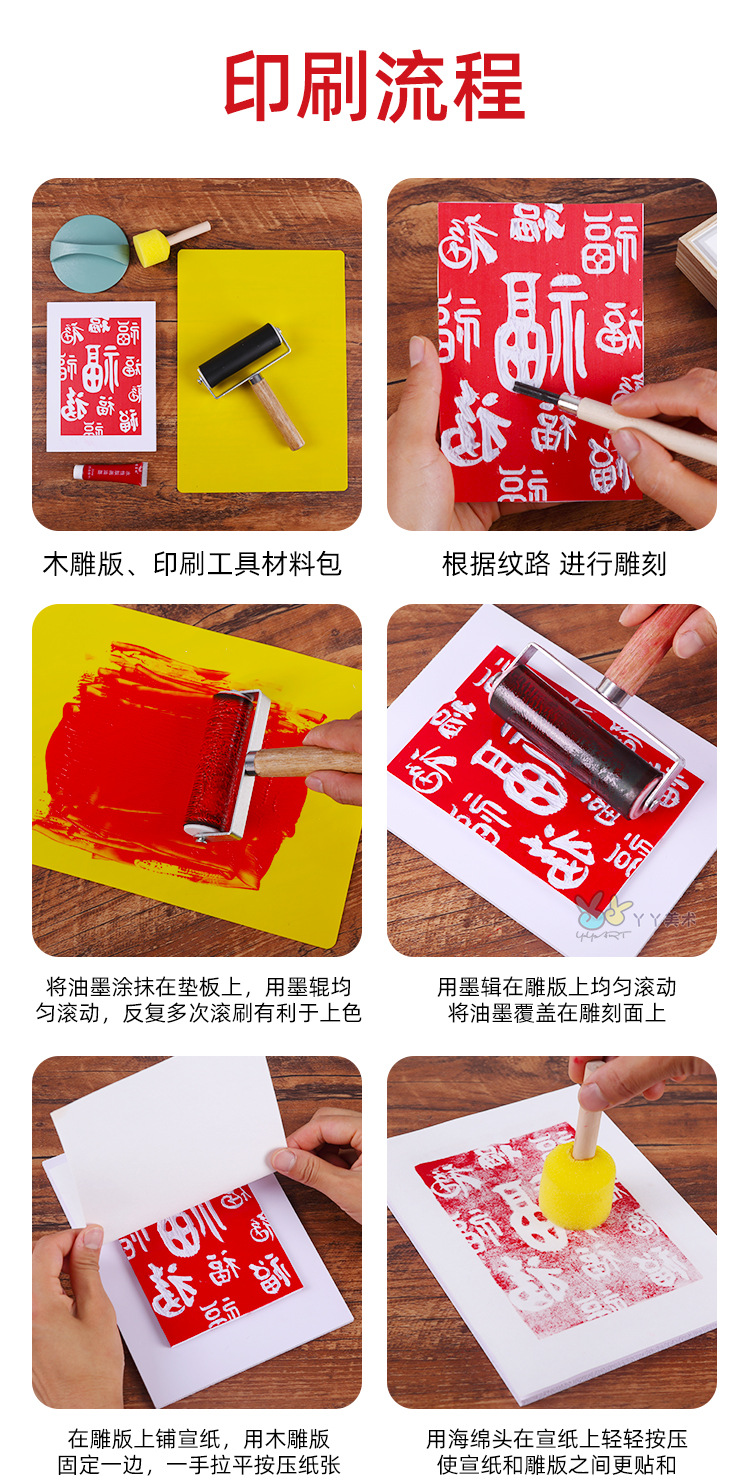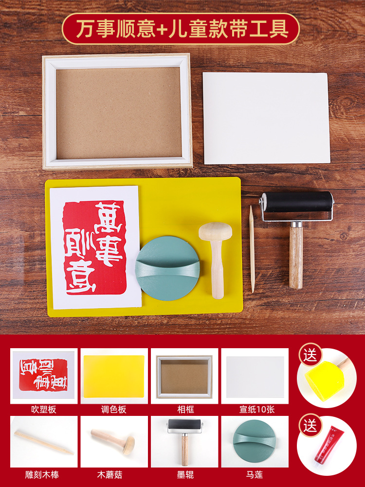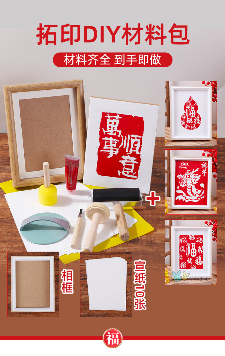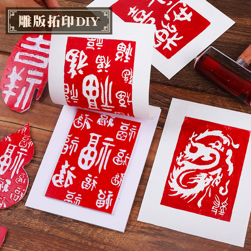 雕版拓印套装材料包新年非遗手工diy印刷模板版画印刷术暖场