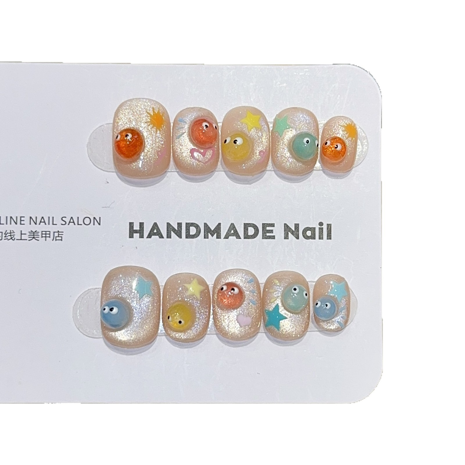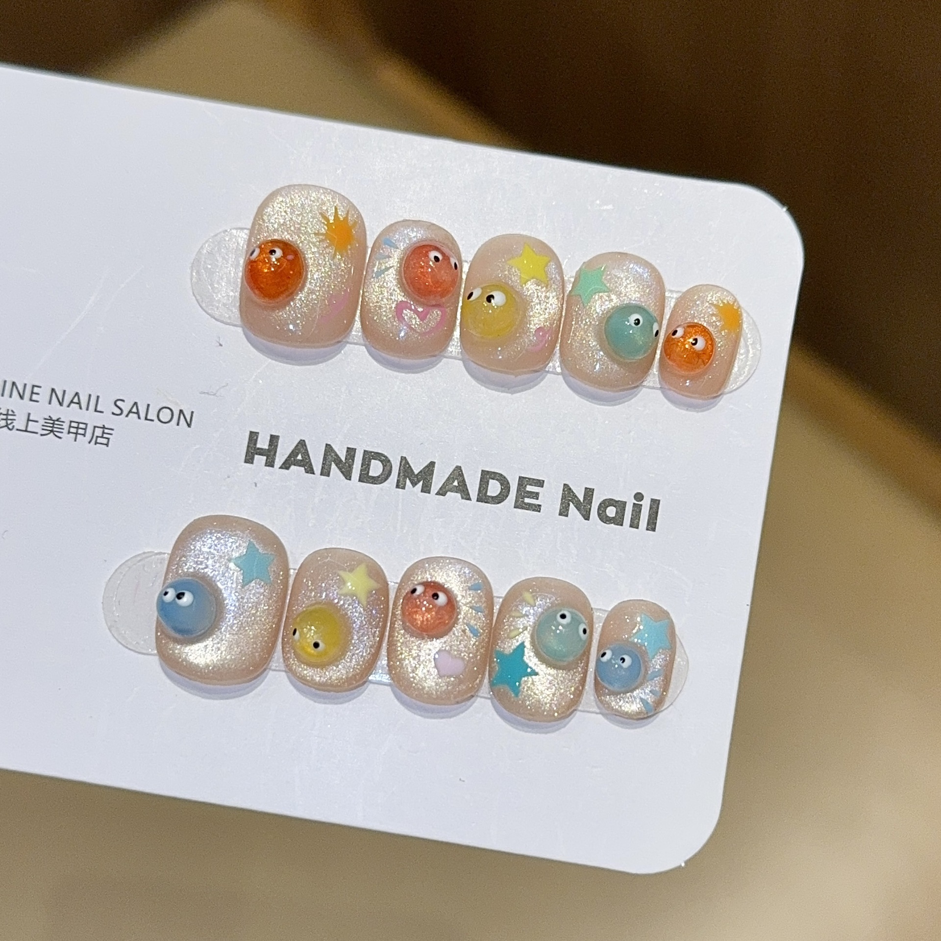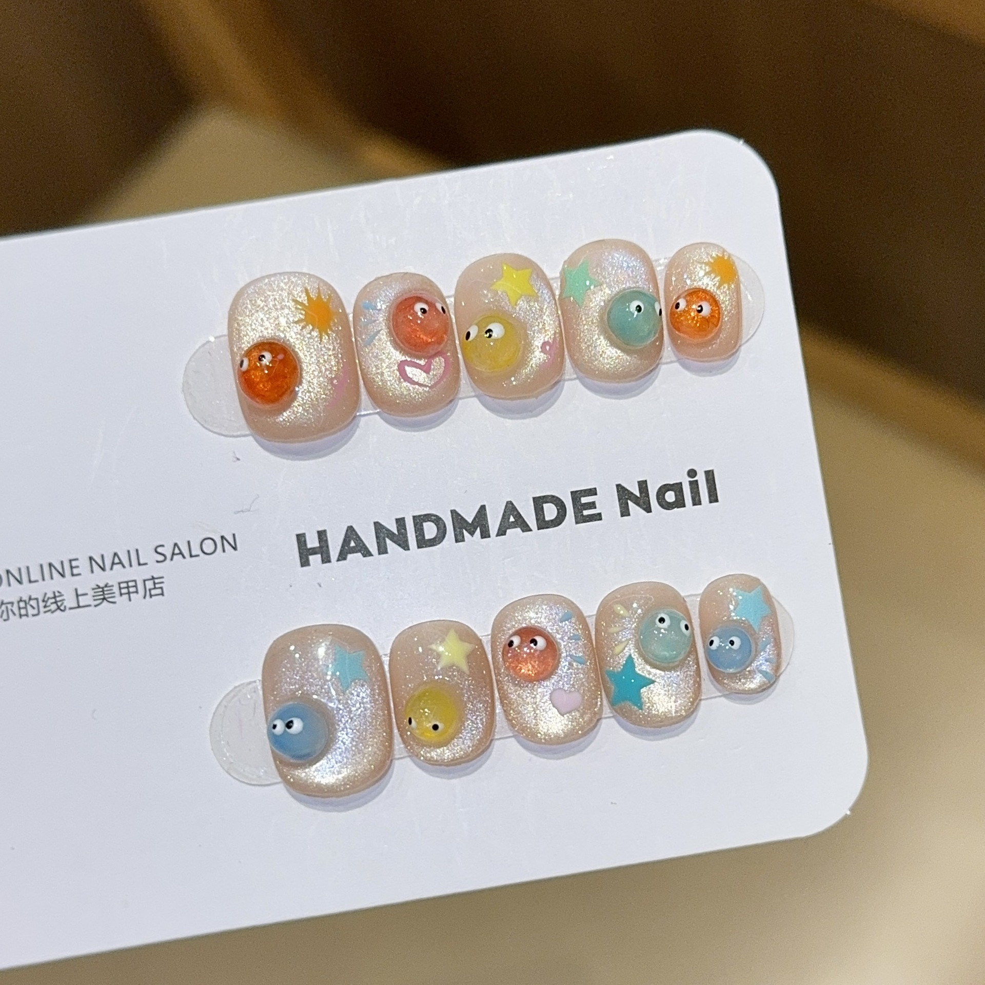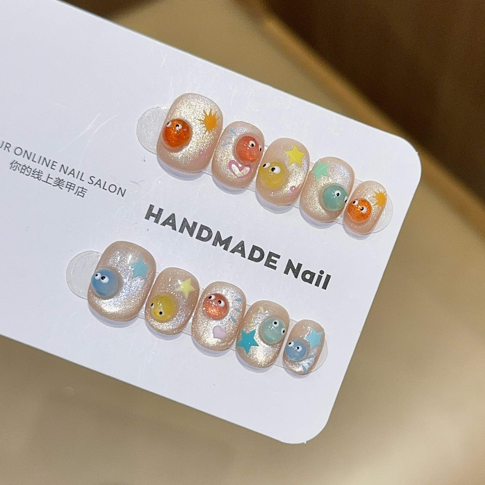 手捏【俏皮怪】猫眼纯手工穿戴甲高级感短款豆豆美甲假指甲贴片