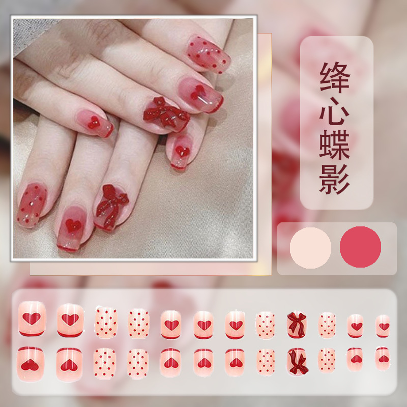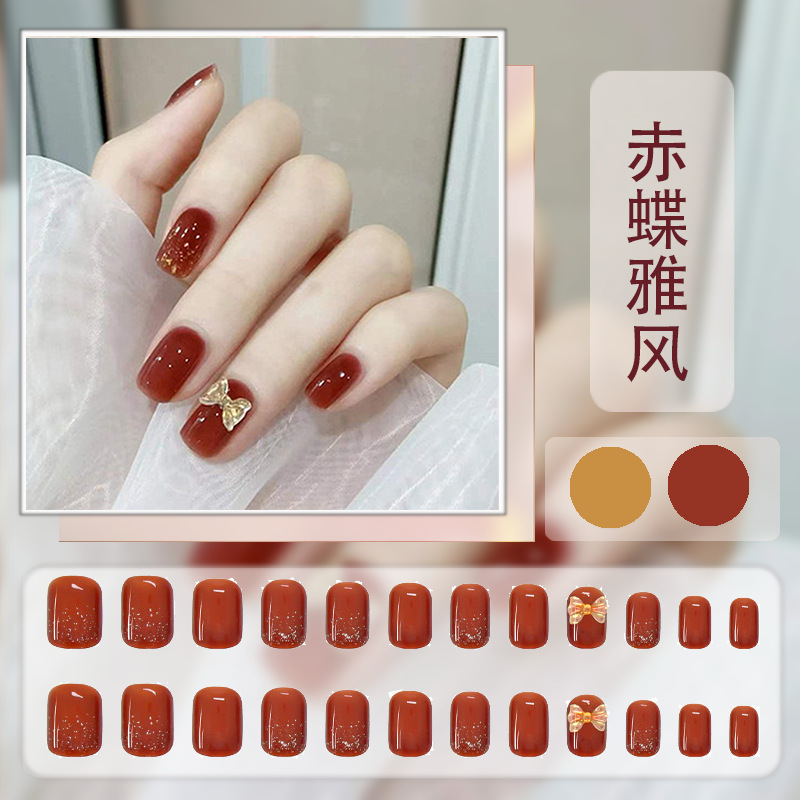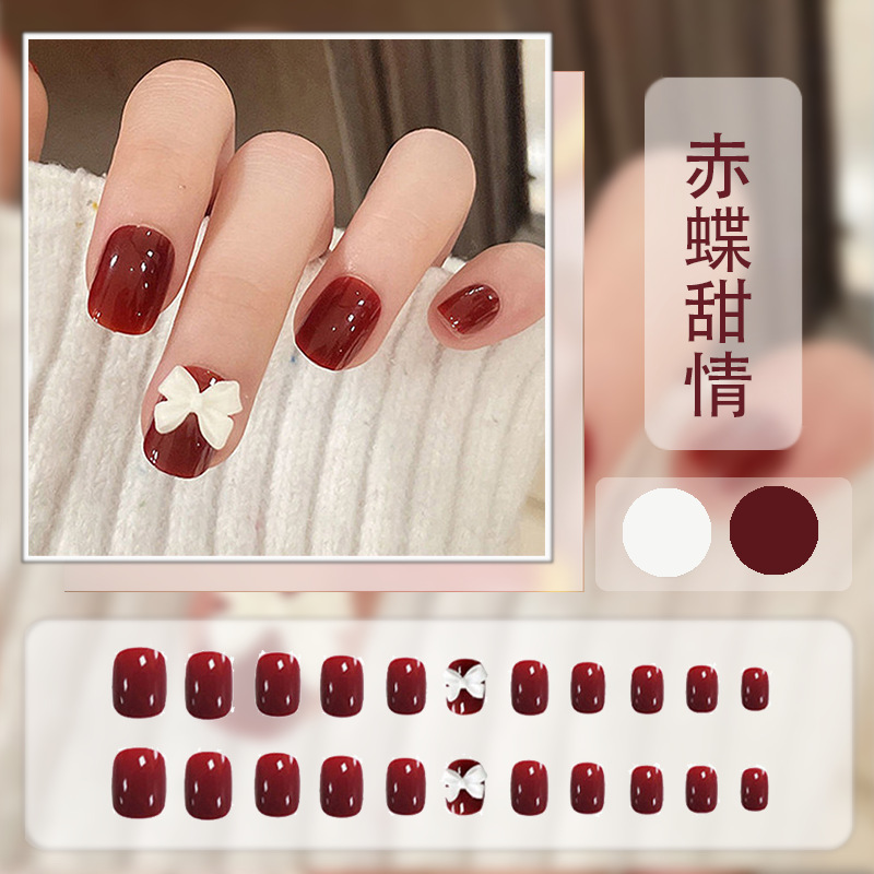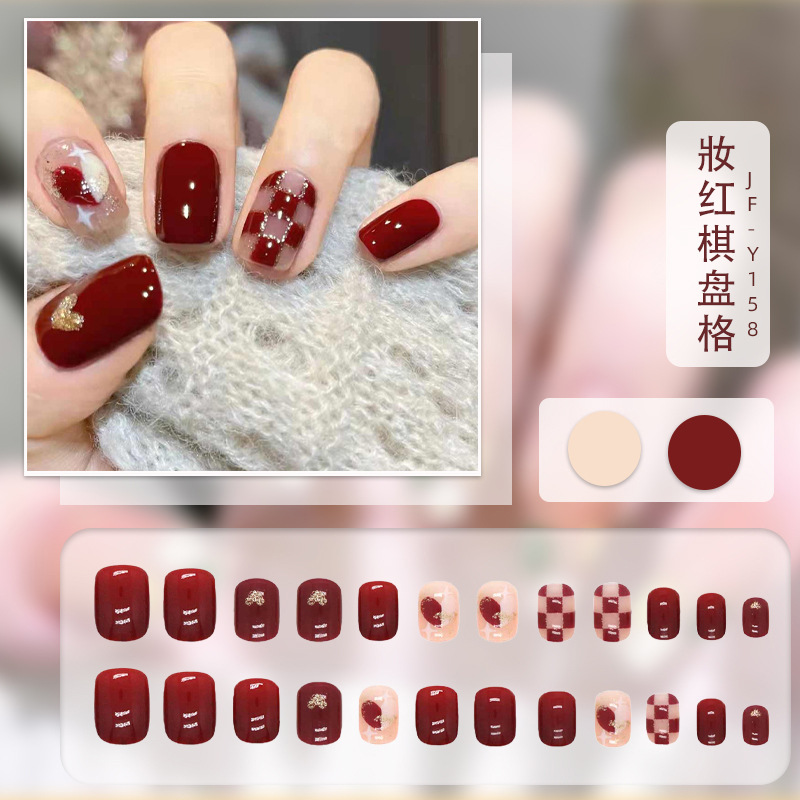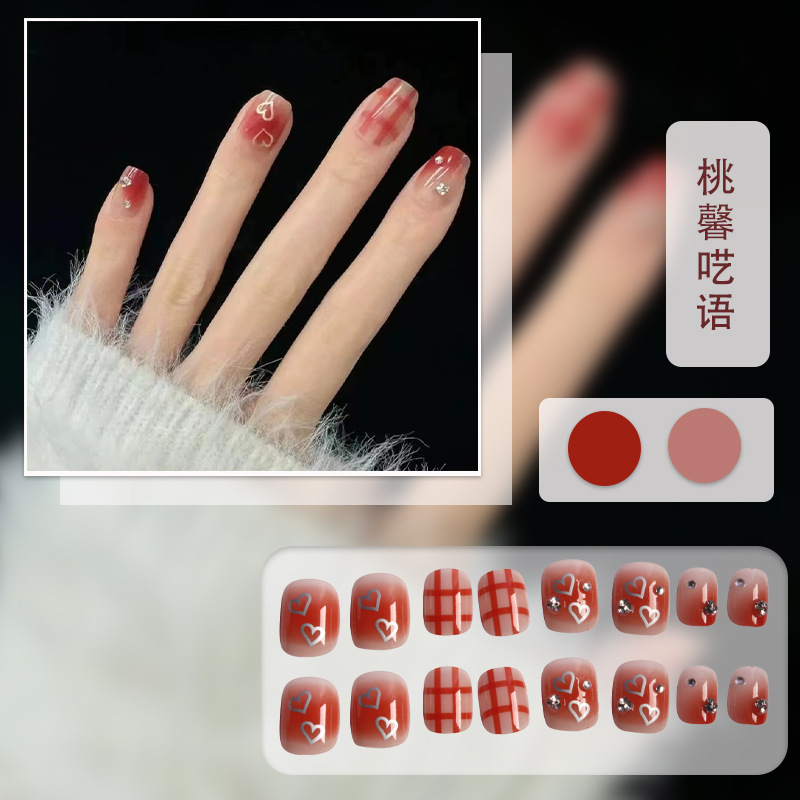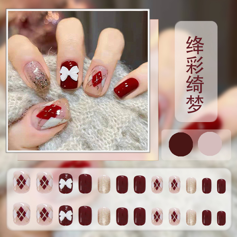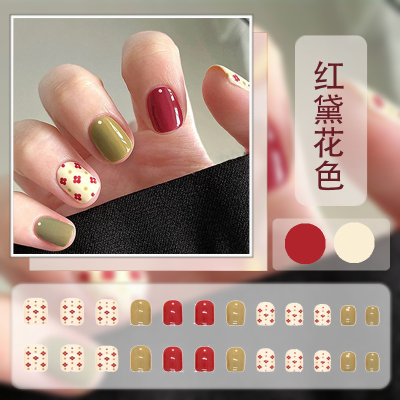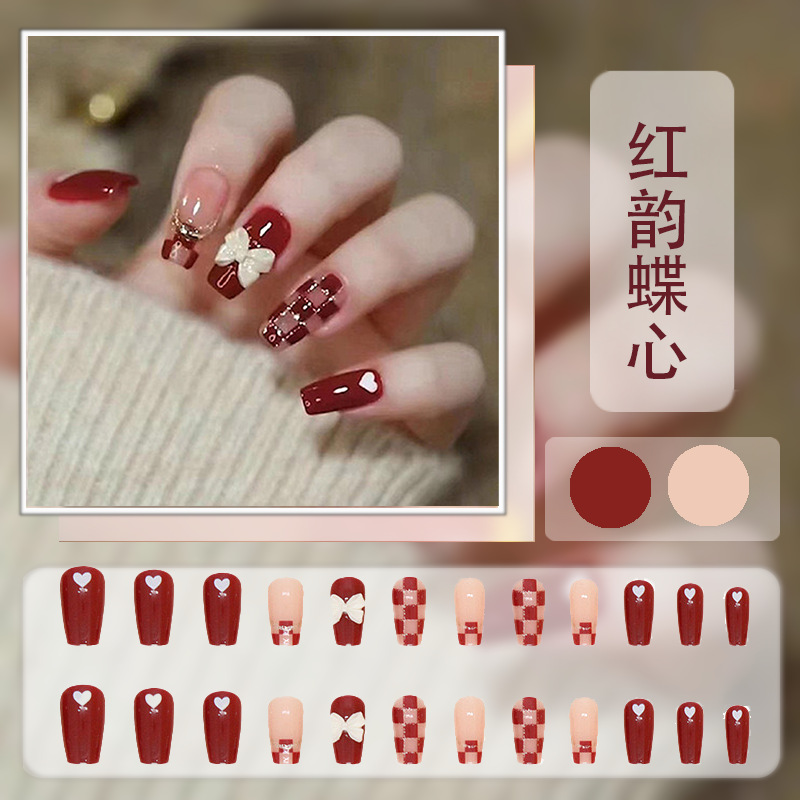 红色系穿戴甲高级感假指甲小香风可爱长短款美甲甲贴片穿戴指甲片