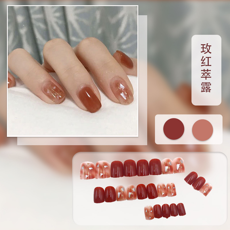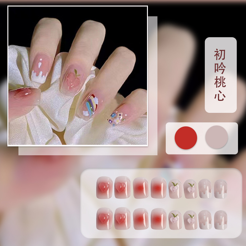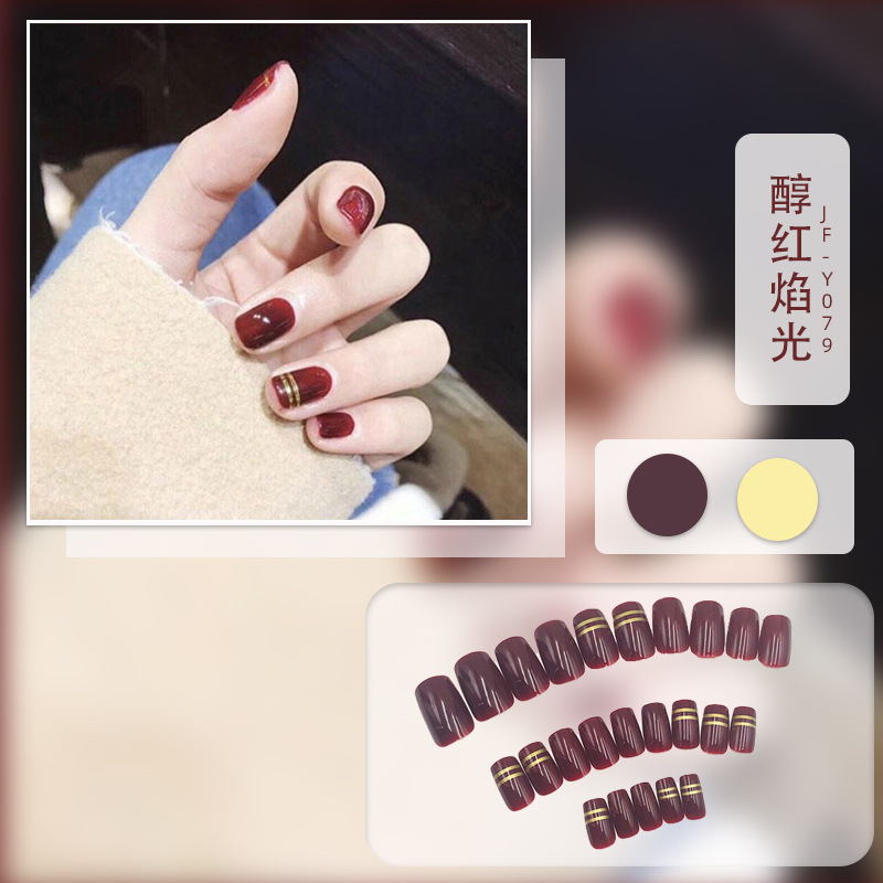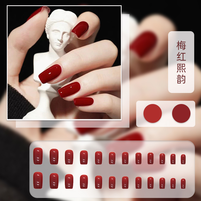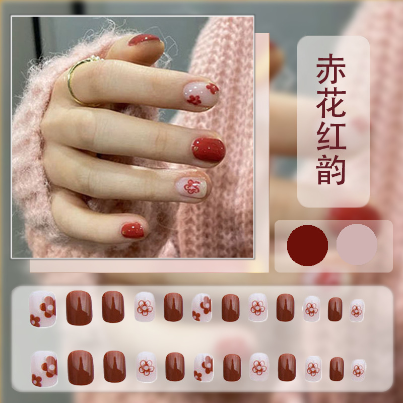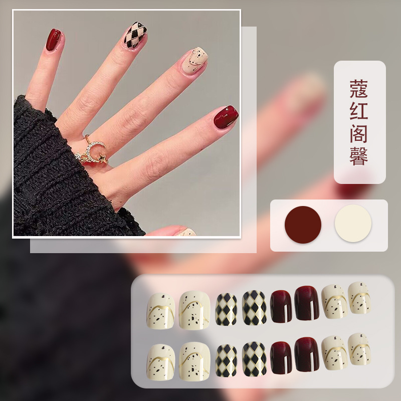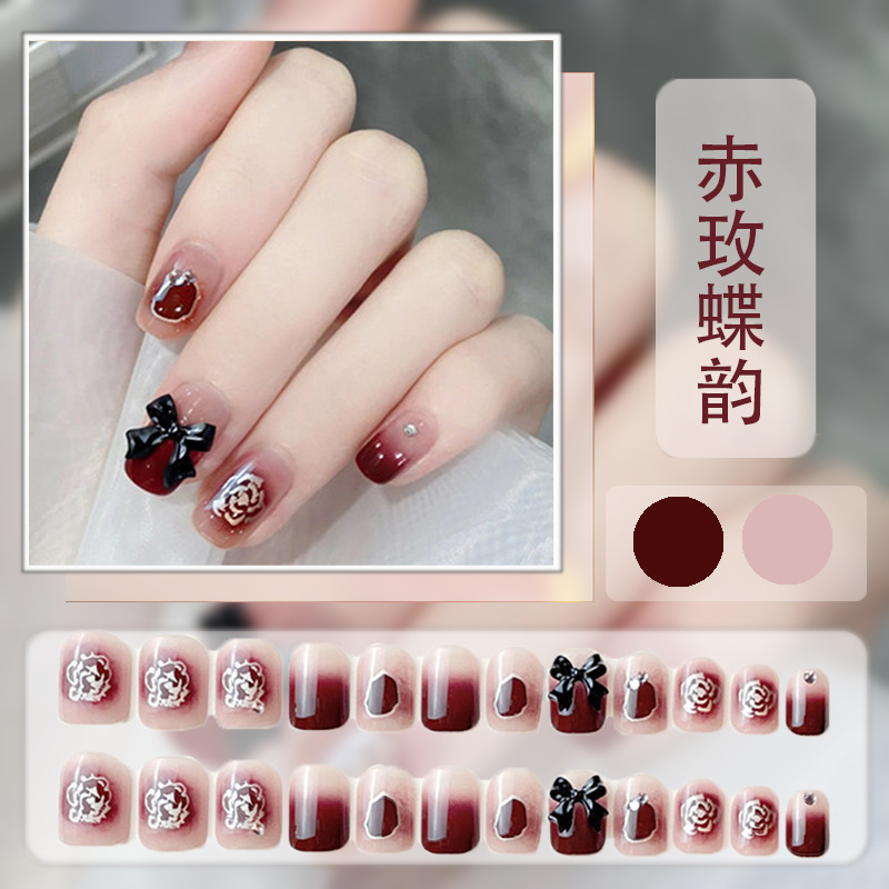 红色系穿戴甲高级感假指甲小香风可爱长短款美甲甲贴片穿戴指甲片