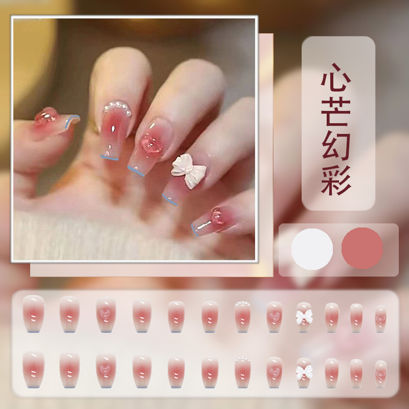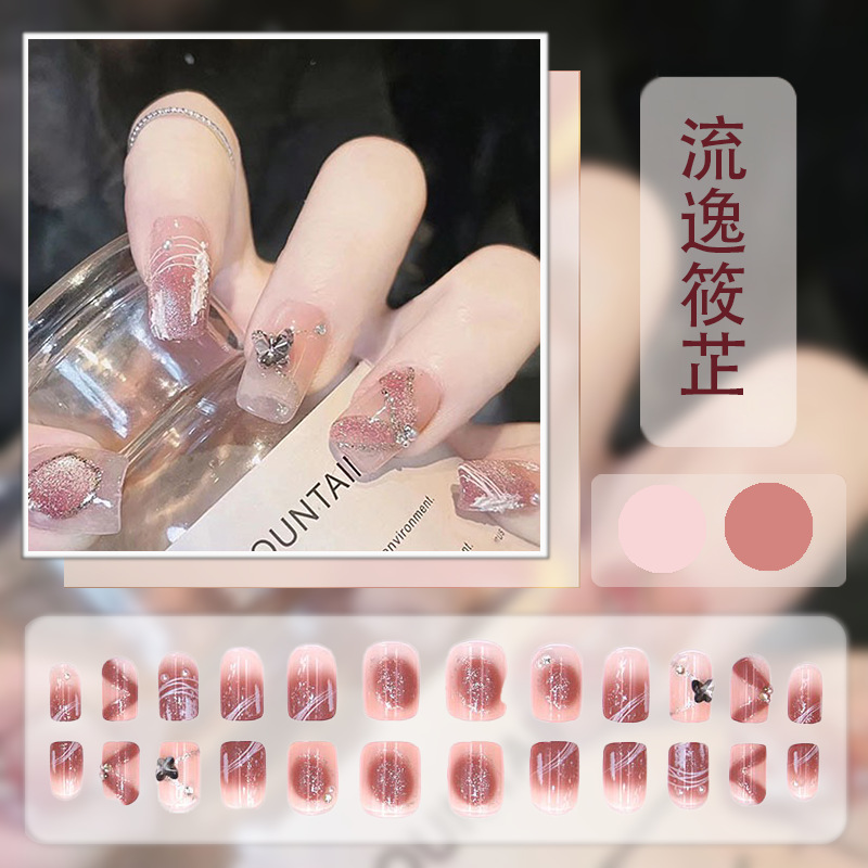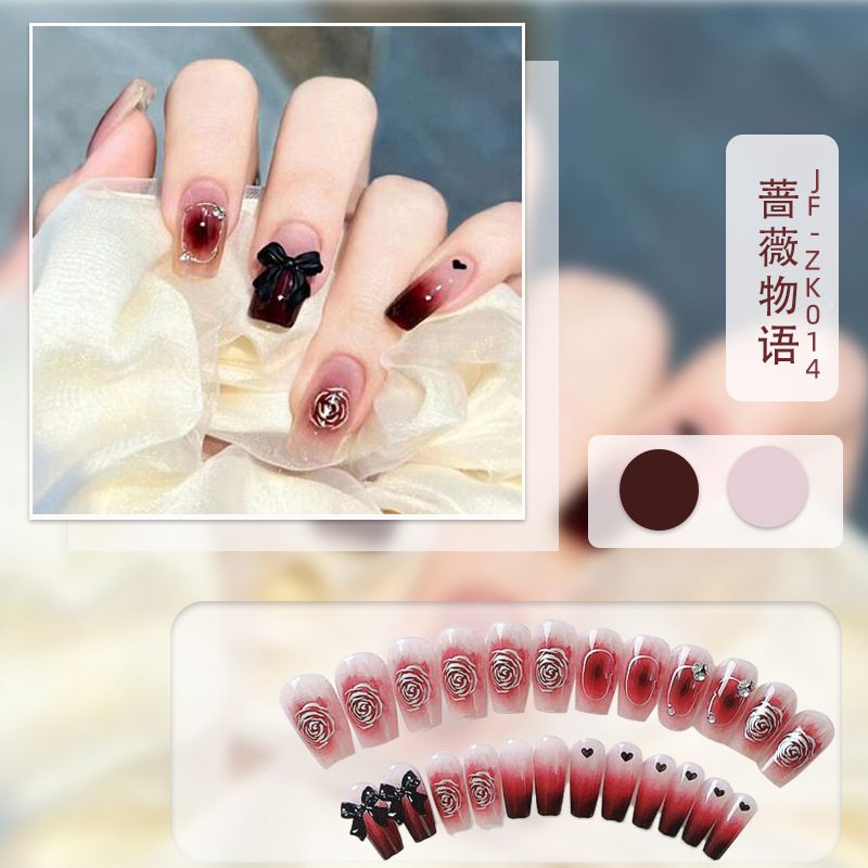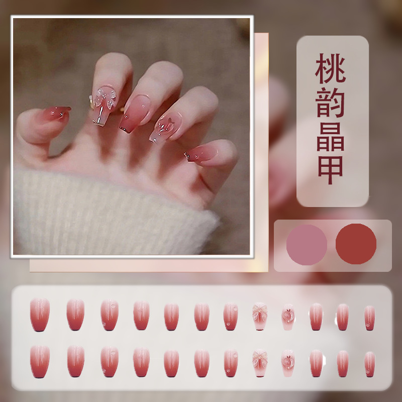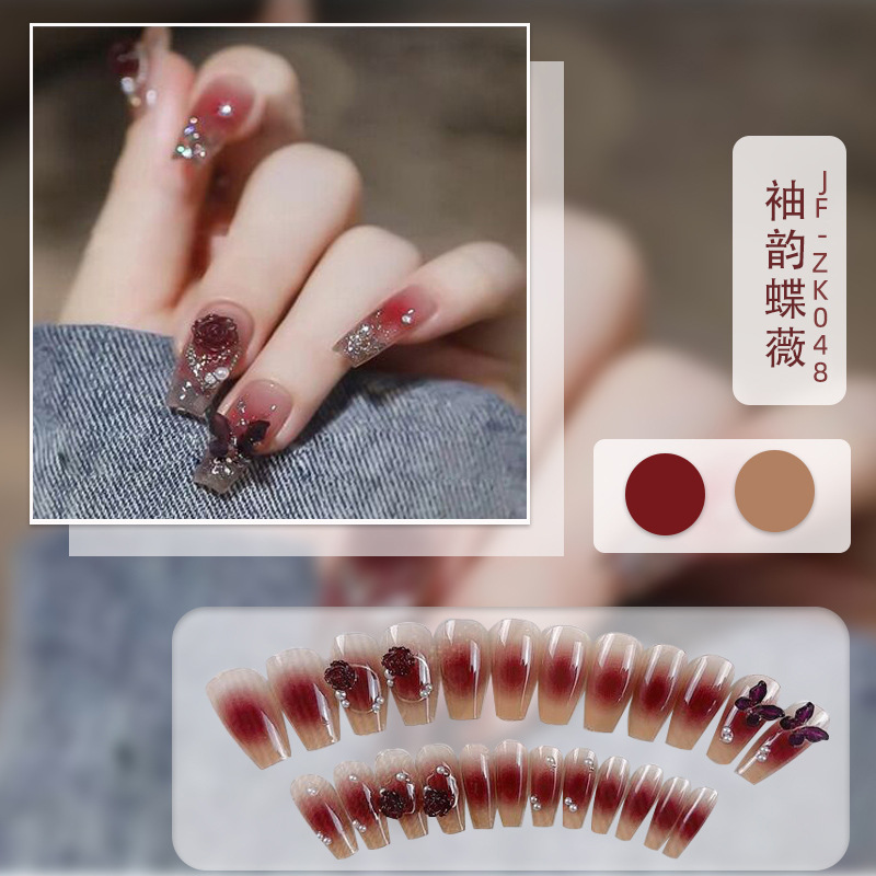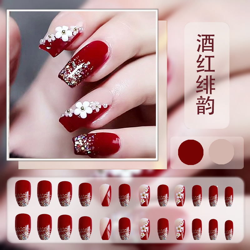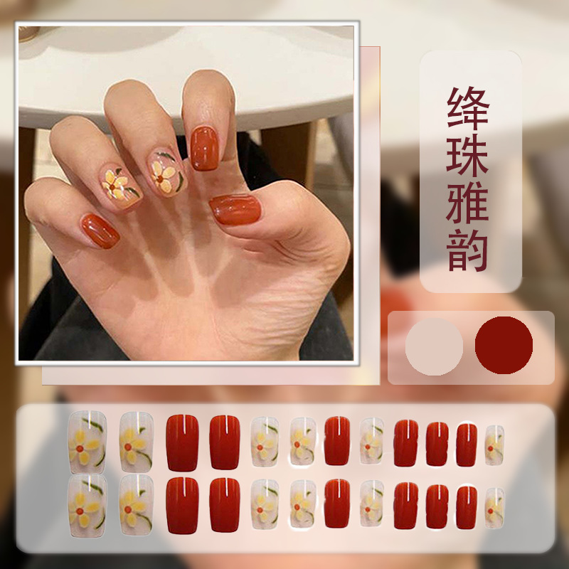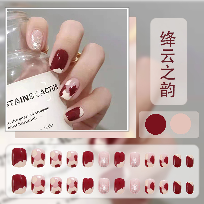 红色系穿戴甲高级感假指甲小香风可爱长短款美甲甲贴片穿戴指甲片