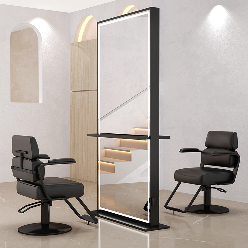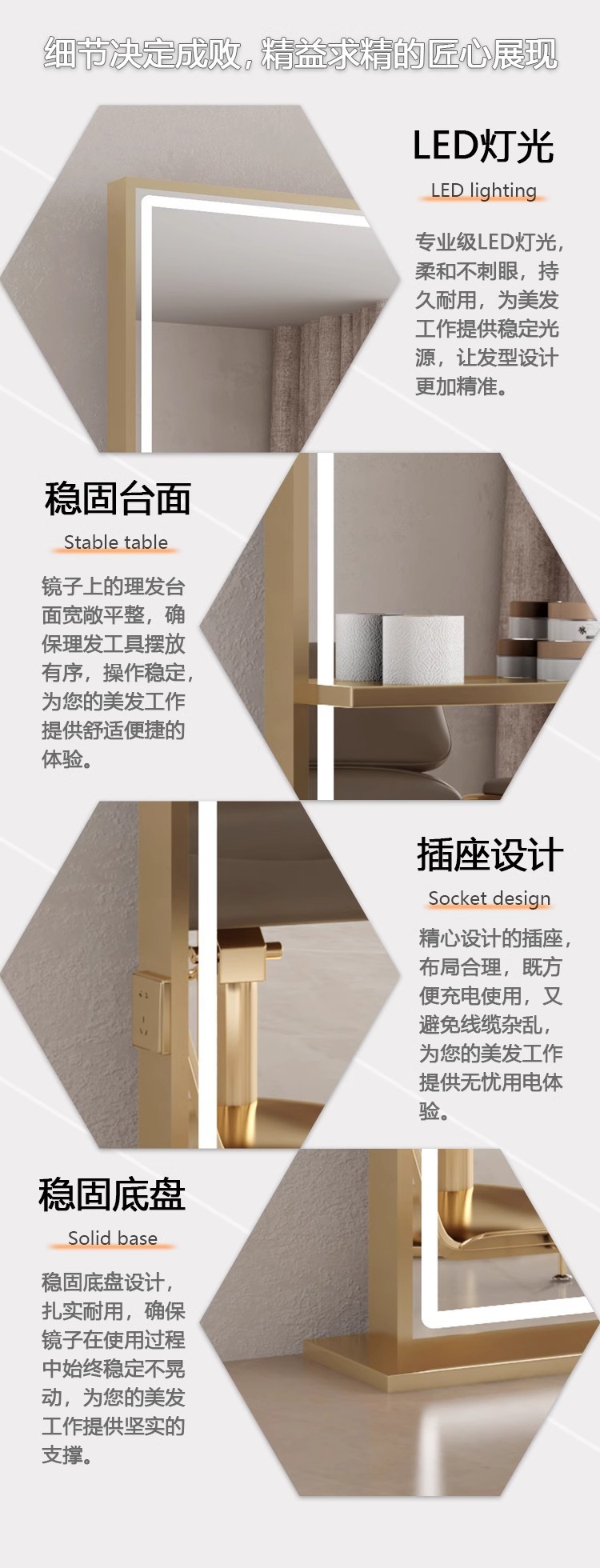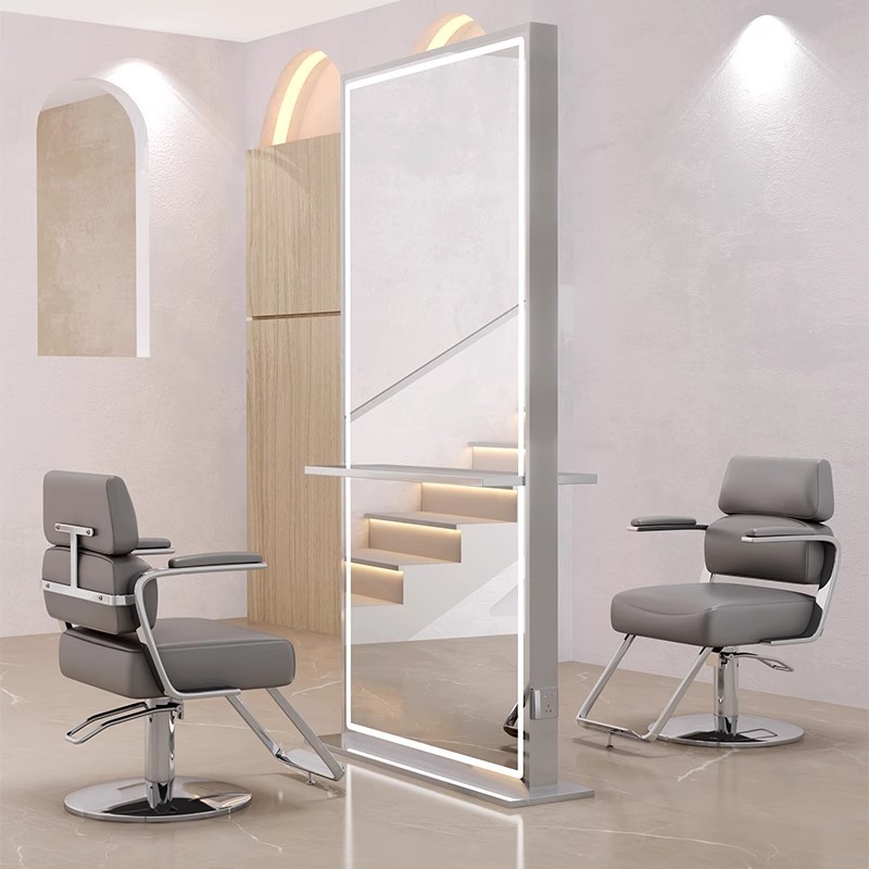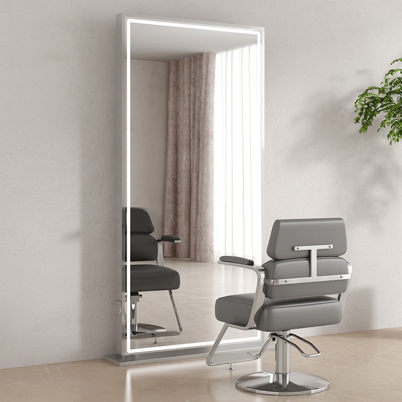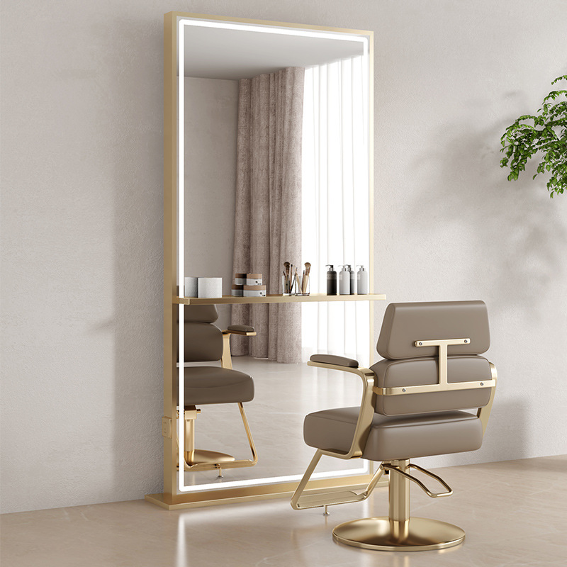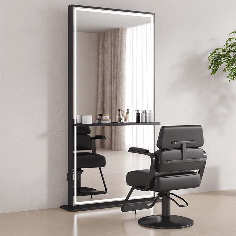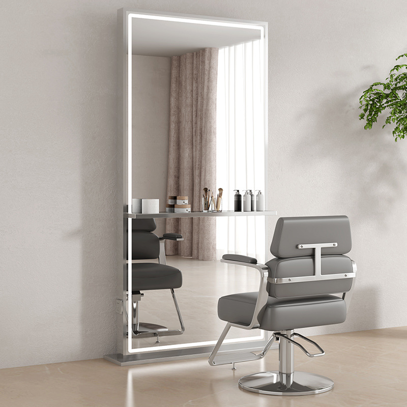 high-end trendy barber shop mirror hair hot dyeing single-sided floor large mirror with table top simple for hair salon