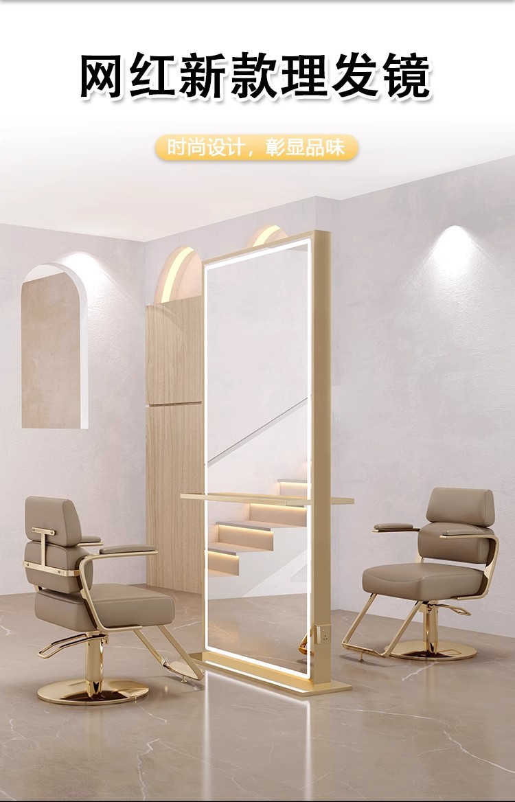 高档潮流理发店镜子美发烫染单双面落地大镜子带台面简约发廊专用