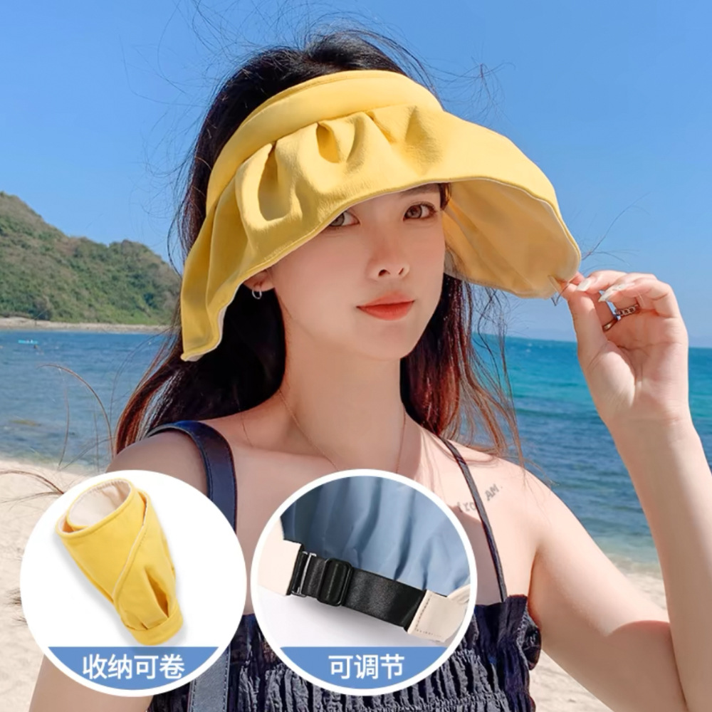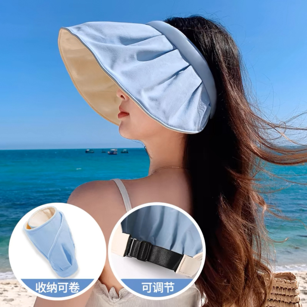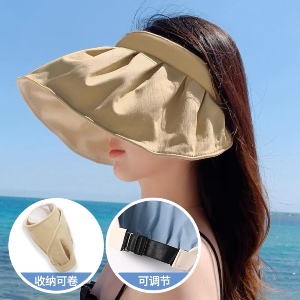 大帽檐遮阳贝壳帽uv防晒防紫外线遮脸空顶帽户外运动女夏帽子批发