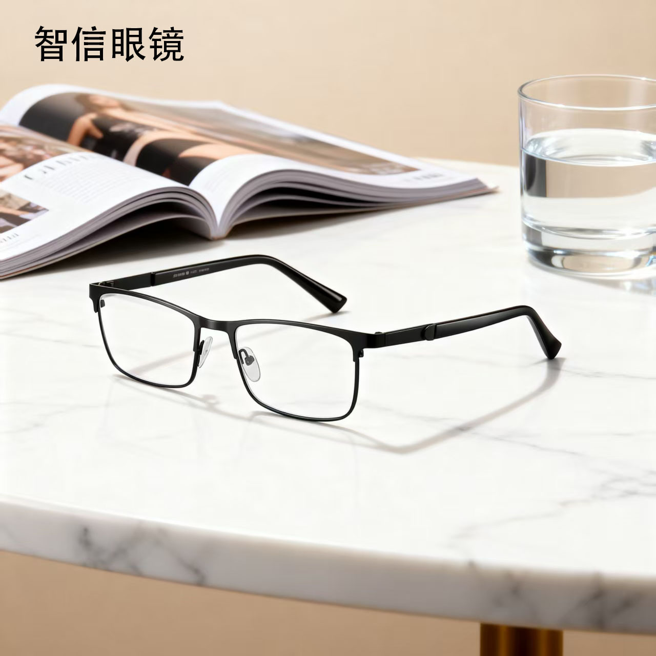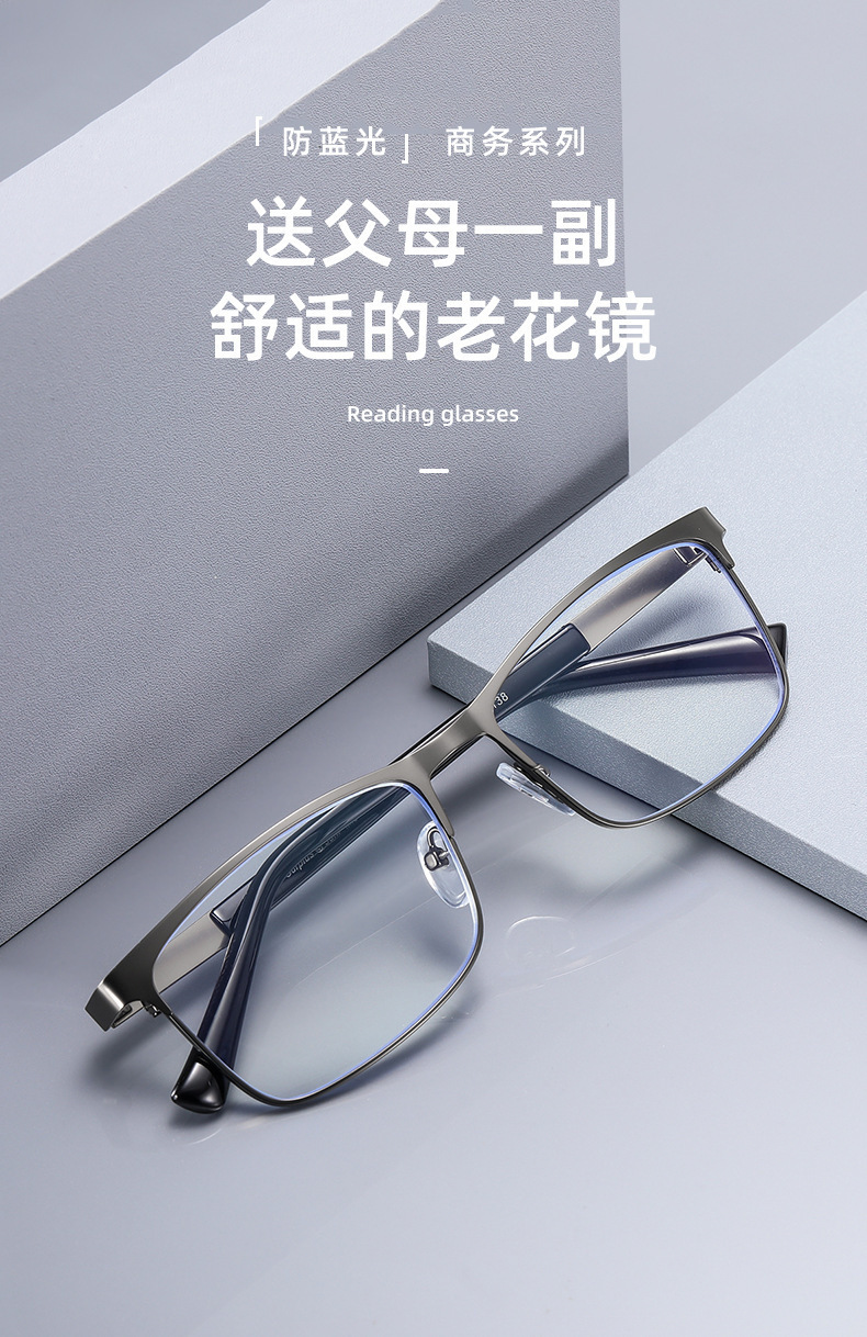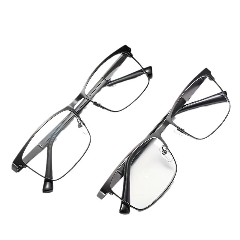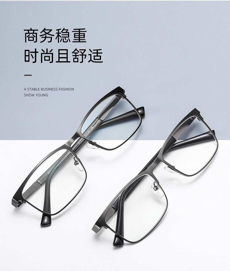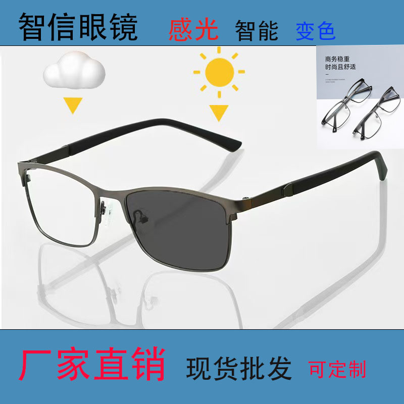 感光变色高档老花镜新款男士眼镜防蓝光平光镜时尚金属眼镜框批发