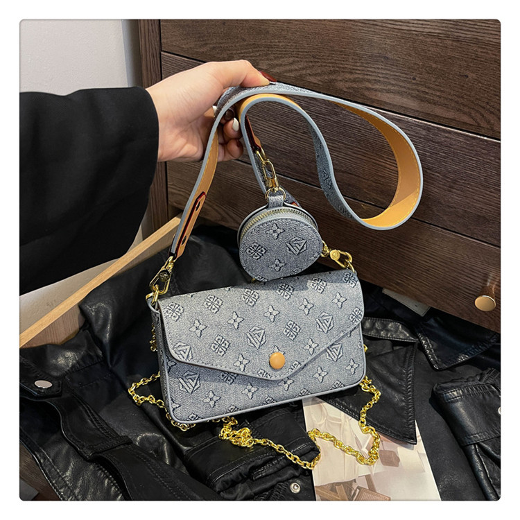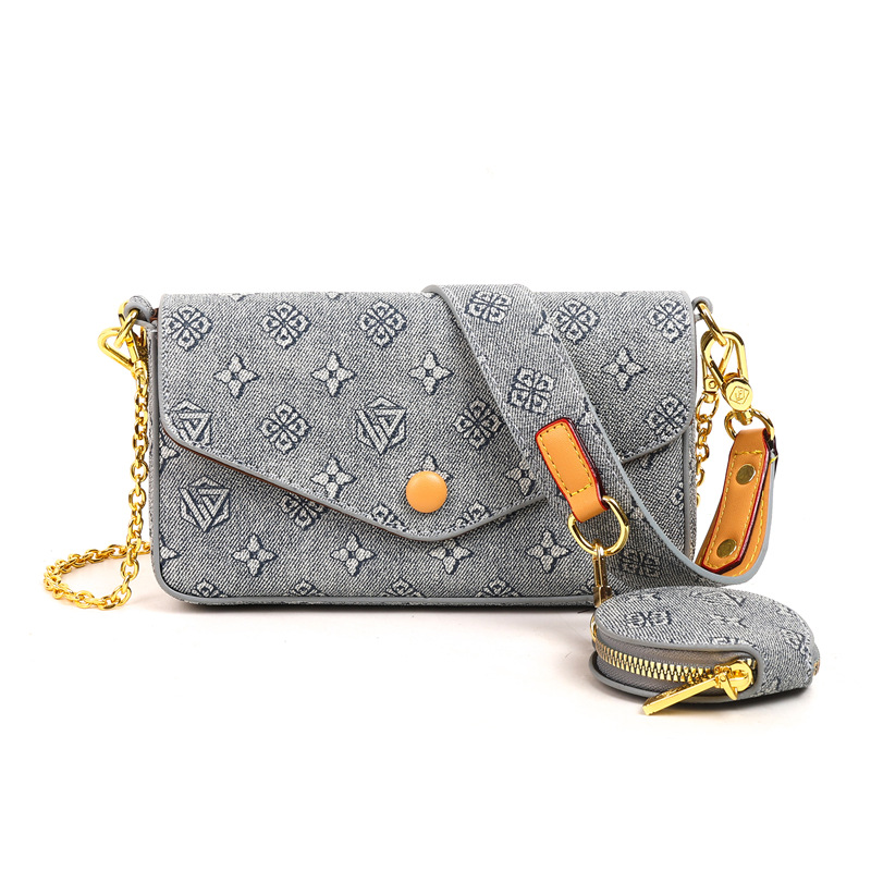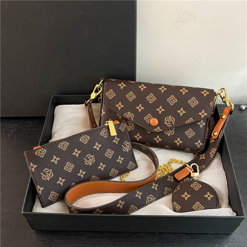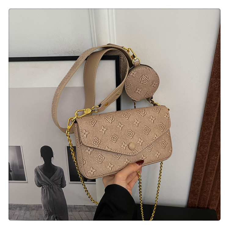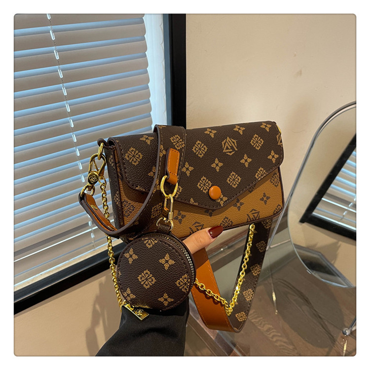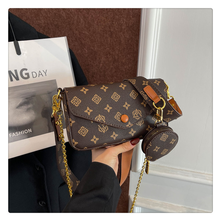 轻奢老花链条小方包女2026新款高级感百搭三合一信封包单肩斜挎包