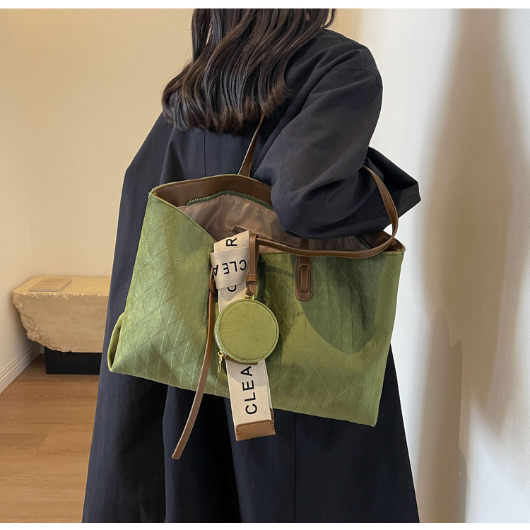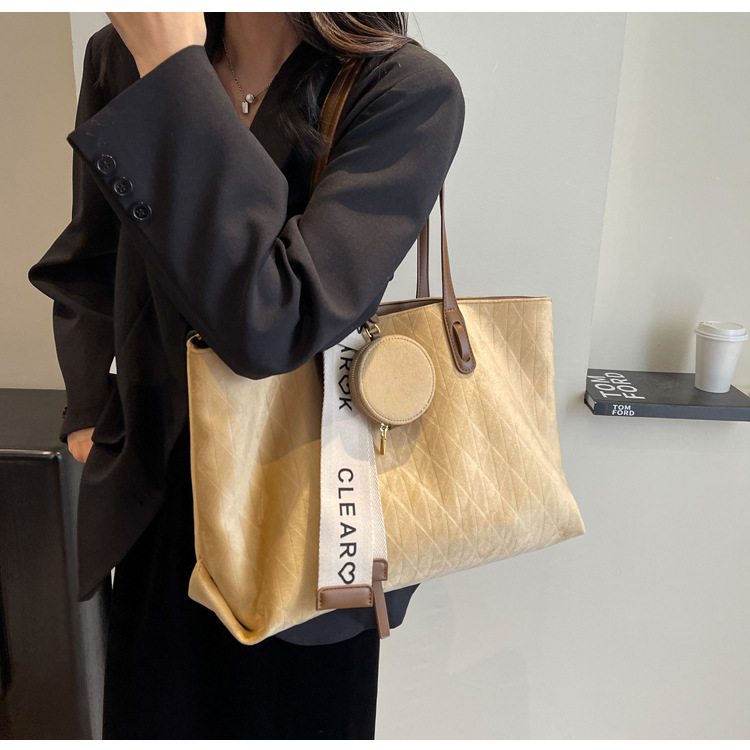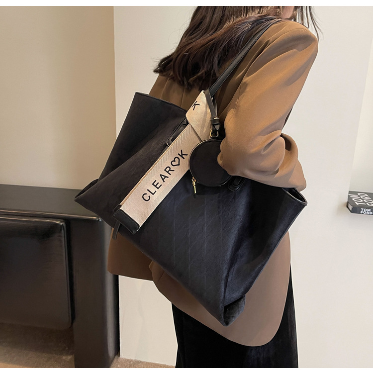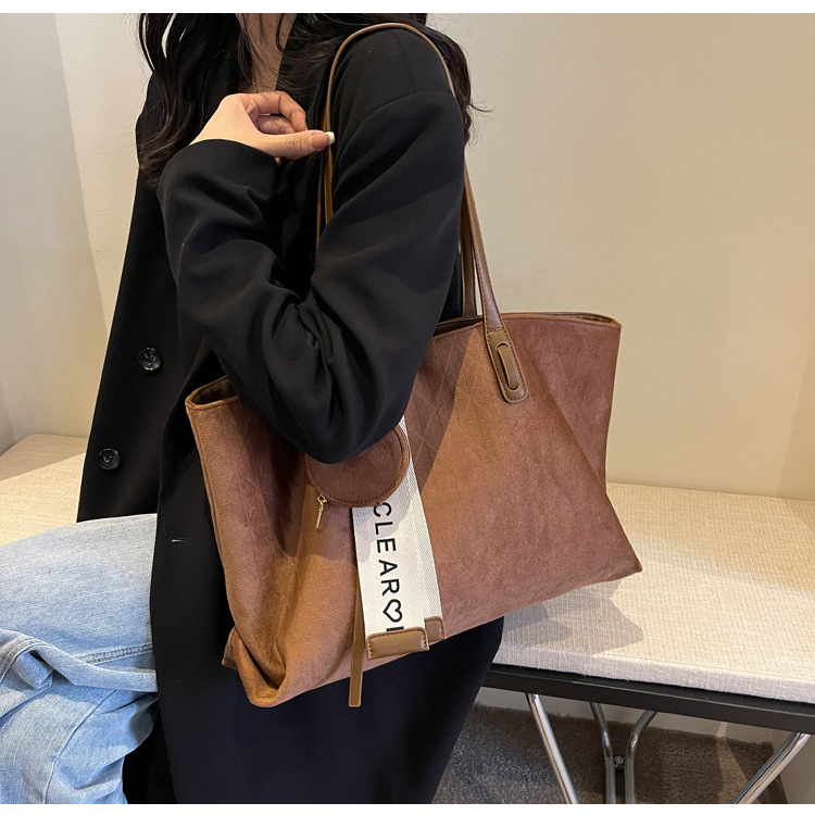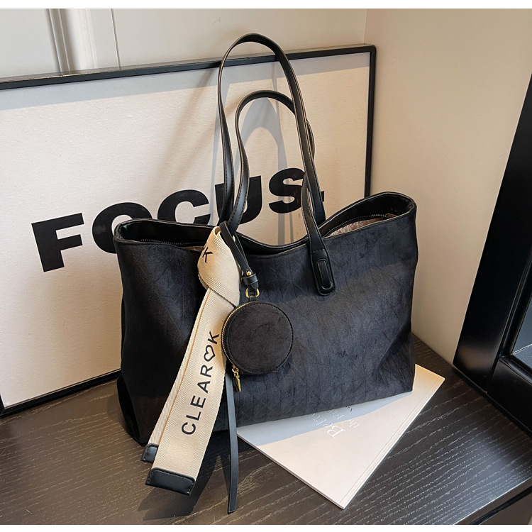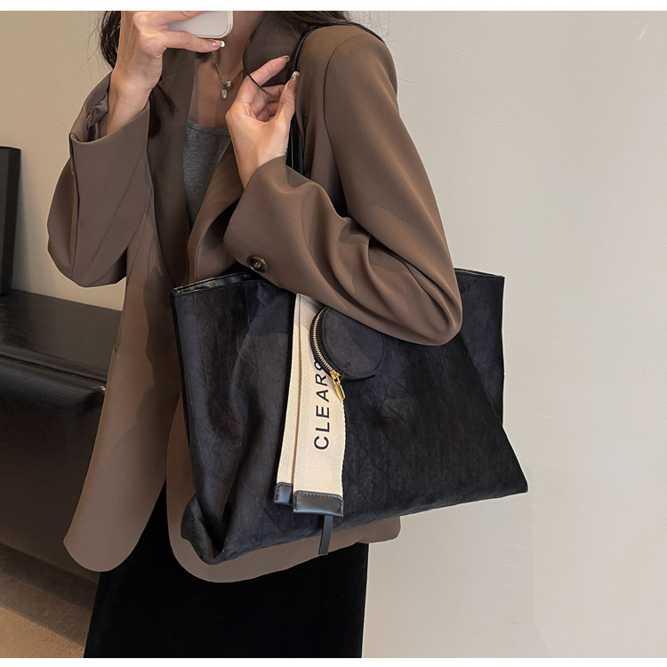 跨境爆款复古高级感百搭托特包女士轻便大容量休闲通勤单肩腋下包