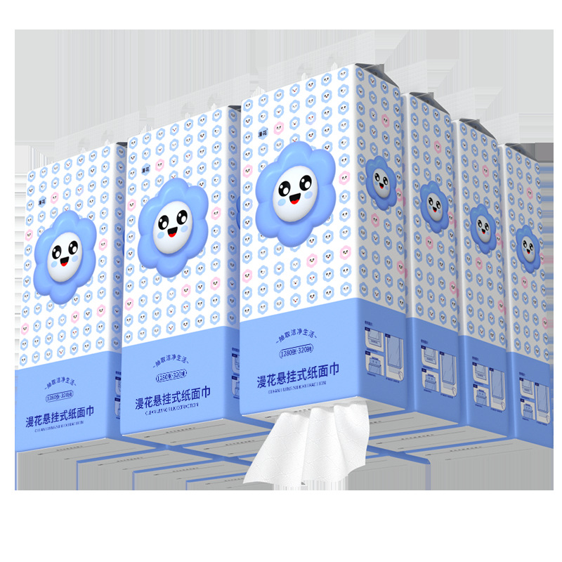 漫花纸巾悬挂式抽纸整箱1280张家用实惠装餐巾纸原木卫生纸代发