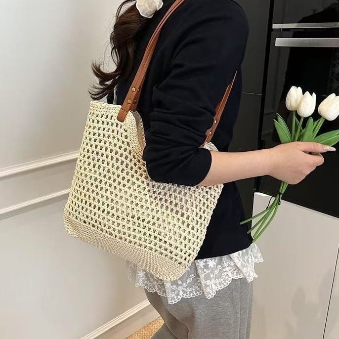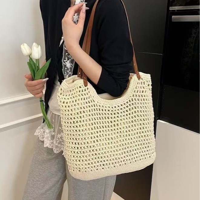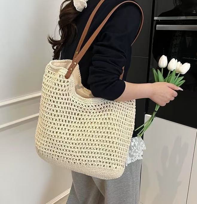 小红书抖音爆款网红渔网包镂空包棉线编织包小号慵懒风手提草编包