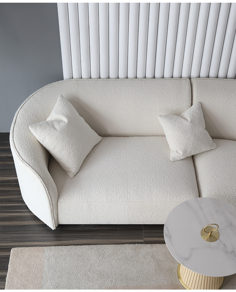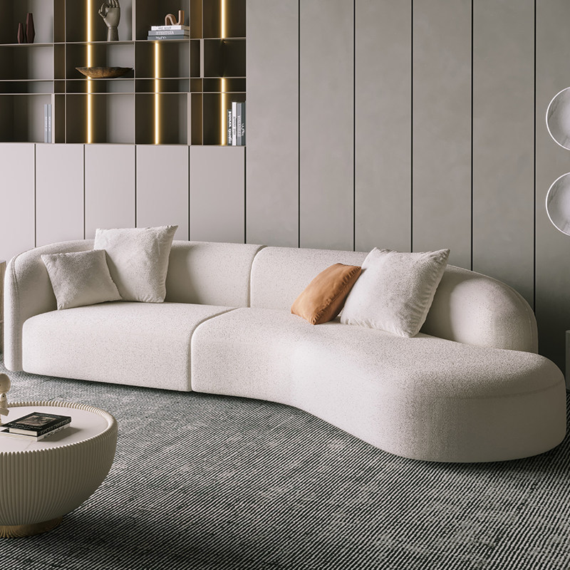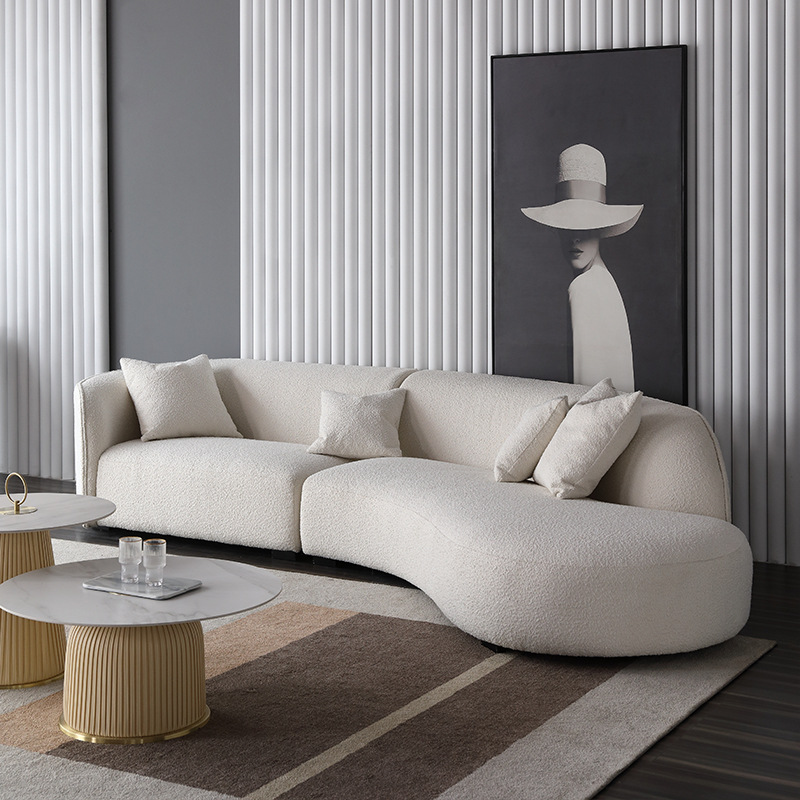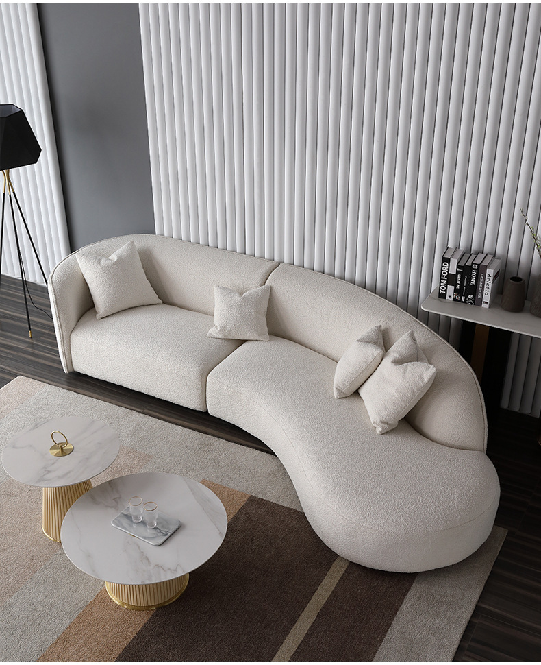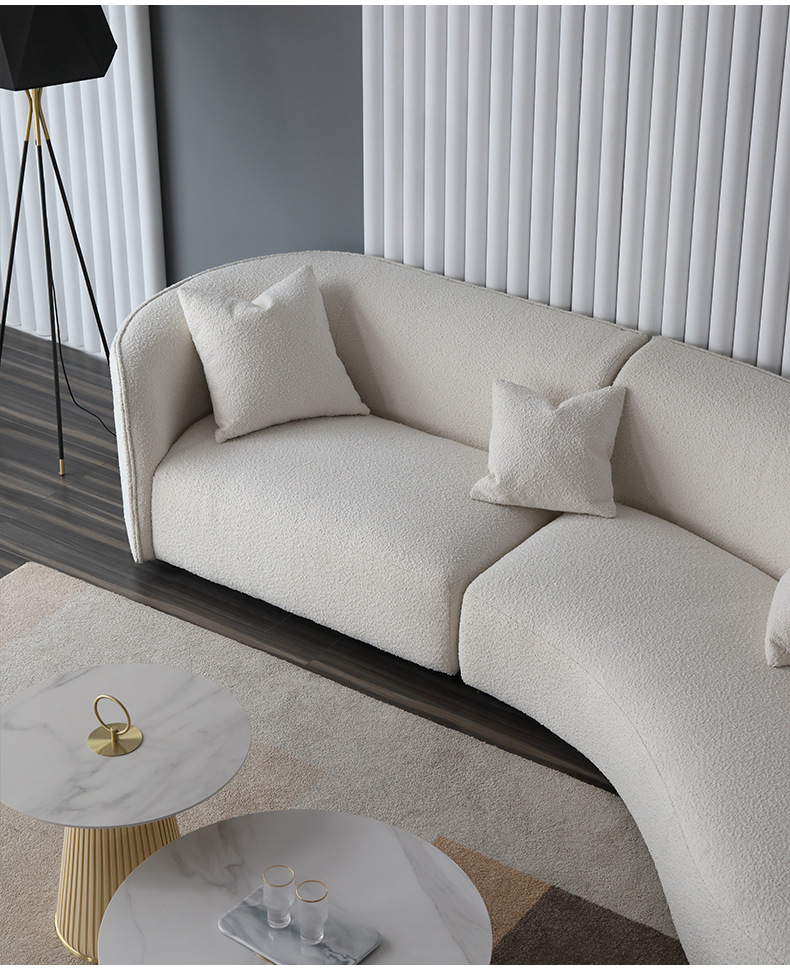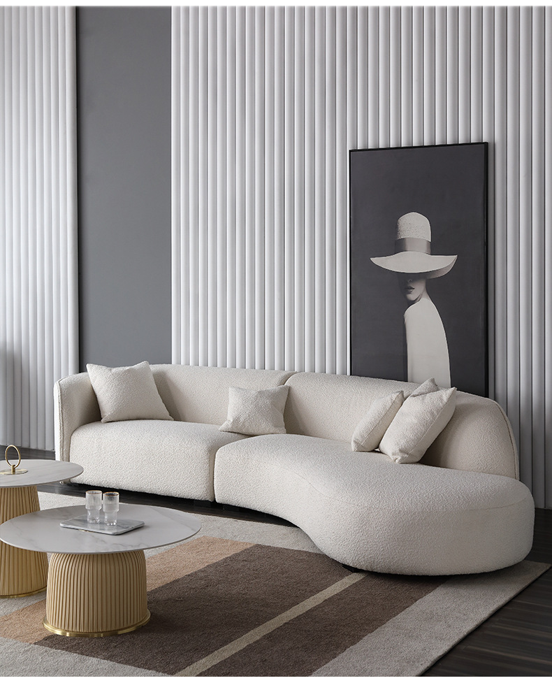 意式北欧客厅休闲一体日式羊羔绒布艺弧形异形沙发佛山家具批发