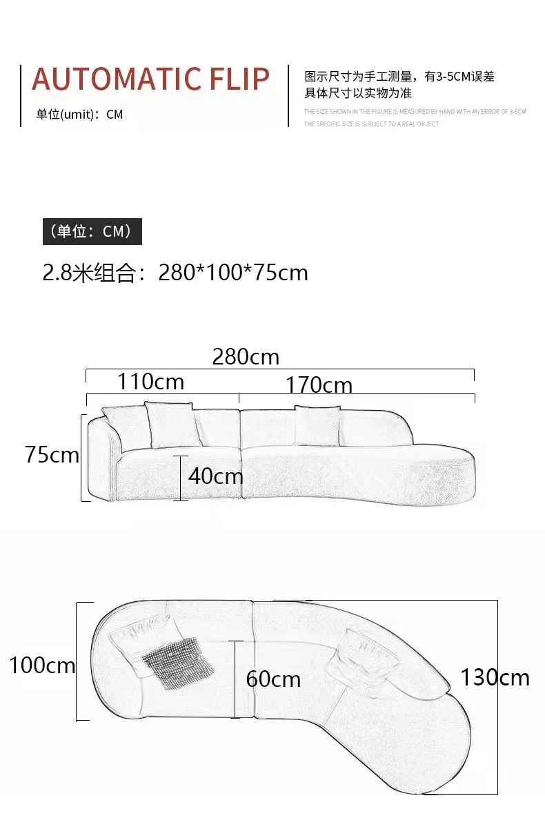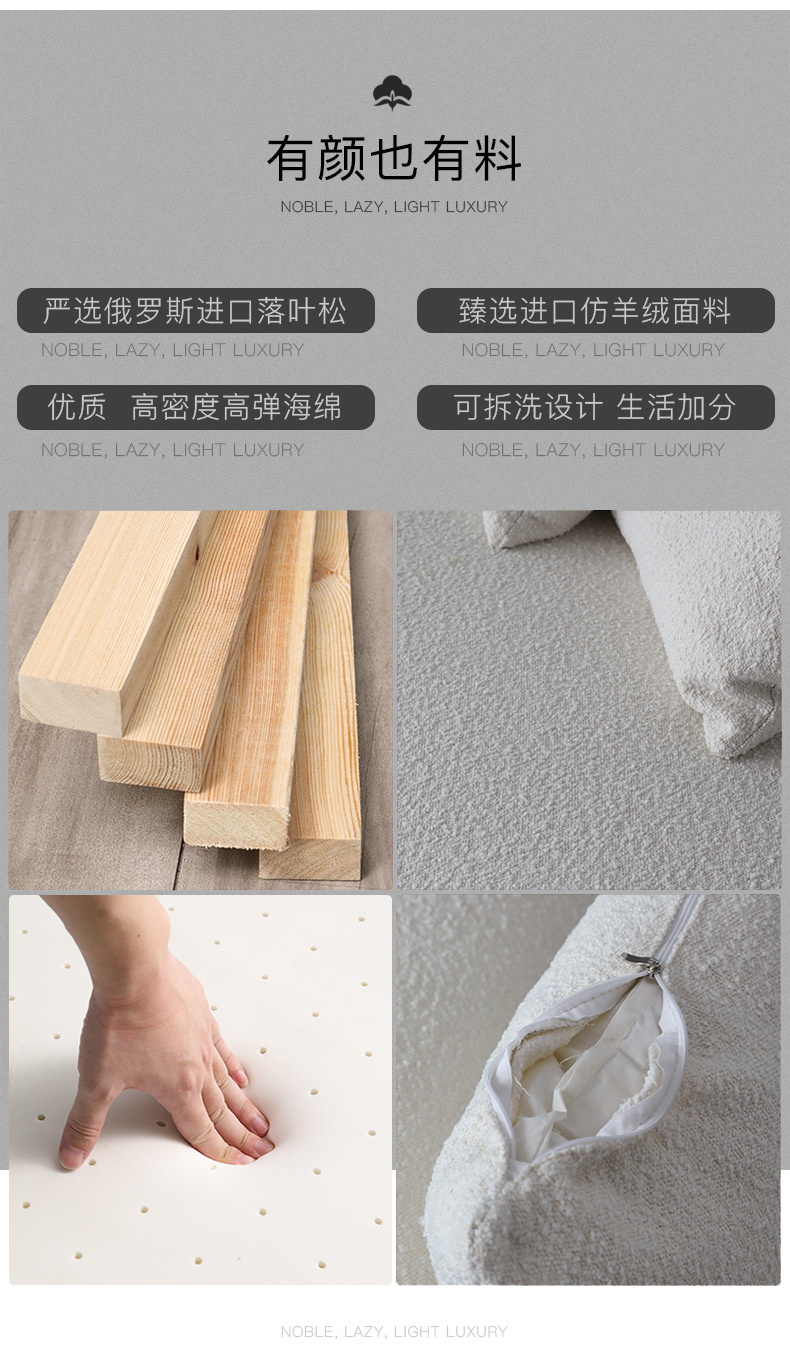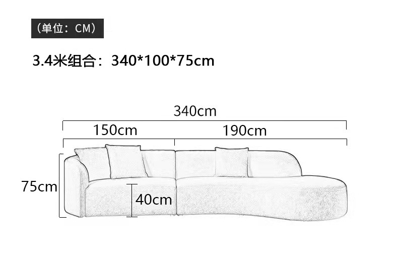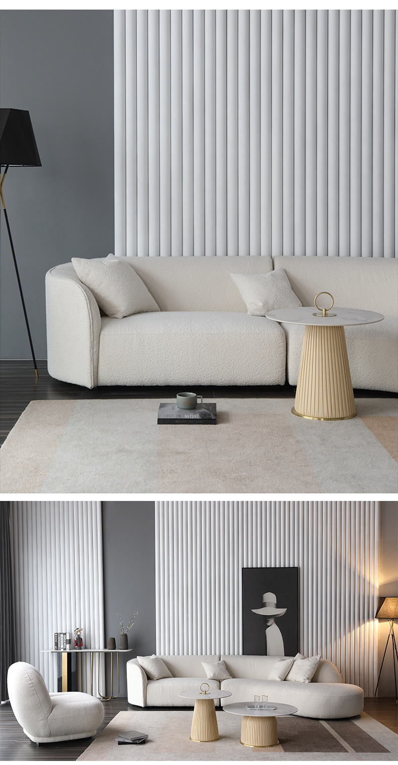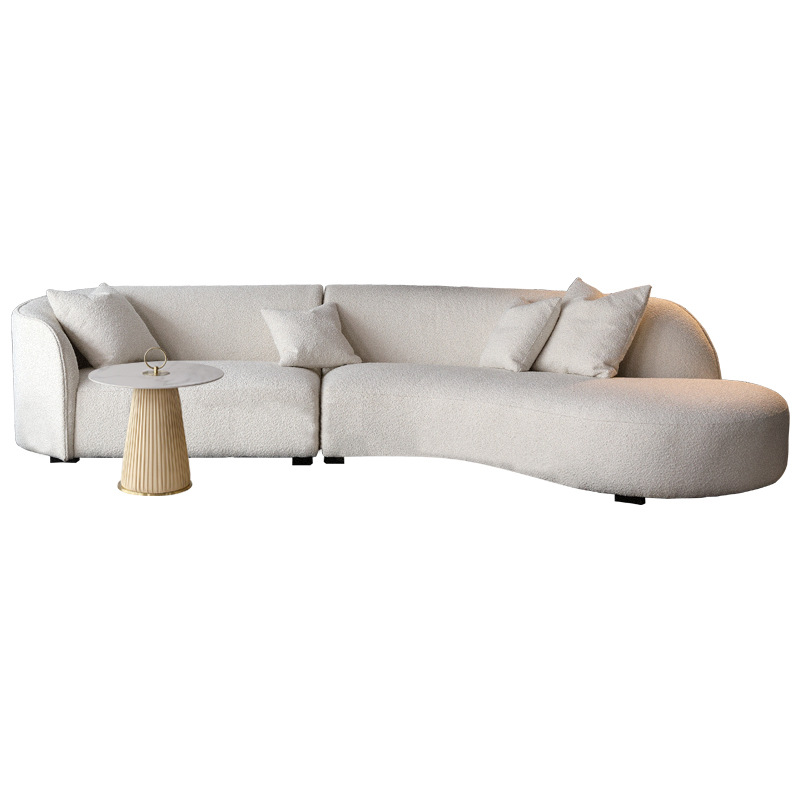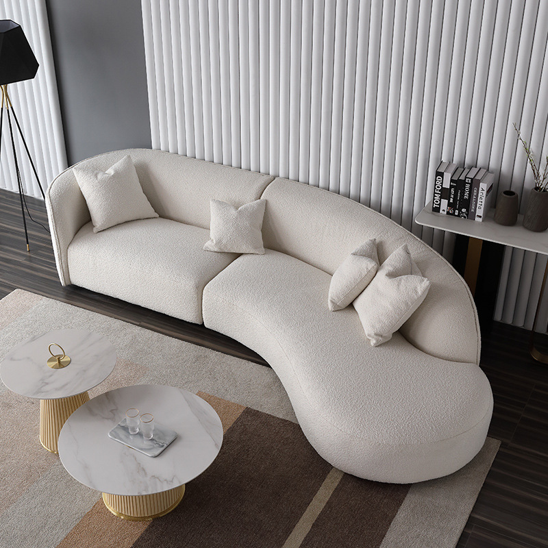意式北欧客厅休闲一体日式羊羔绒布艺弧形异形沙发佛山家具批发