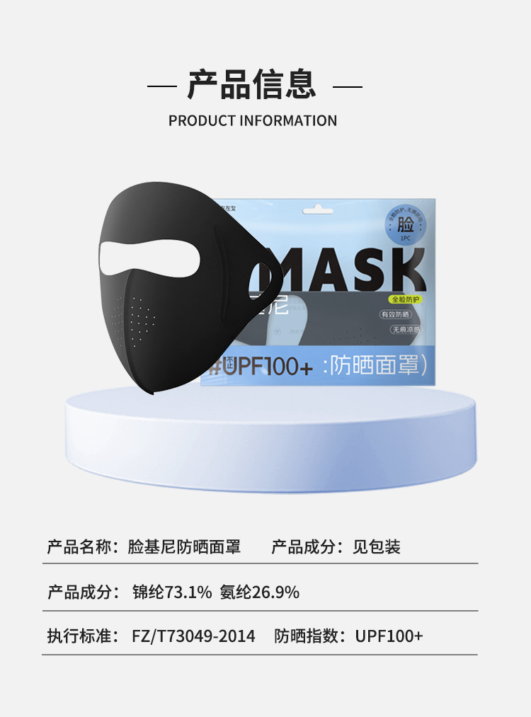 高品质新款夏季脸基尼防晒面罩全脸女口罩透气轻薄户外防紫外线