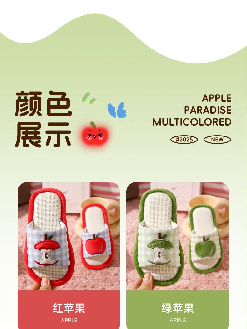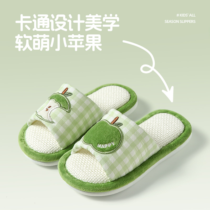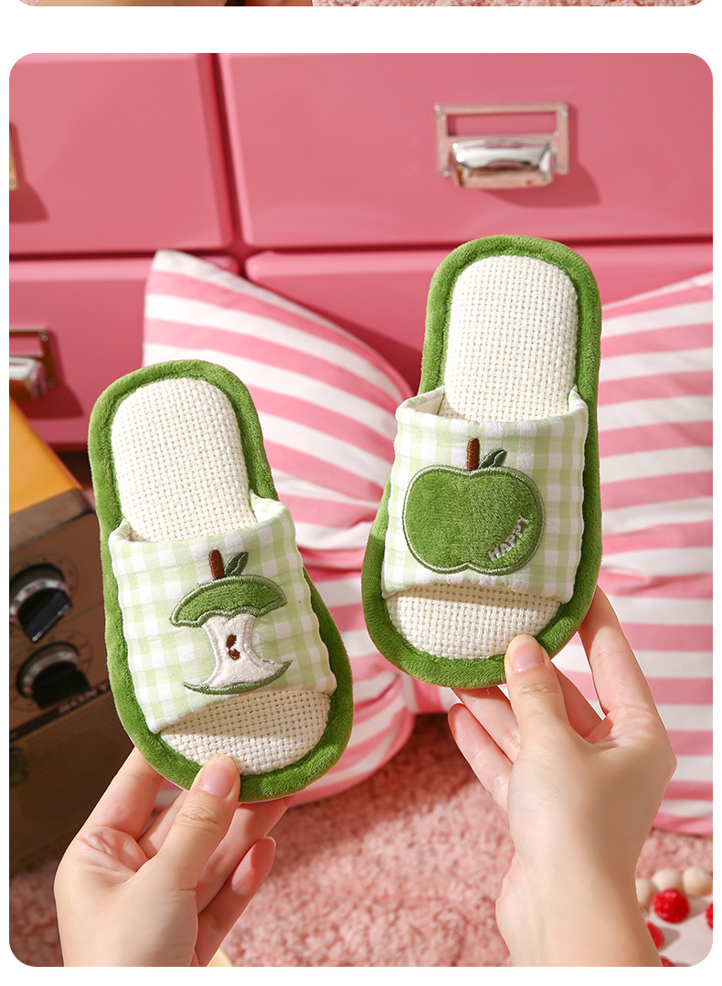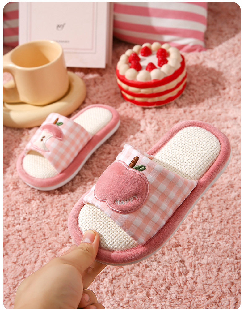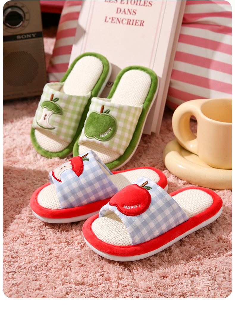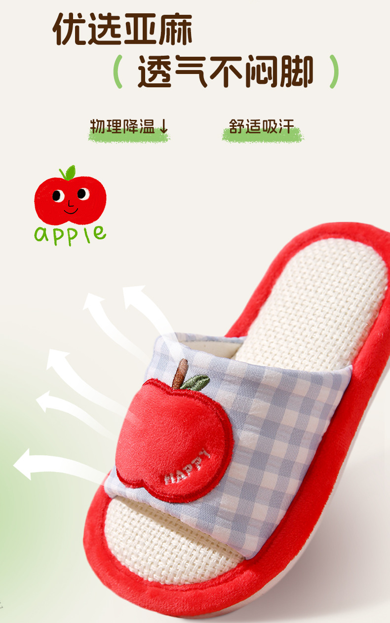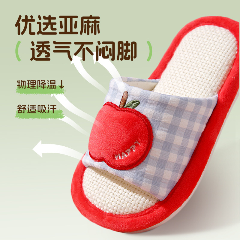 苹果亚麻拖鞋女春秋四季居家室内棉麻透气防滑静音地板家用情侣男