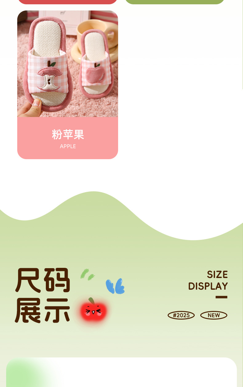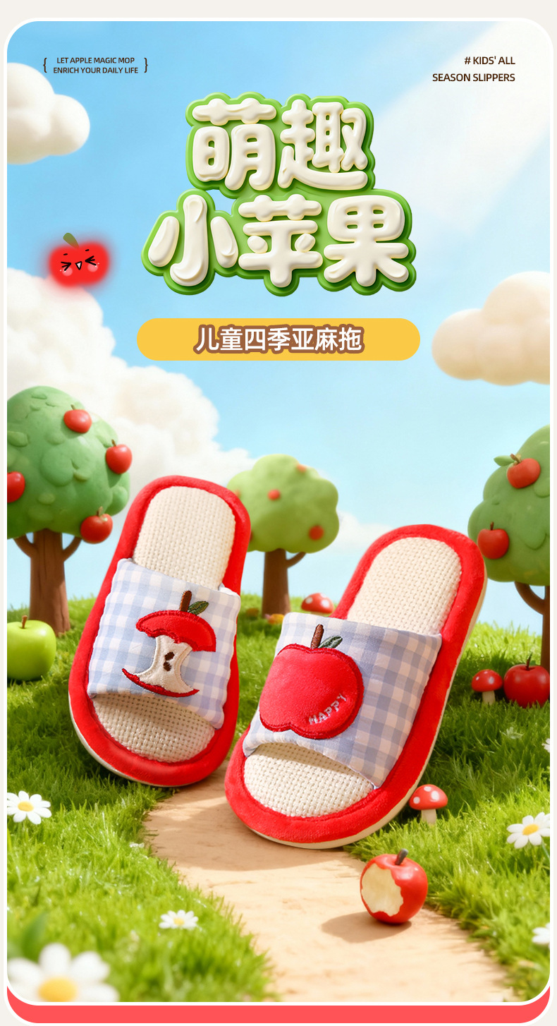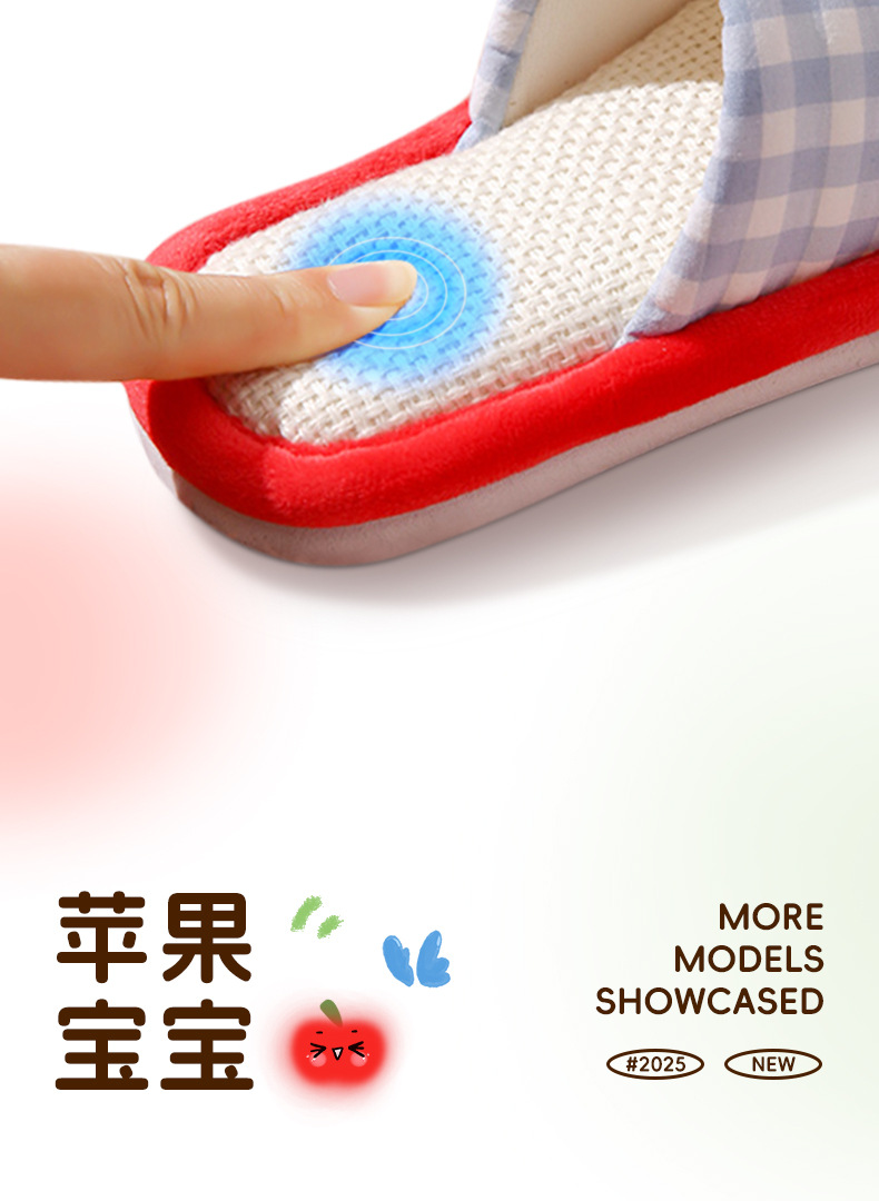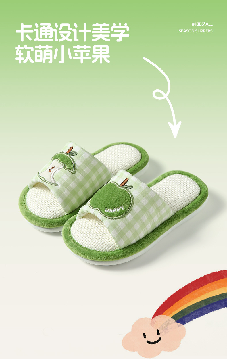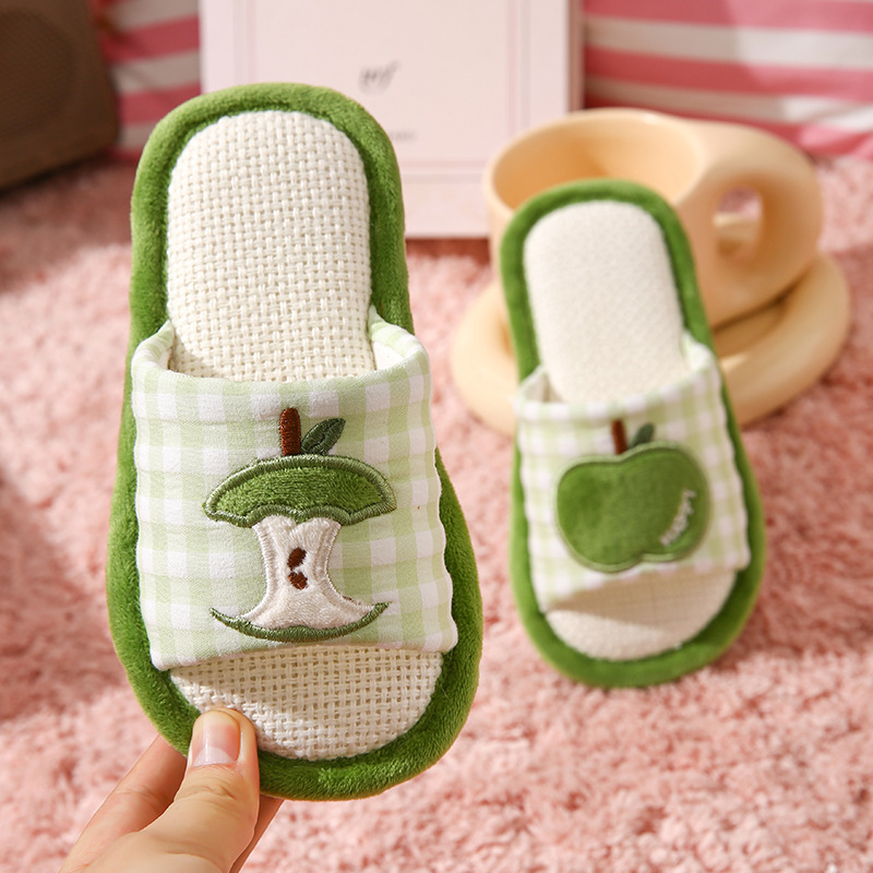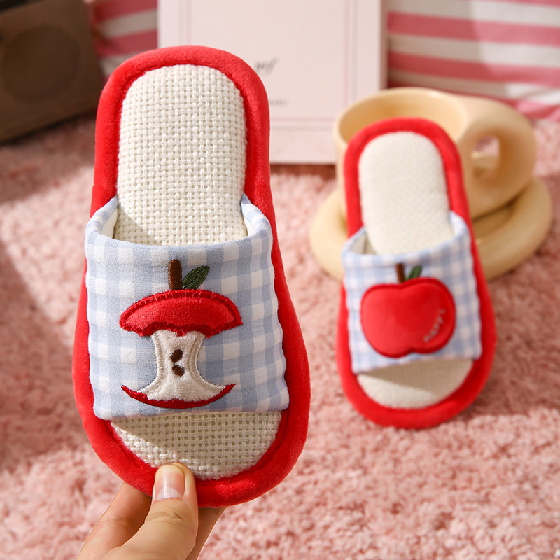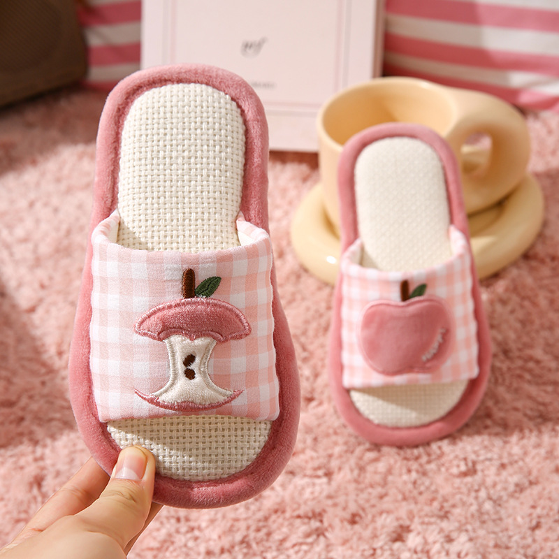 苹果亚麻拖鞋女春秋四季居家室内棉麻透气防滑静音地板家用情侣男