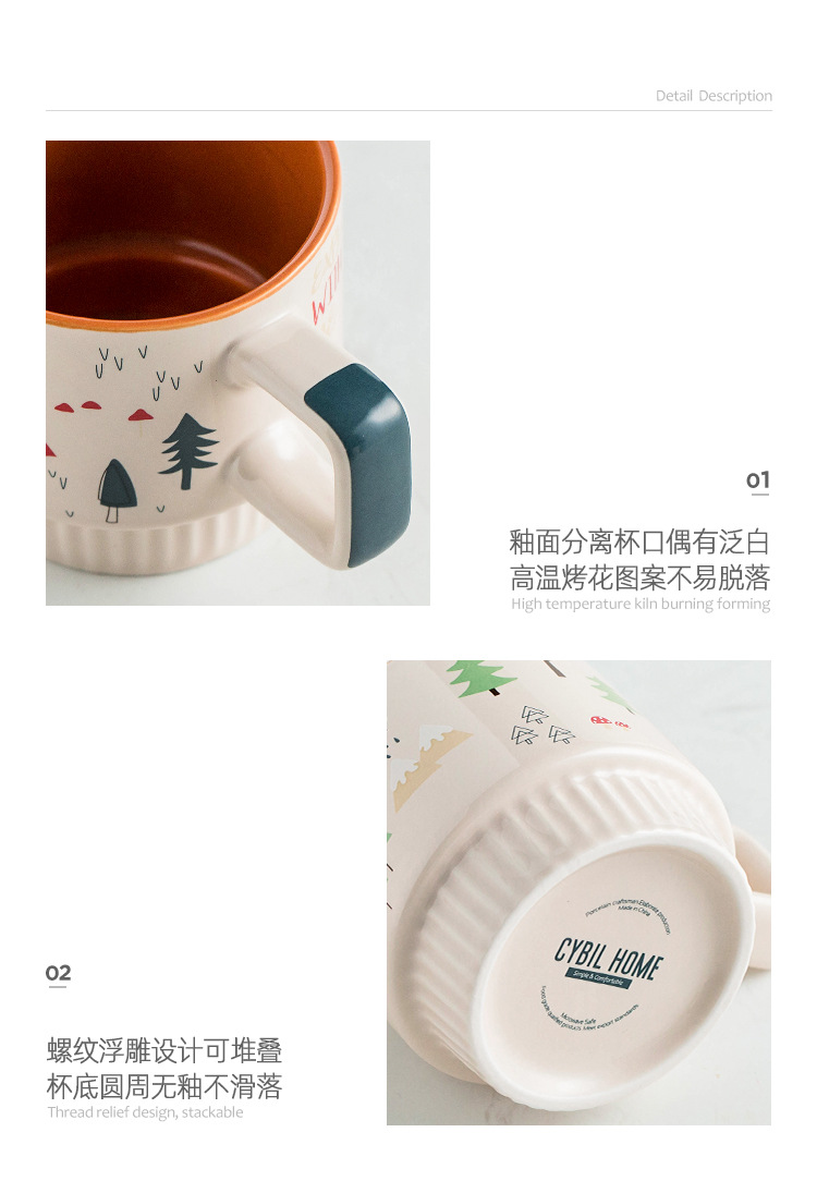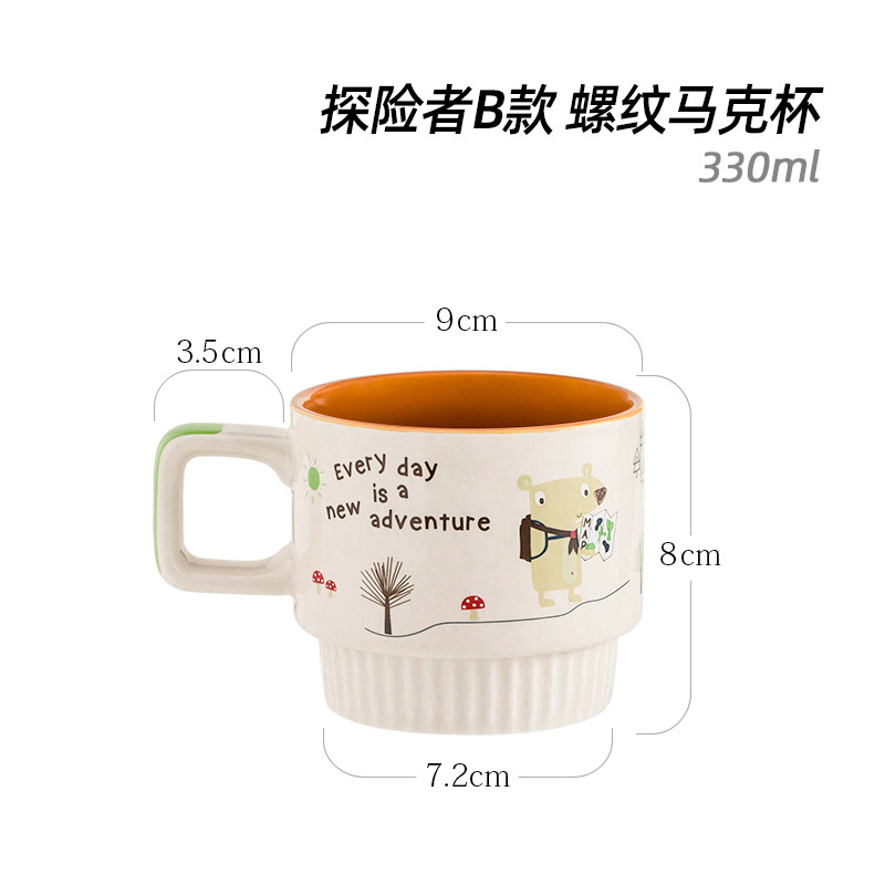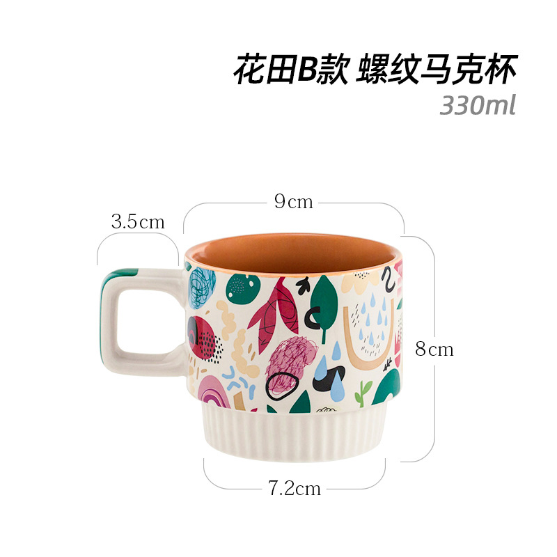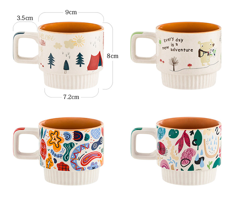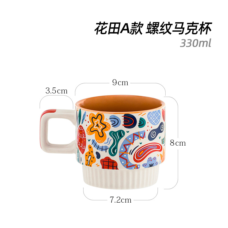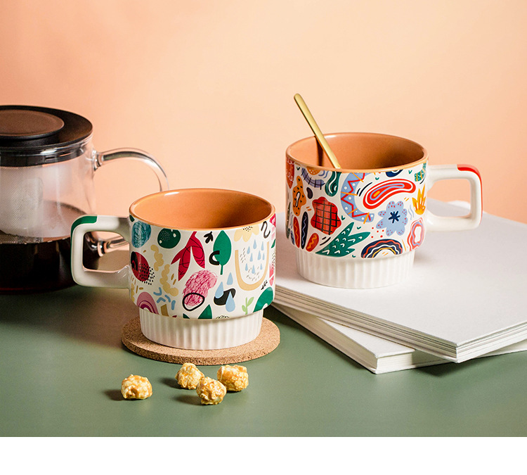 潮佰 卡通陶瓷马克杯咖啡杯条纹北欧ins杯子女办公室家用早餐杯
