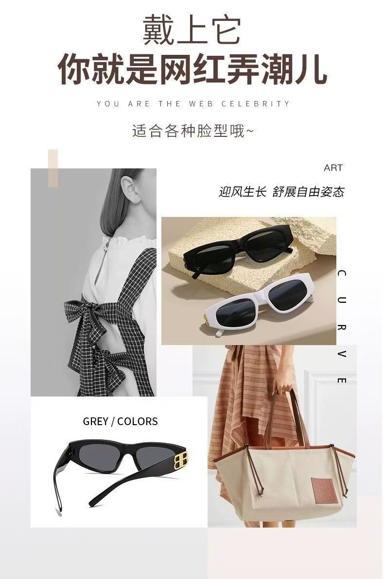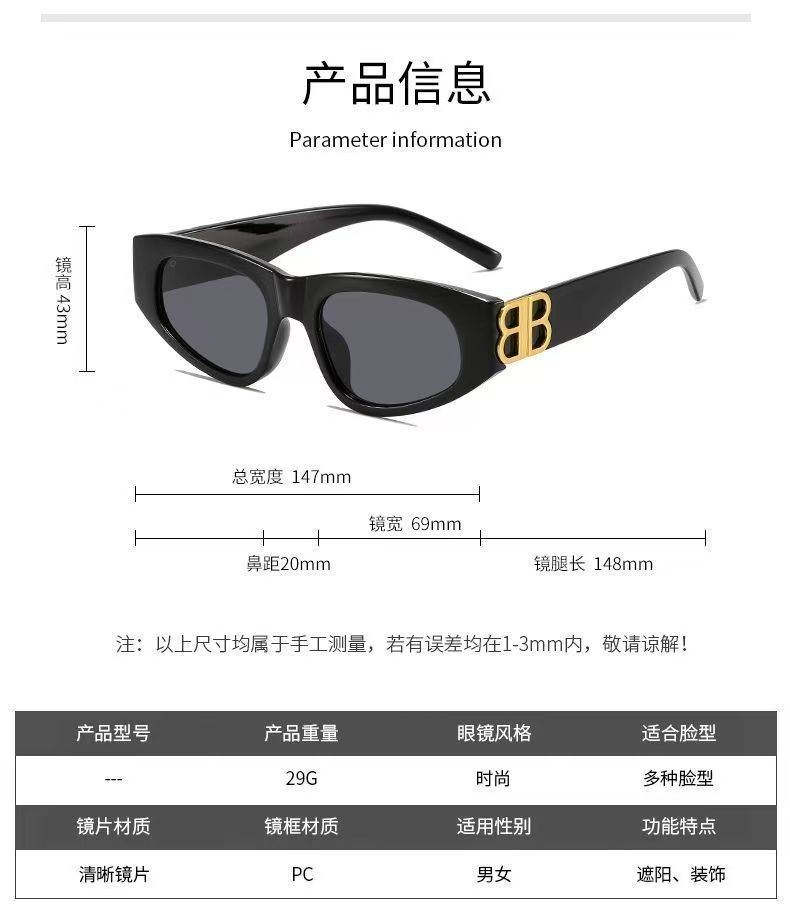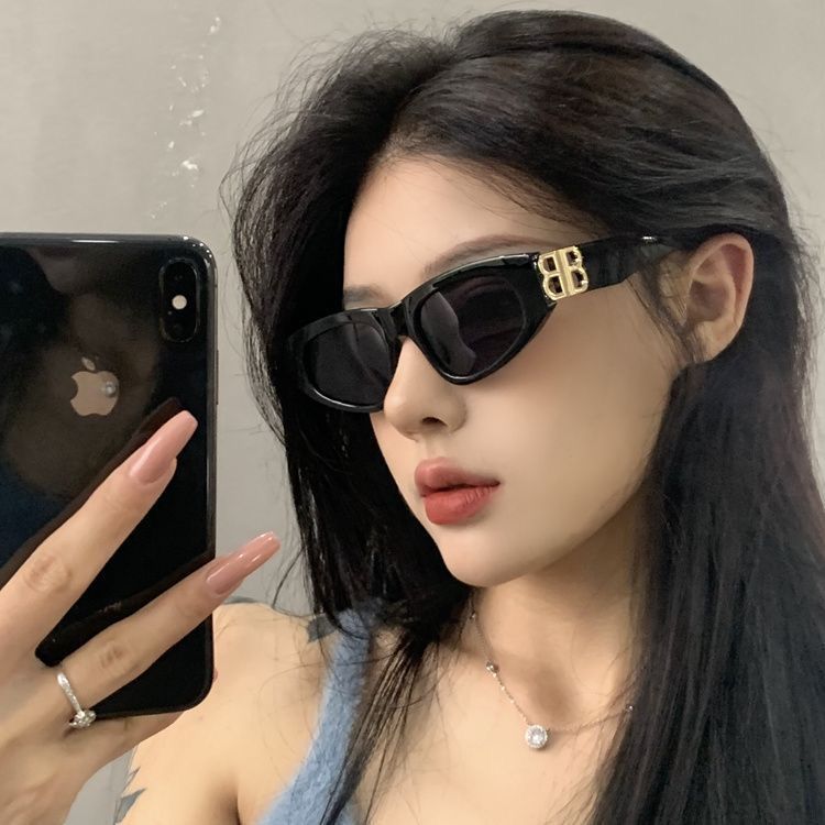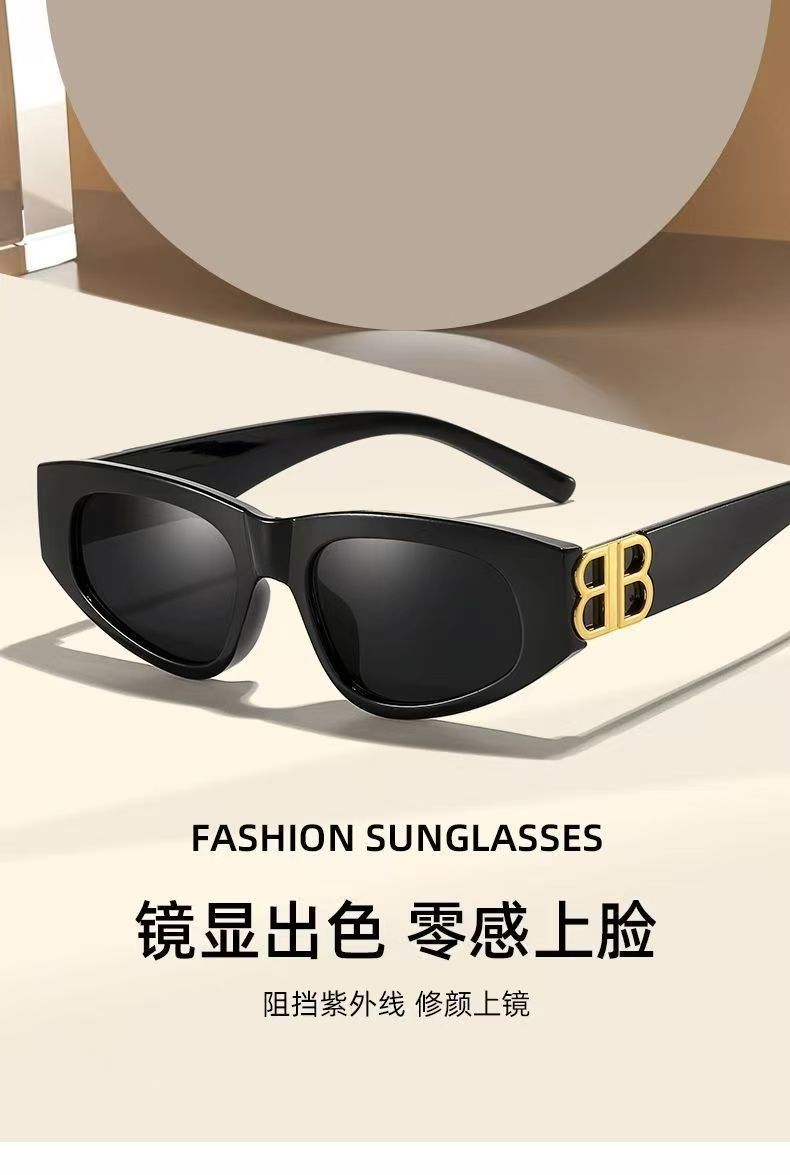 BB新款猫眼太阳镜女网红同款复古高级感防紫外线墨镜可配近视眼镜