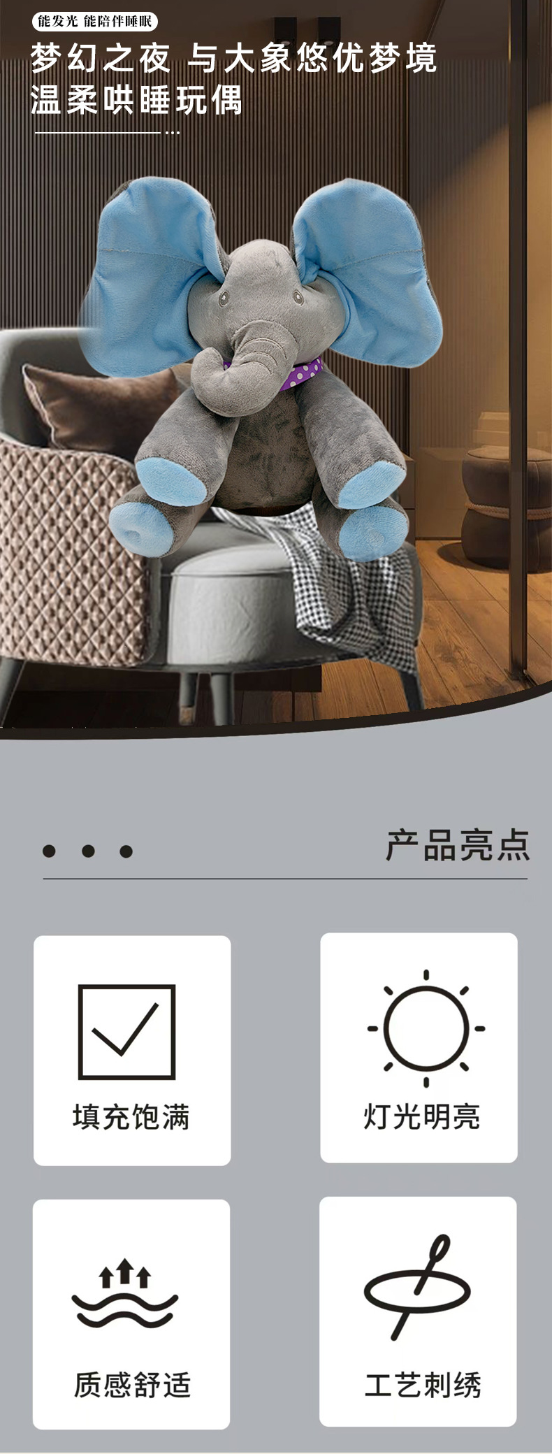 跨境电动大象躲猫猫音乐玩具大象扇耳朵小象会说话会动的毛绒玩具
