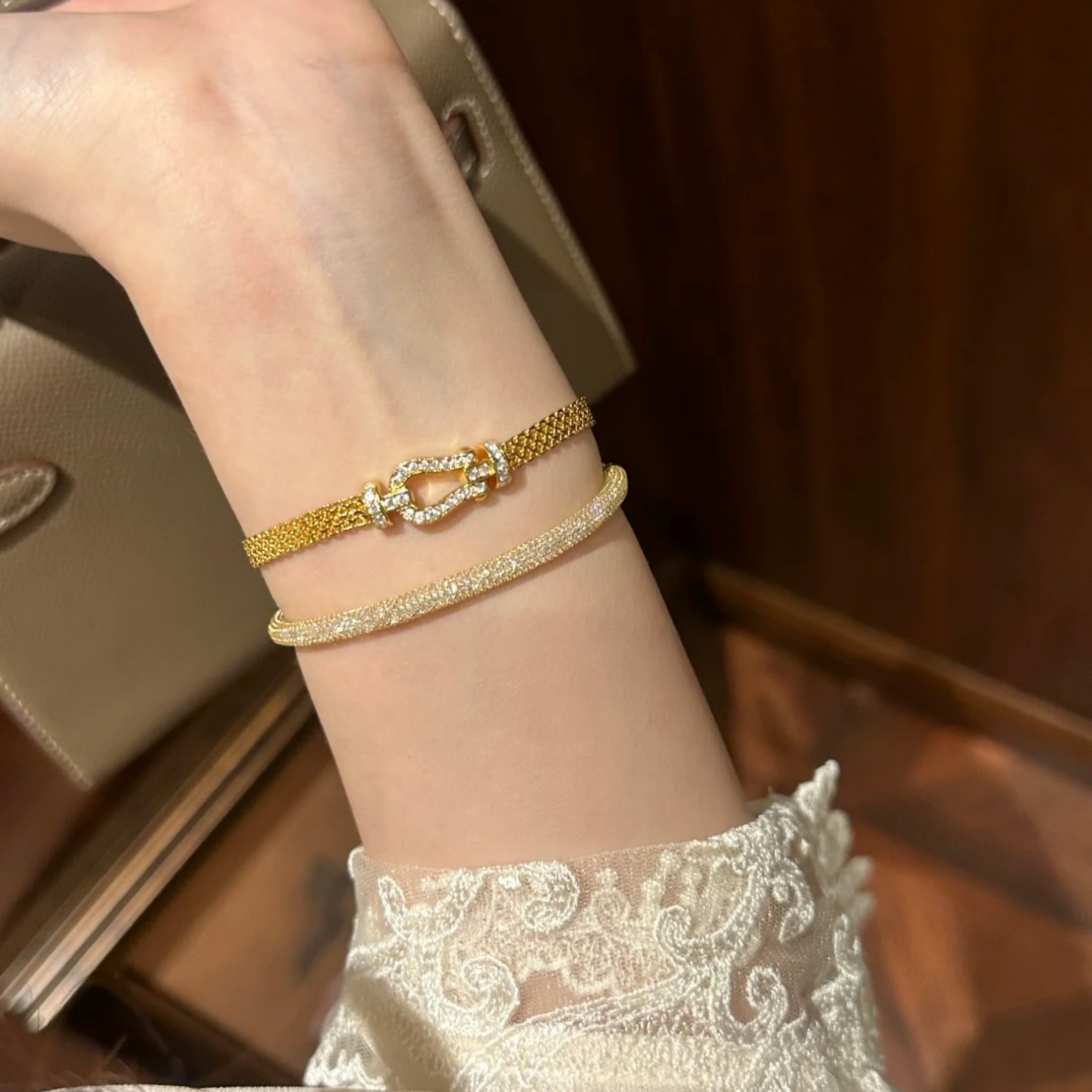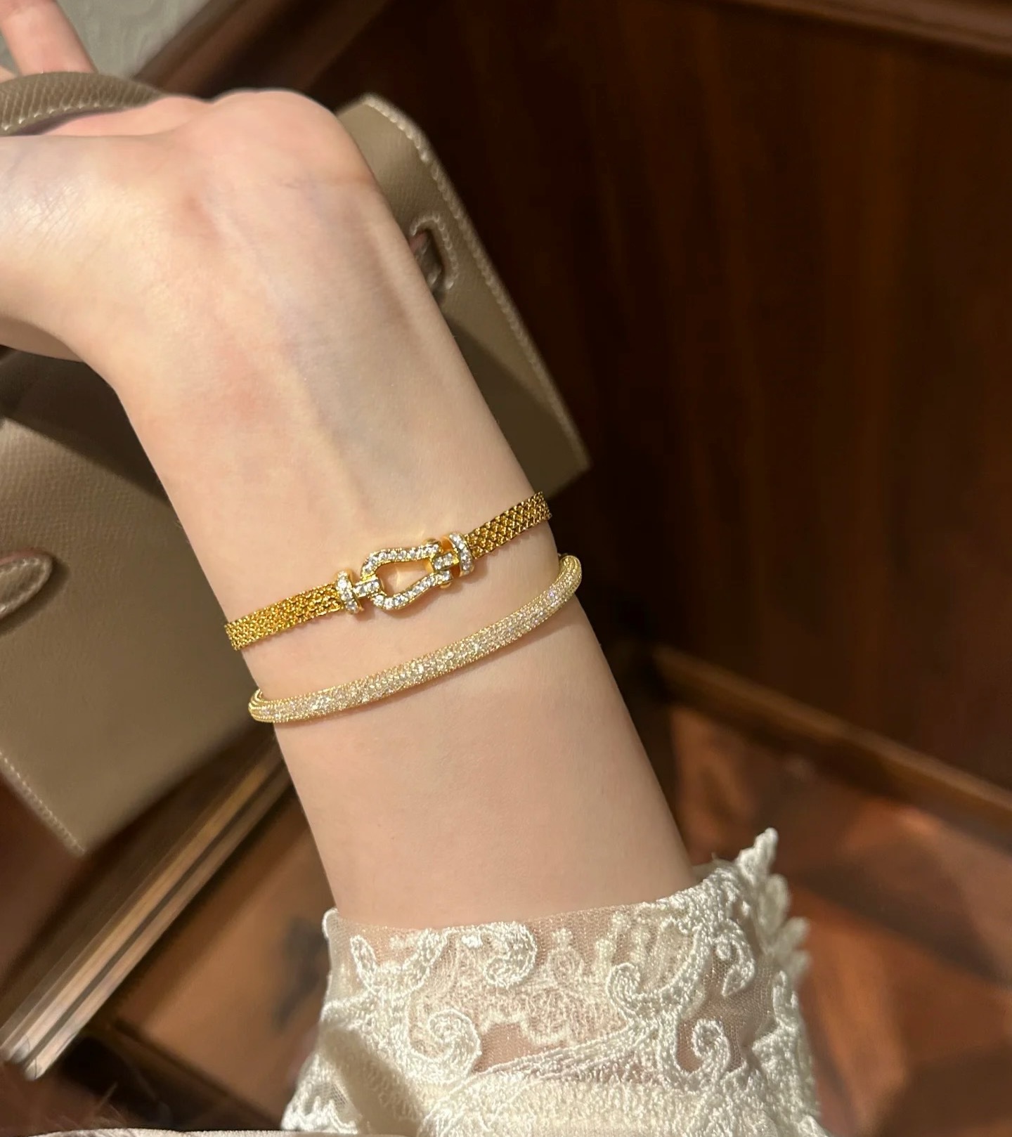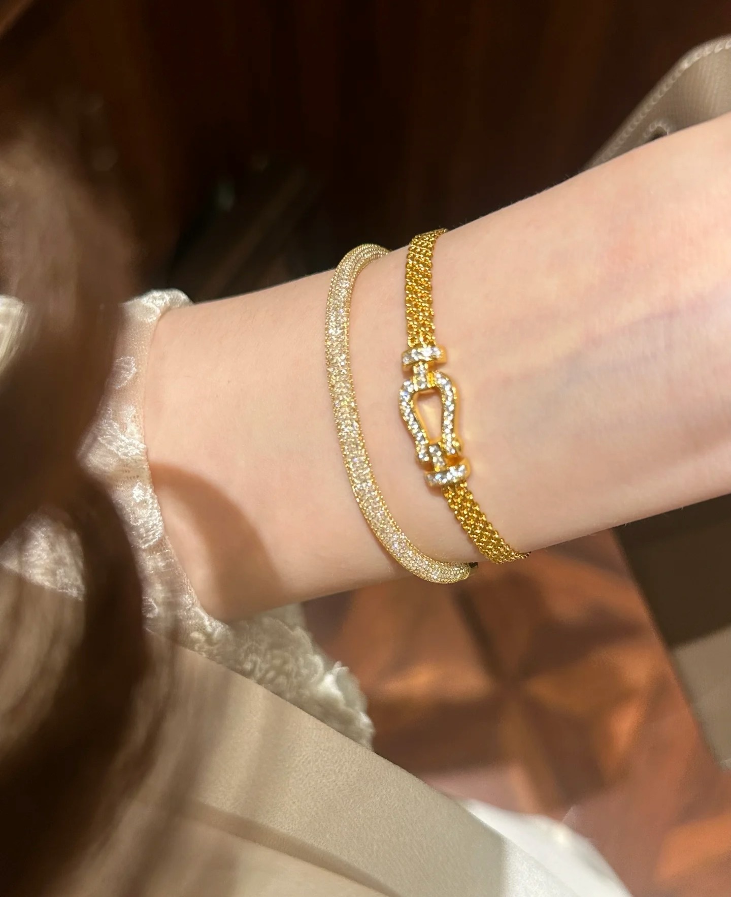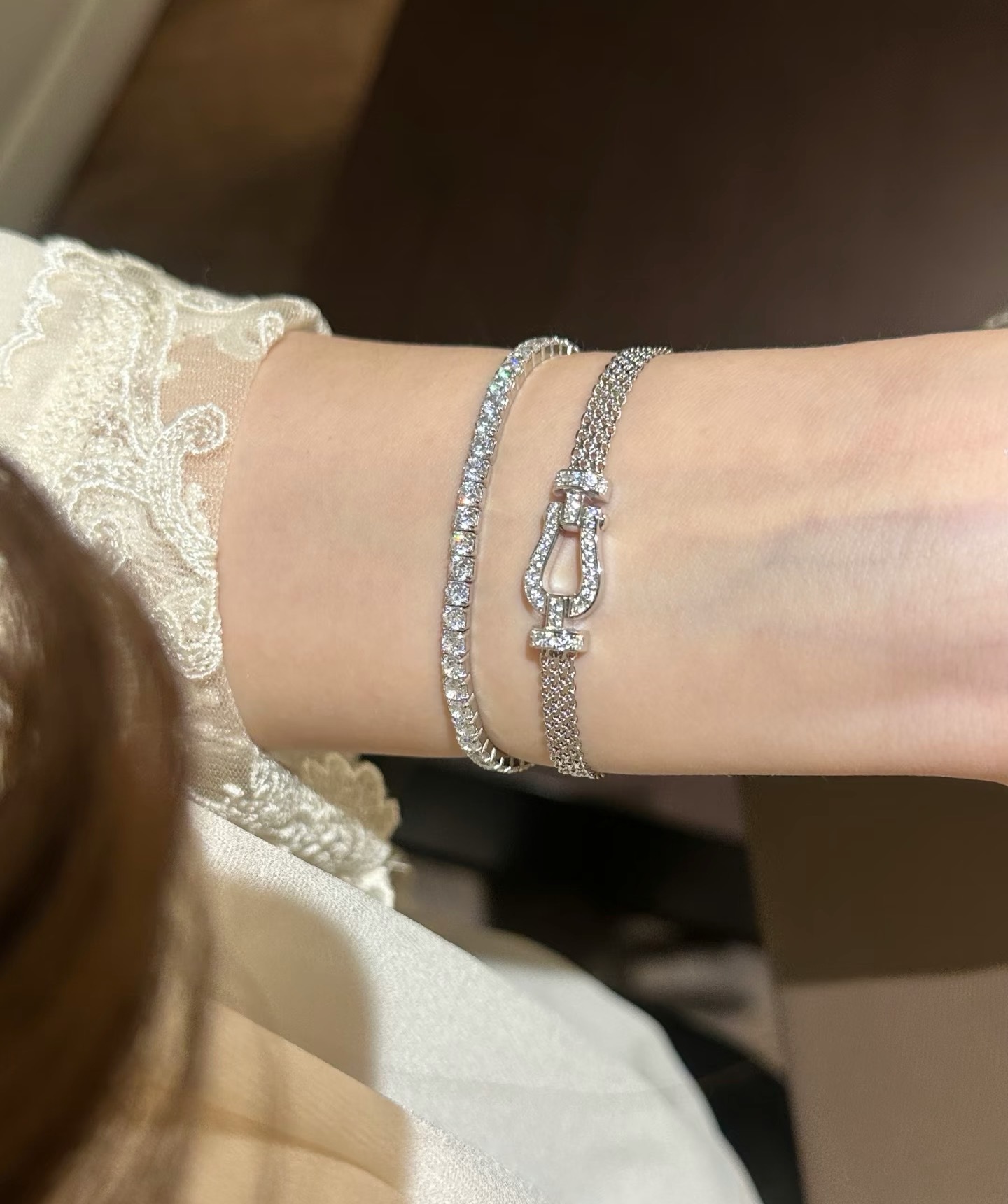 S925纯银高碳钻轻奢风马蹄扣表链手链气质时尚高级风格小众设计款