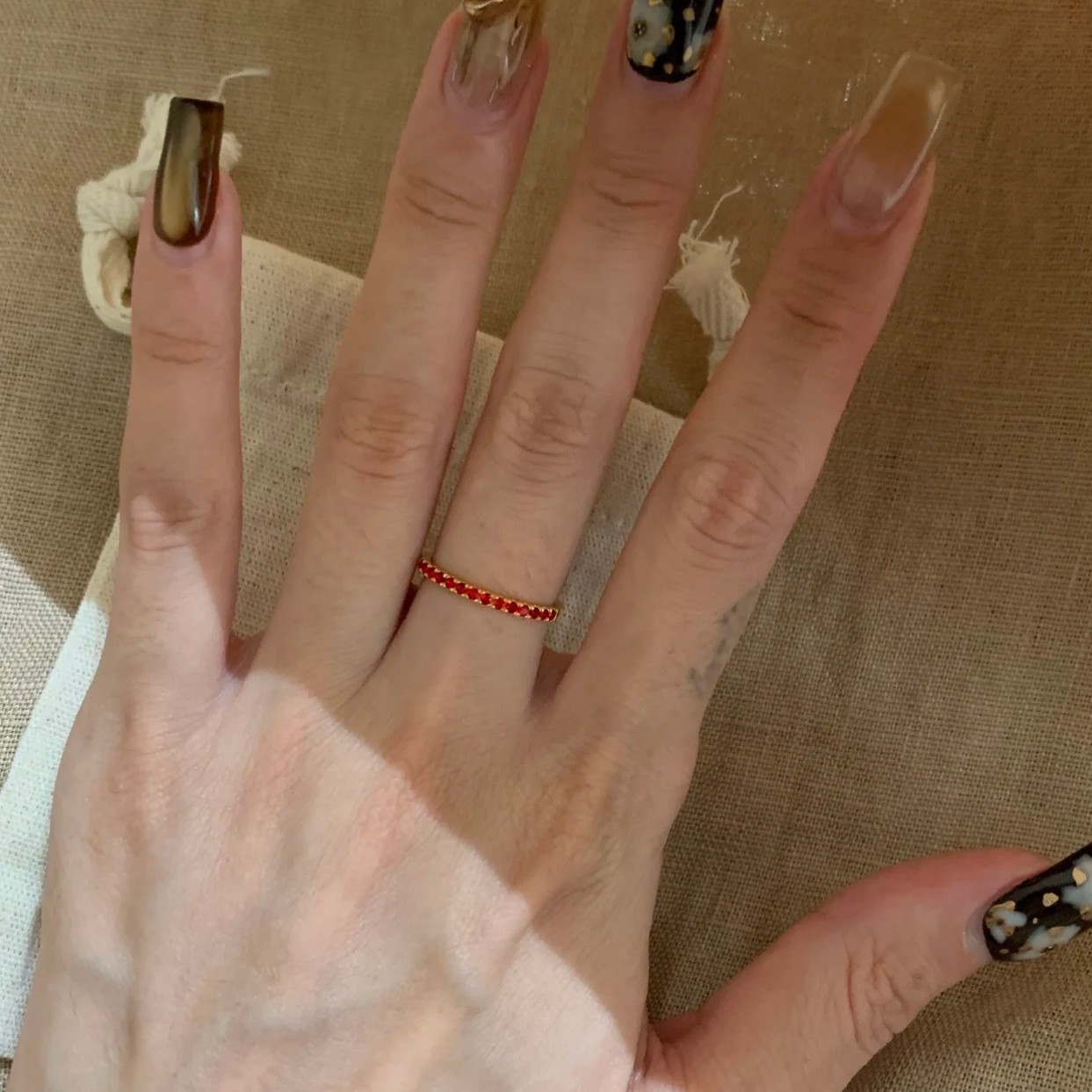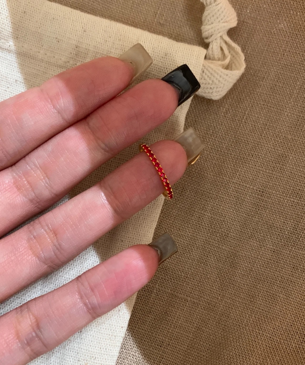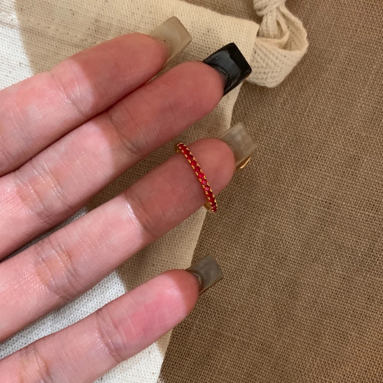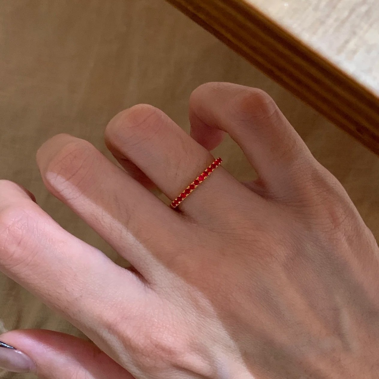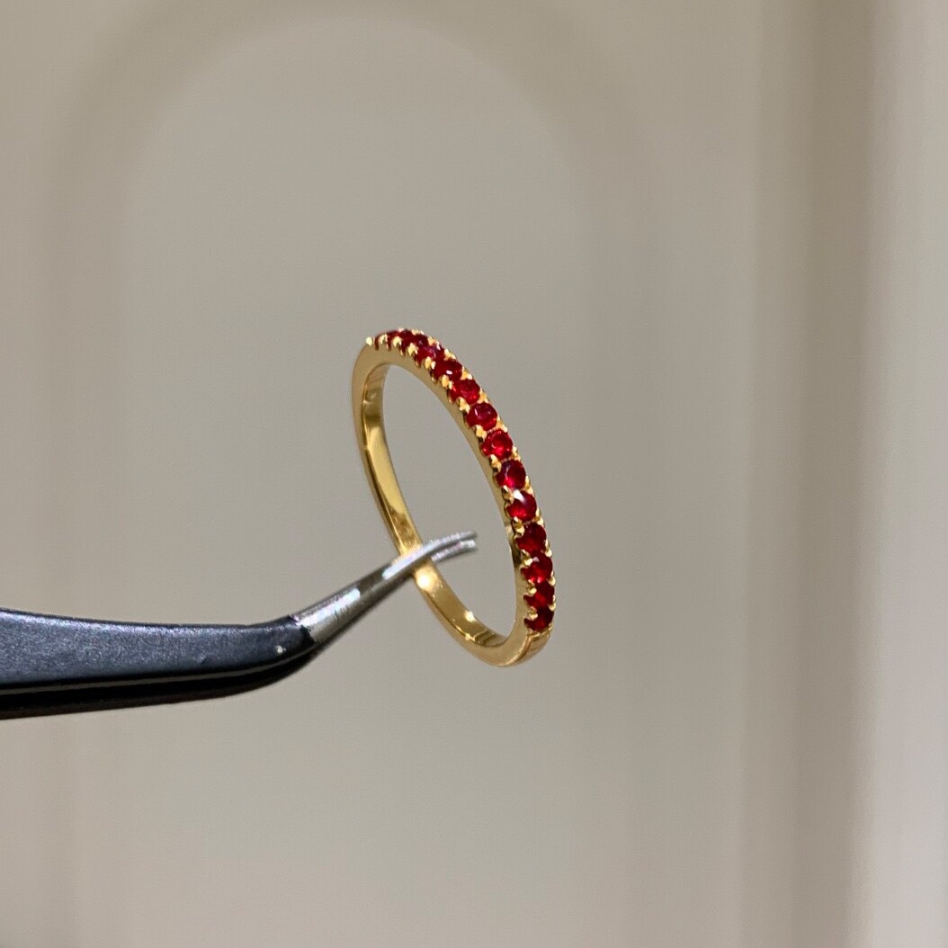 纯银S925意大利工艺新年红排钻叠带王戒指轻奢高级感简约百搭指环