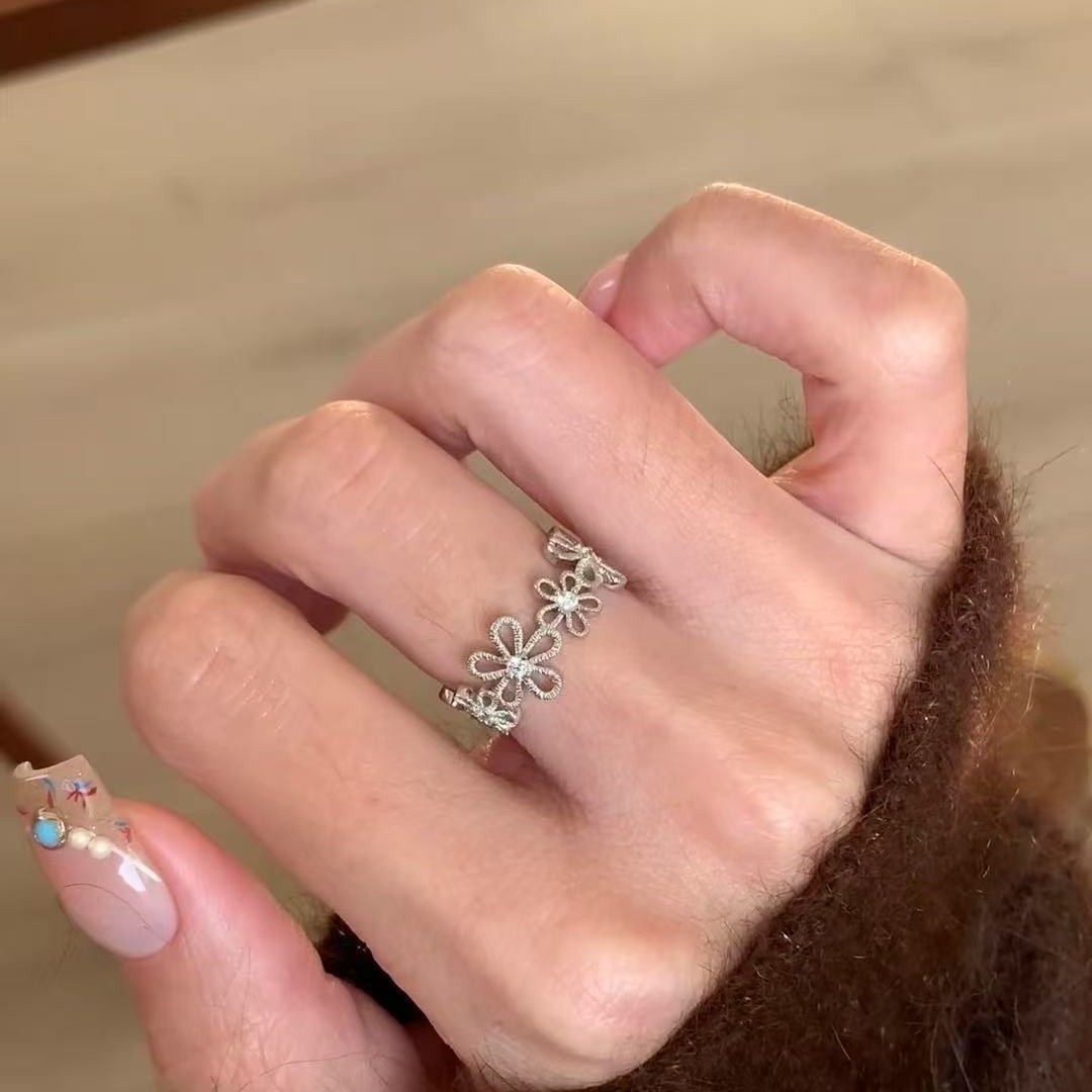 意大利中古拉丝轻奢高级感珠宝925纯银拉丝工艺锻面米粒戒指新款