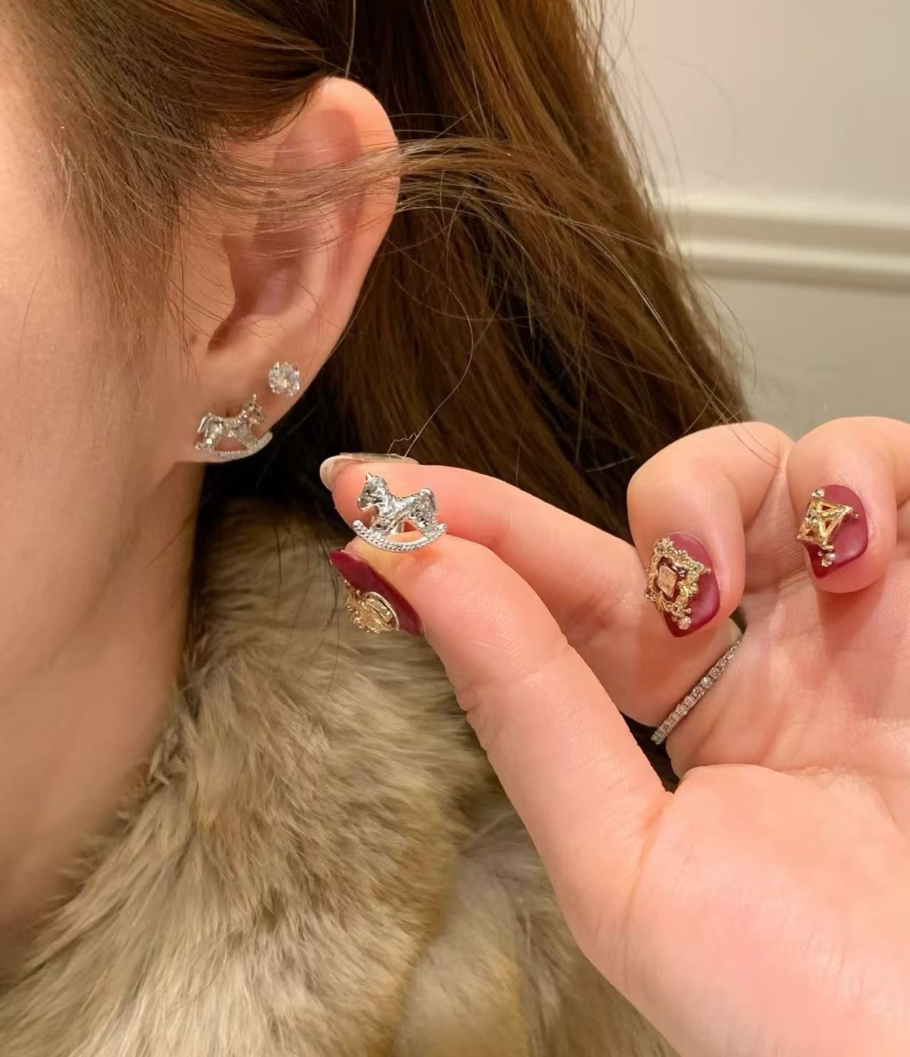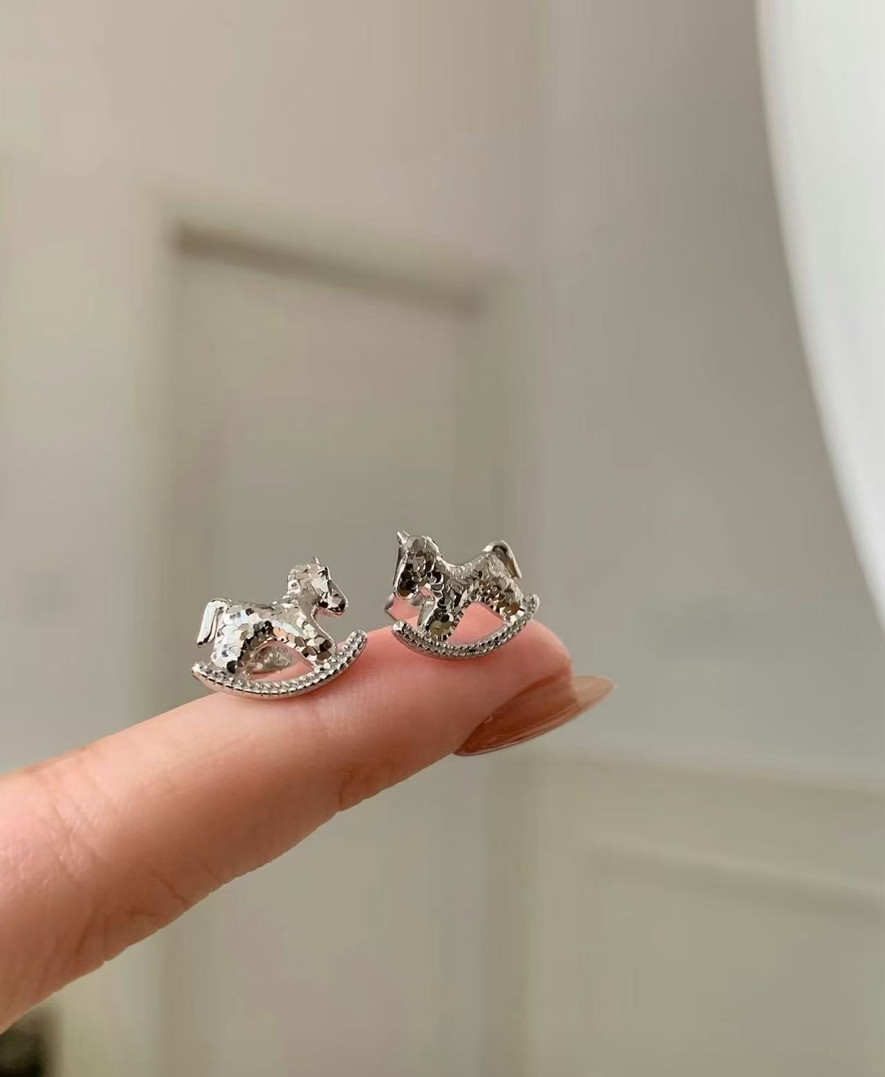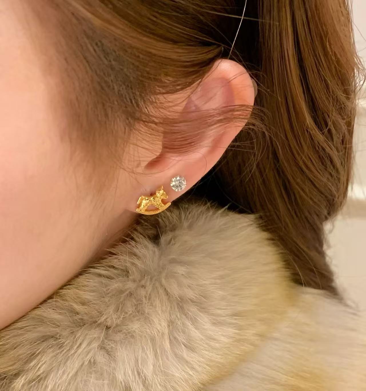 纯银s925CNC工艺碎冰冰小马耳钉新款生肖马闪动可爱轻奢高级耳饰