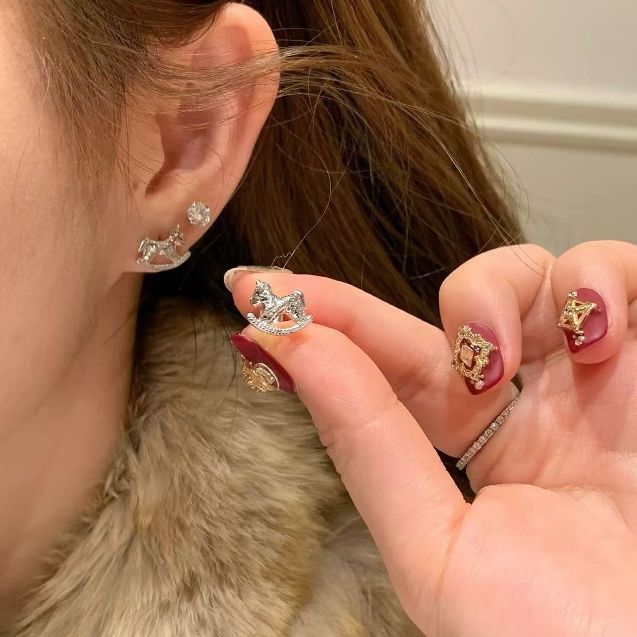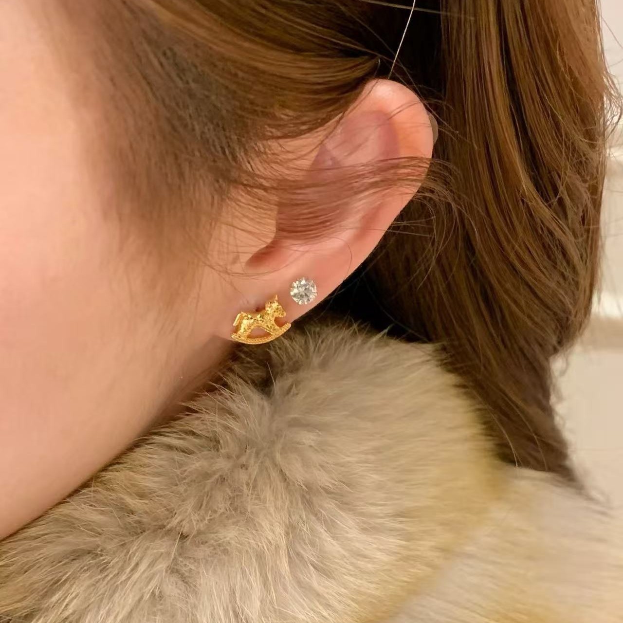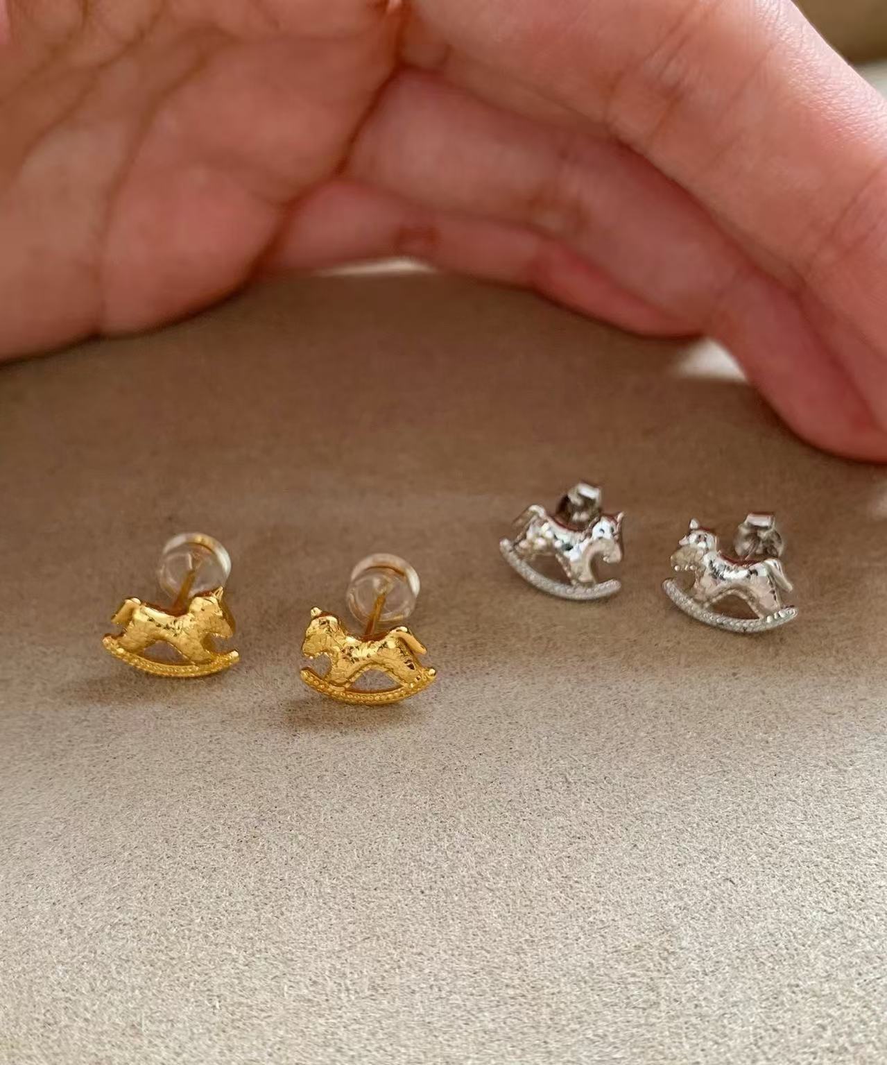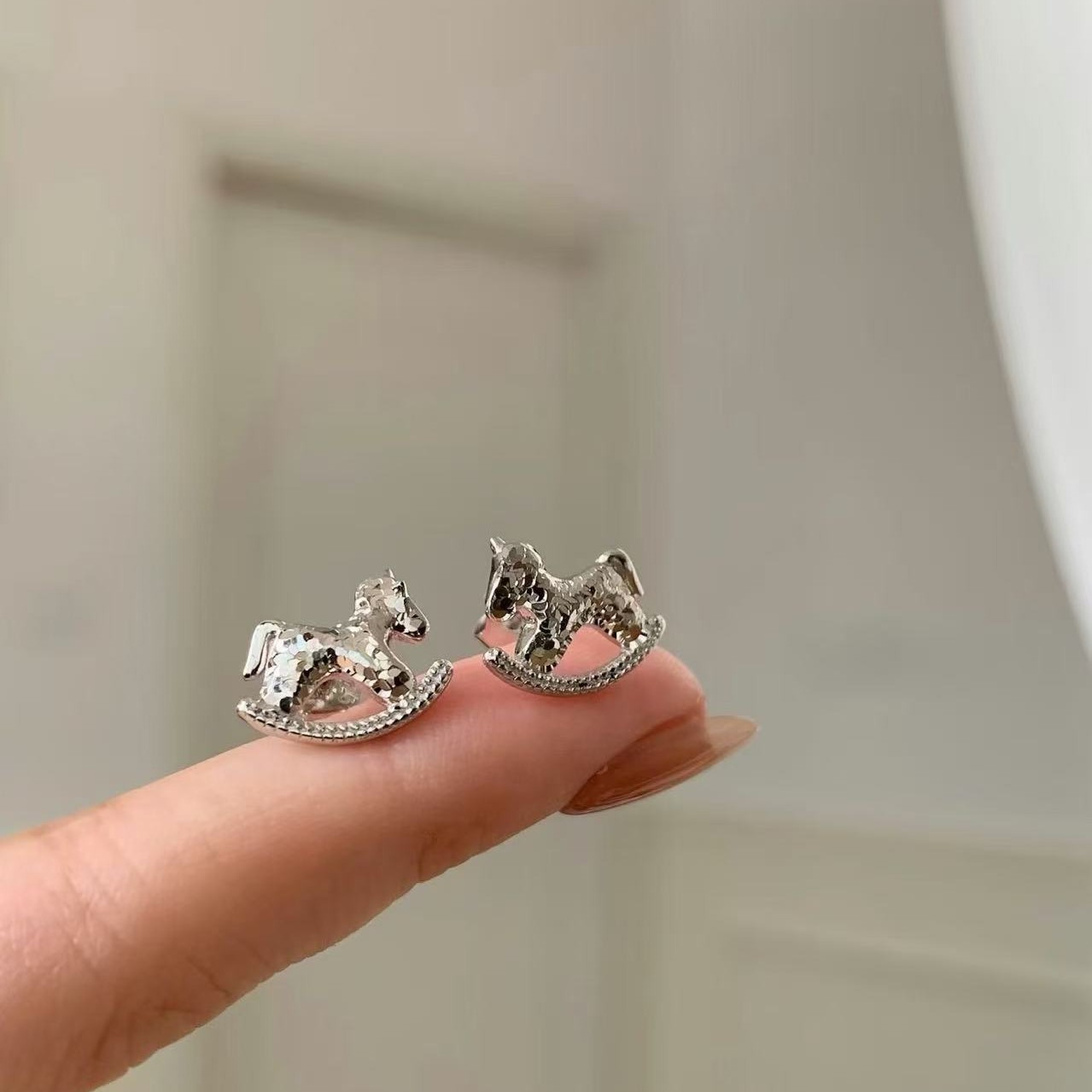 纯银s925CNC工艺碎冰冰小马耳钉新款生肖马闪动可爱轻奢高级耳饰