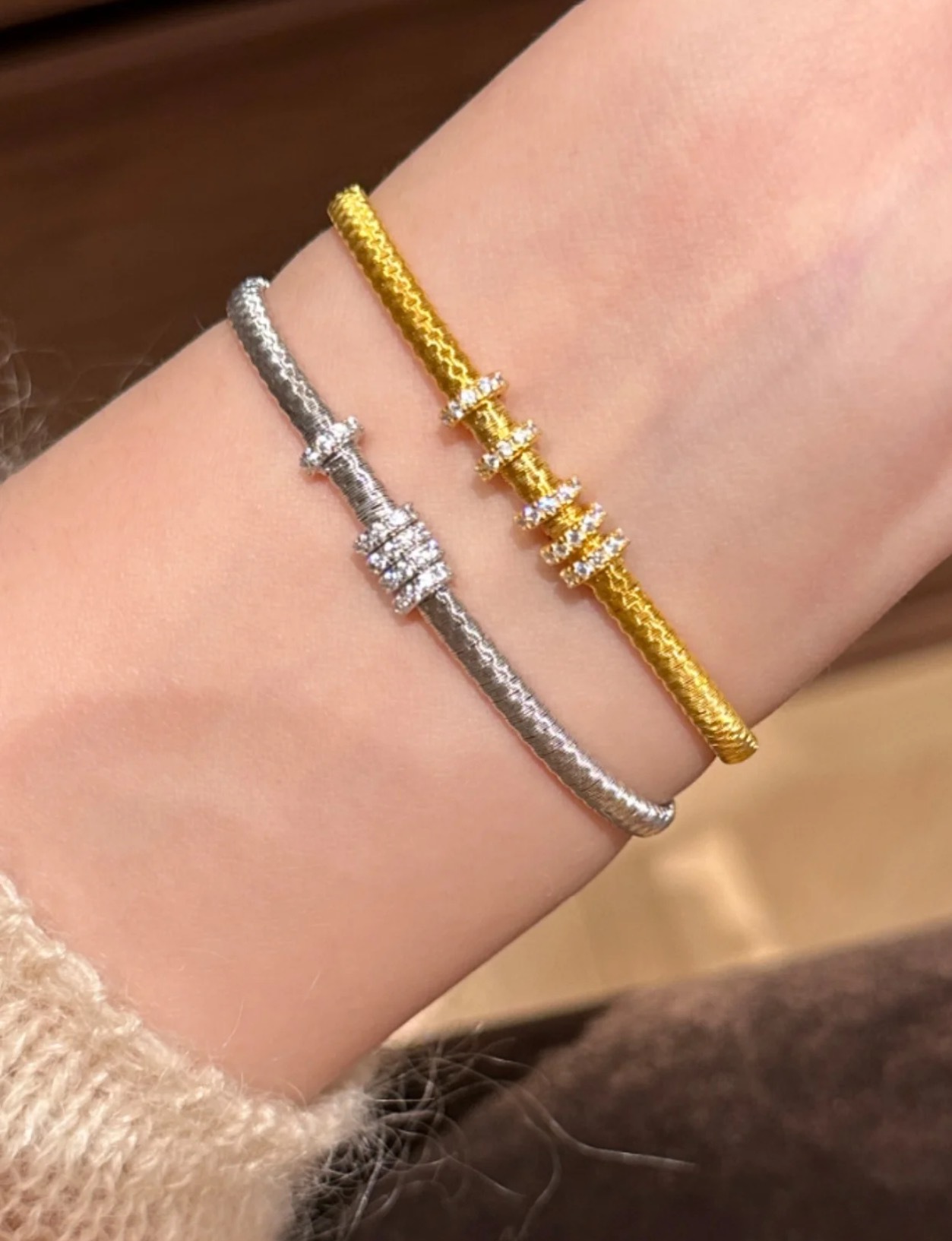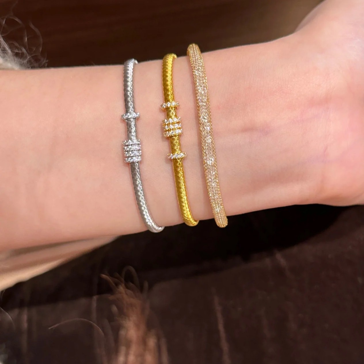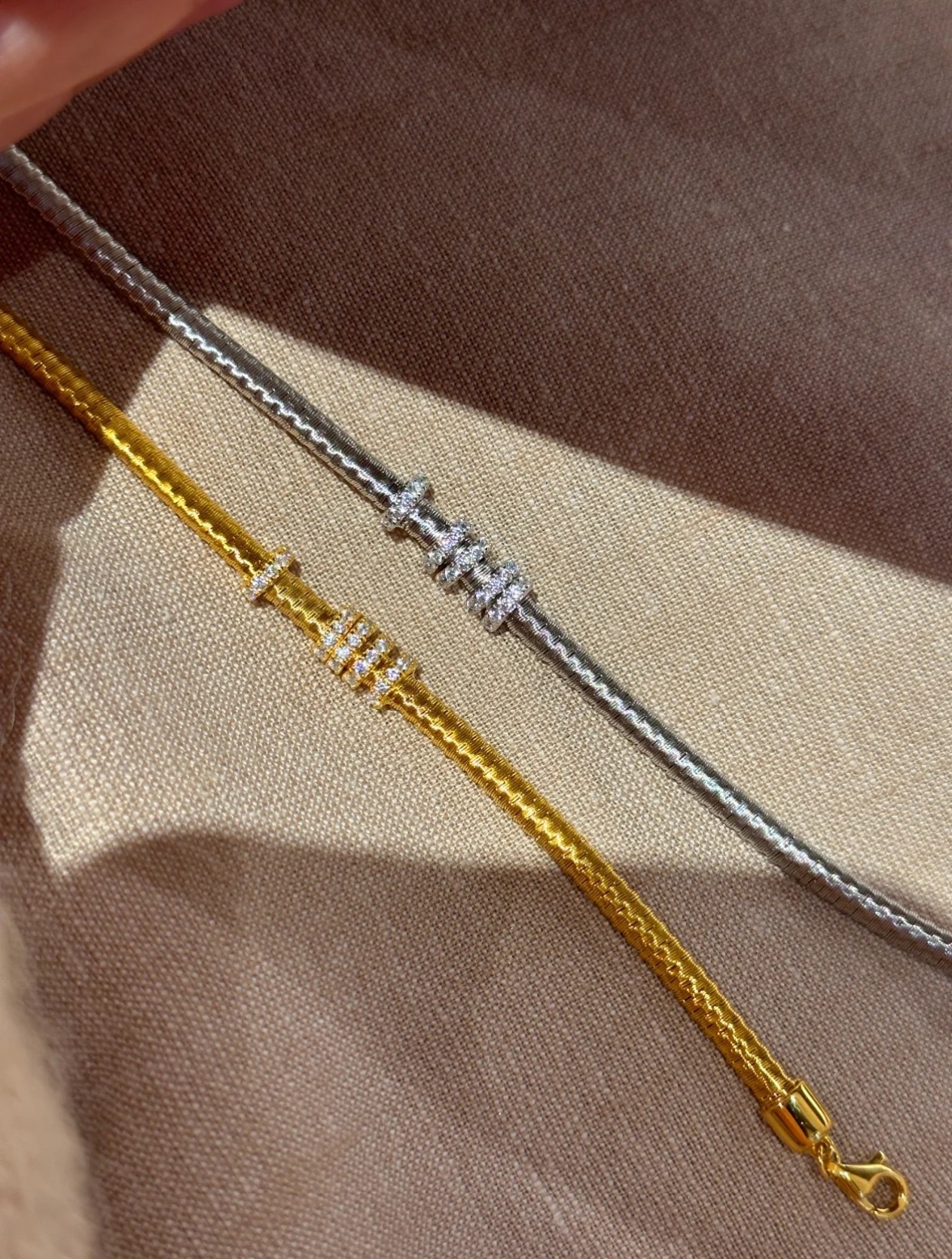 纯银S925意大利进口金弦线跑环手链满圈镶钻重工高级感百搭手饰
