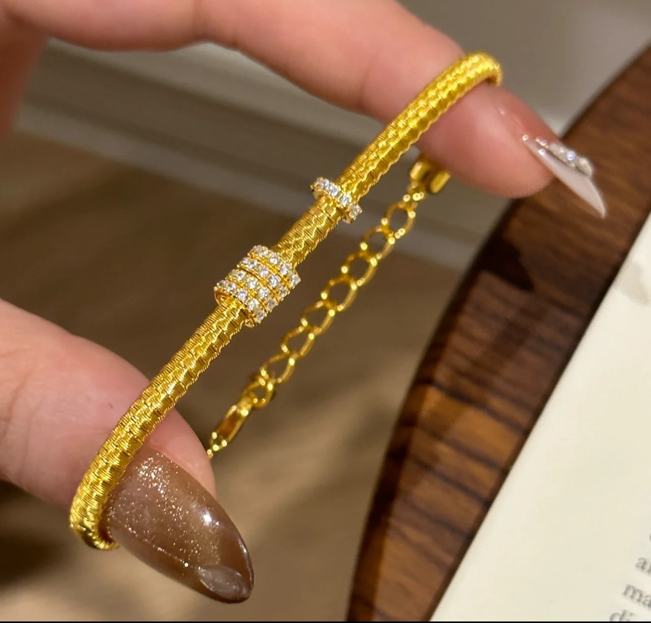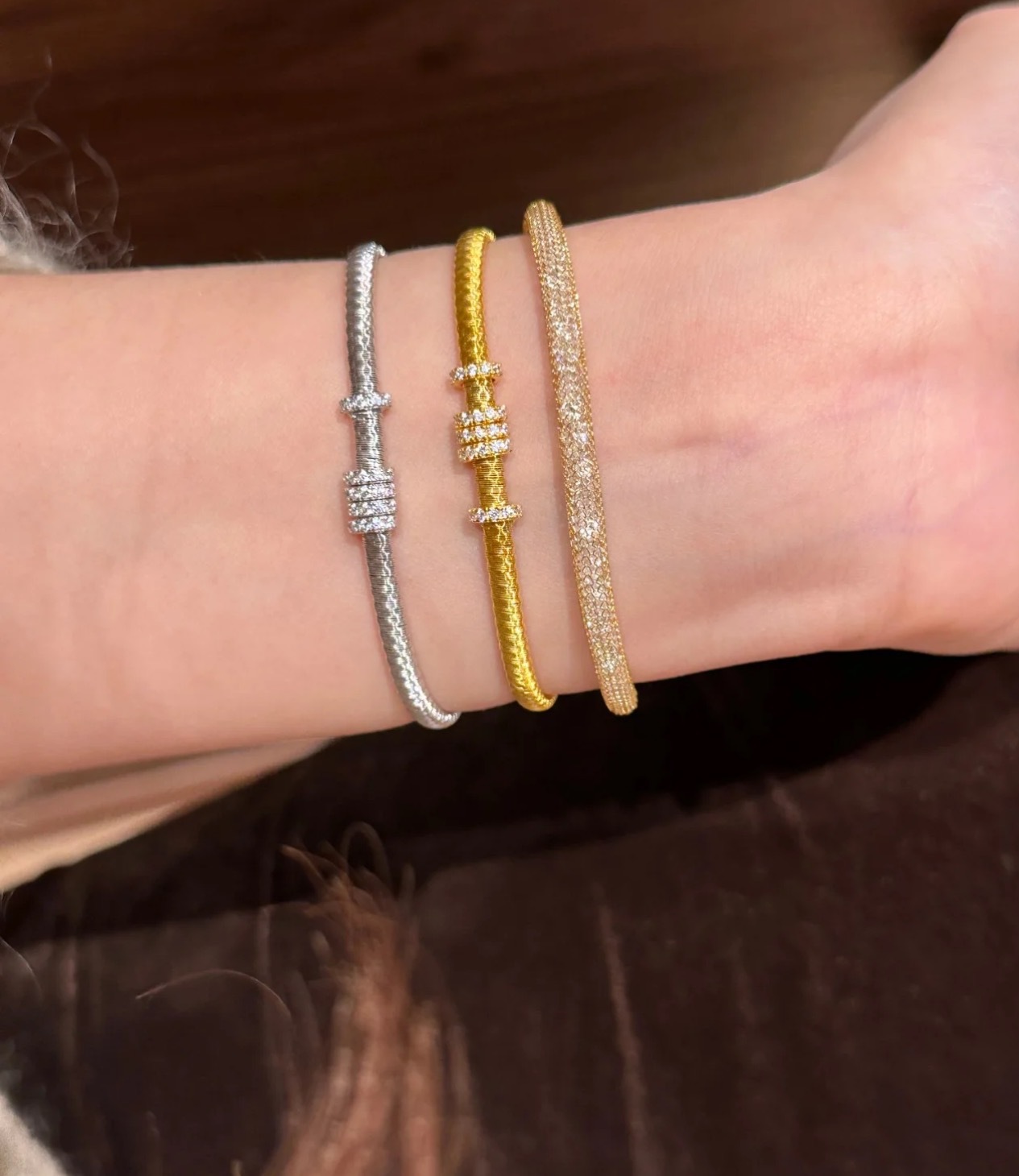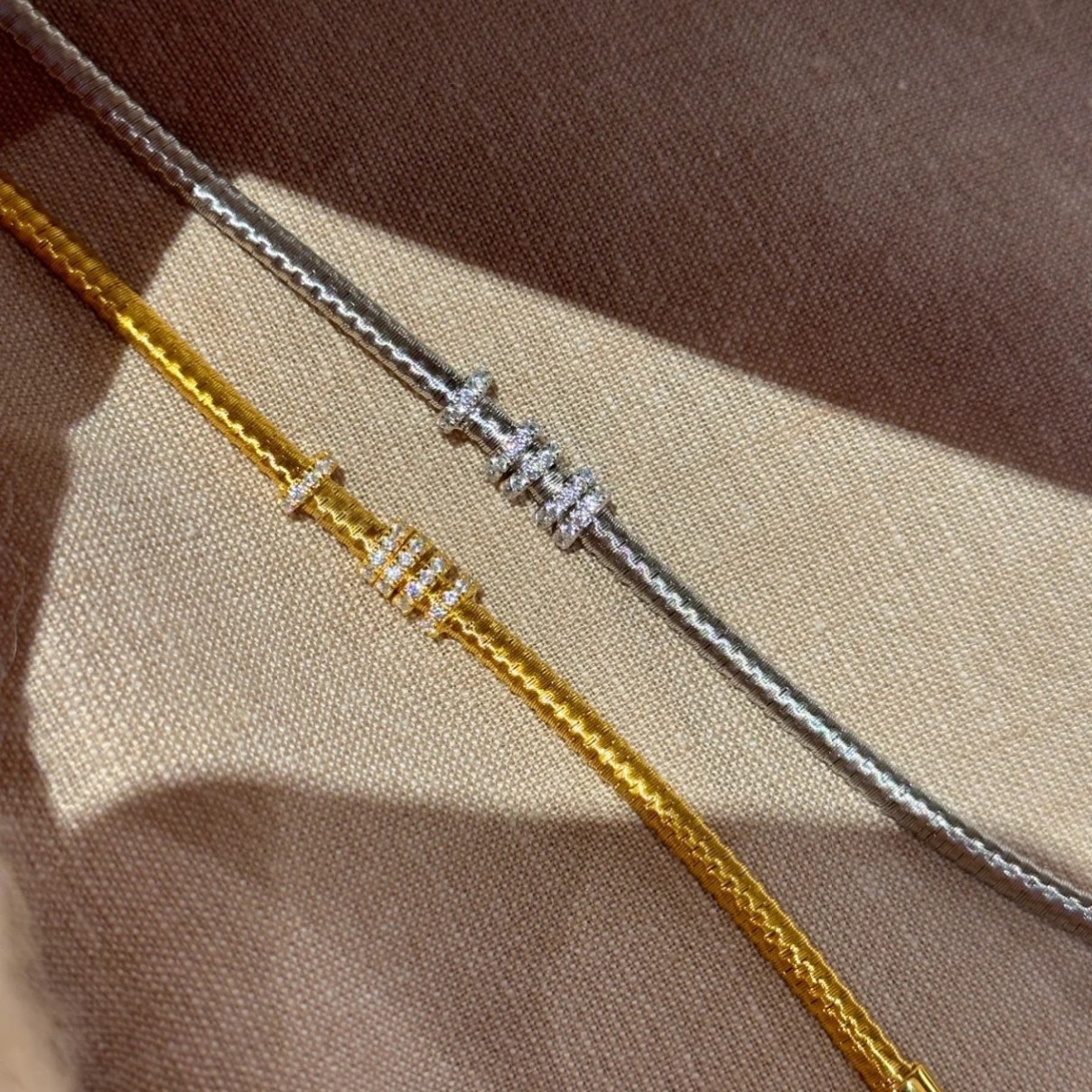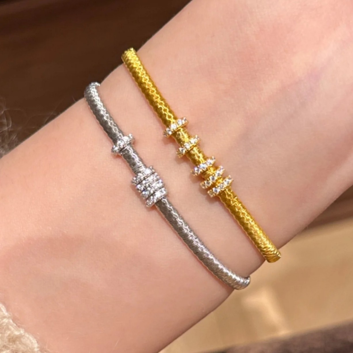 纯银S925意大利进口金弦线跑环手链满圈镶钻重工高级感百搭手饰