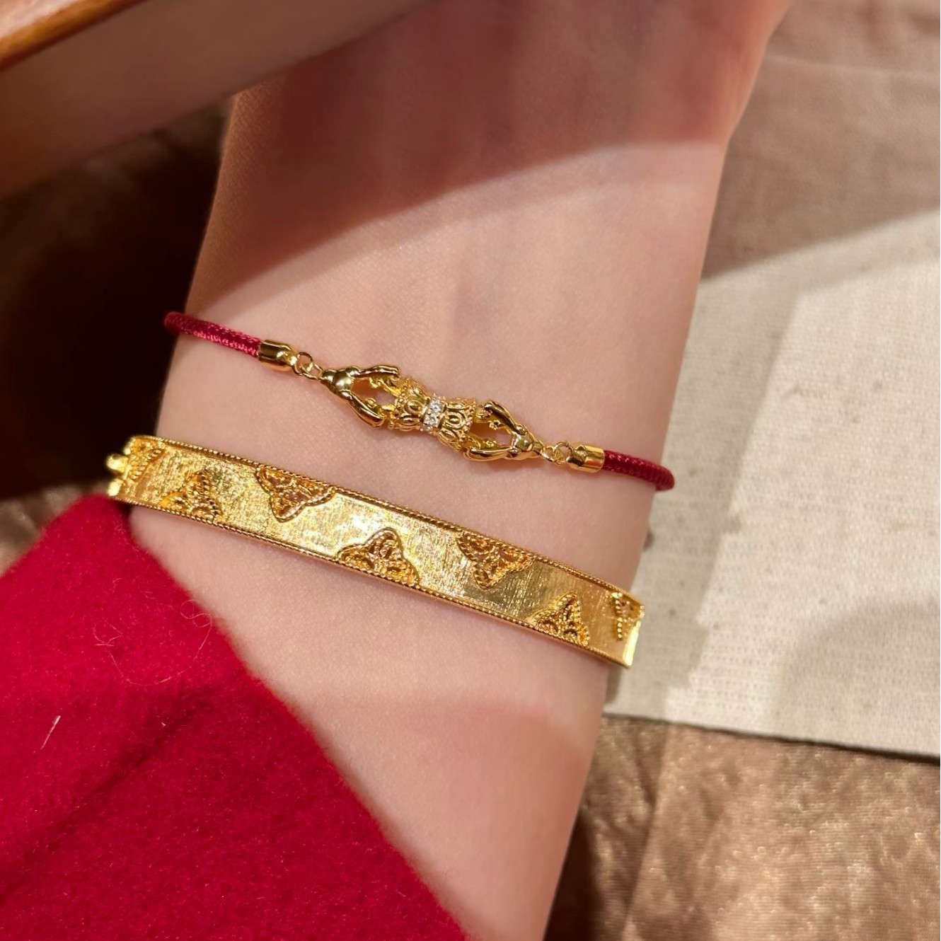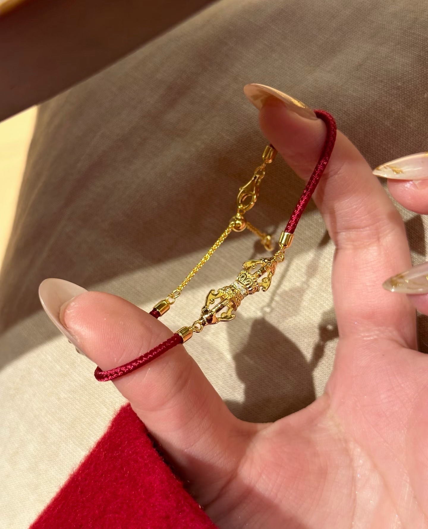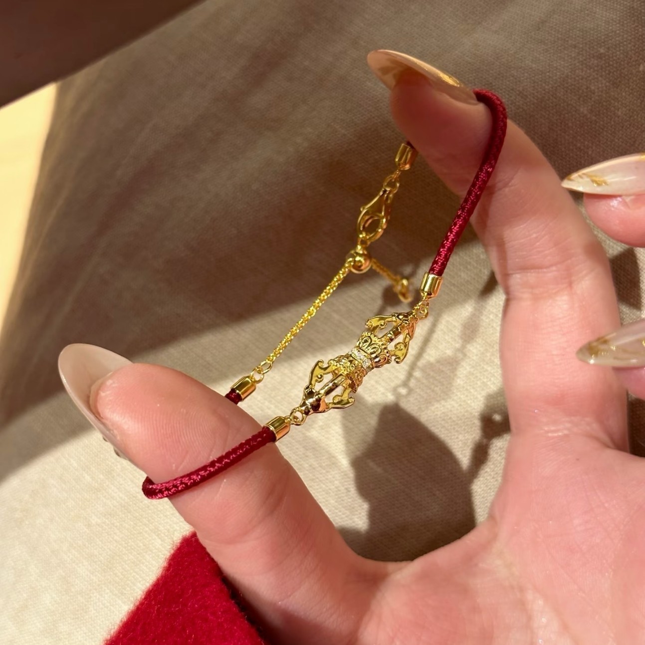 纯银S925新年红金刚杵红绳手链新中式轻奢高级感精致百搭手饰显白