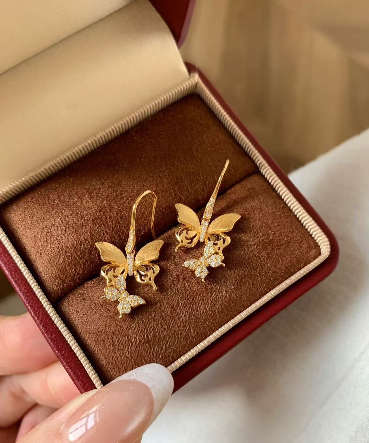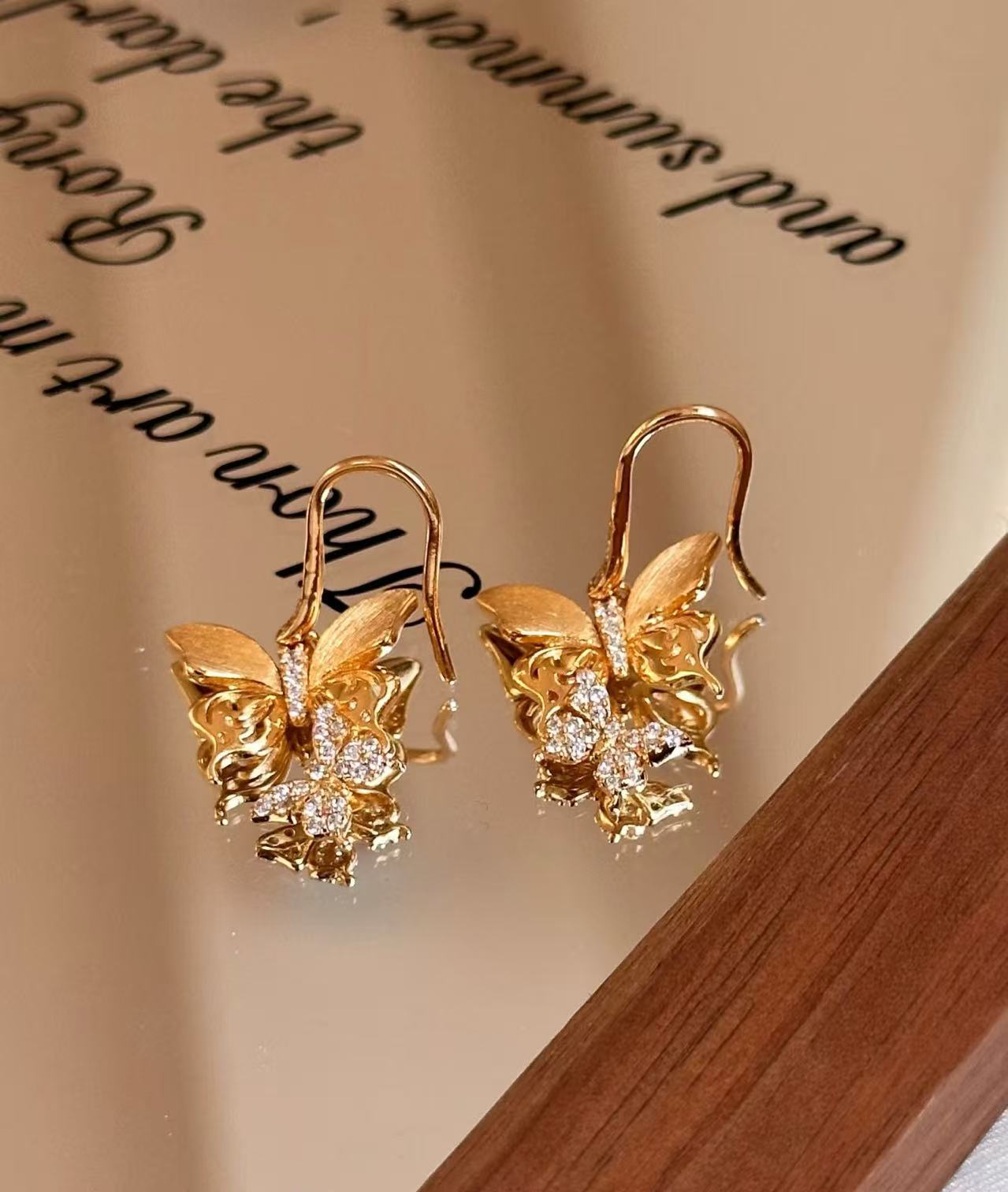纯银S925拉丝工艺蝴蝶耳环轻奢复古小众设计精致百搭气质新款耳饰