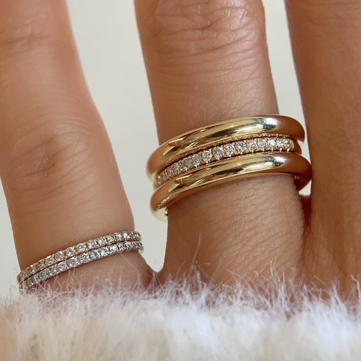 意大利中古拉丝轻奢高级感珠宝925纯银高碳钻排戒叠戴王戒指新款