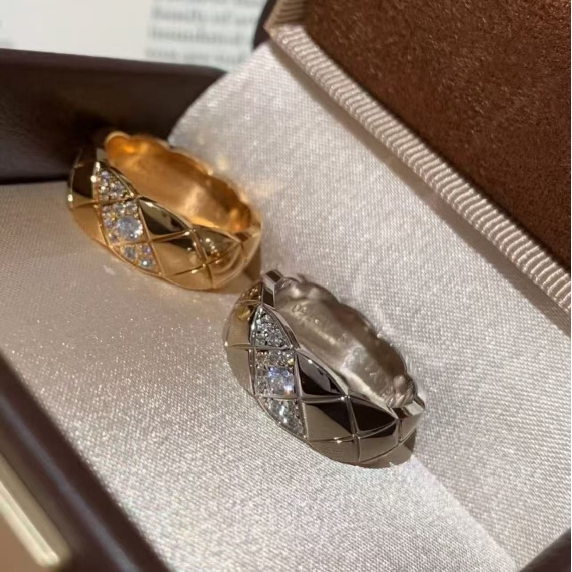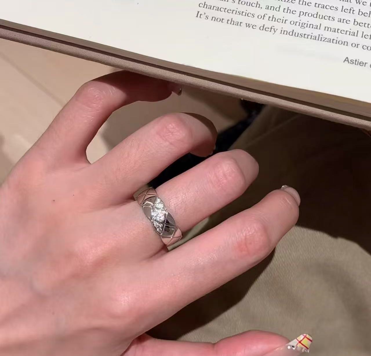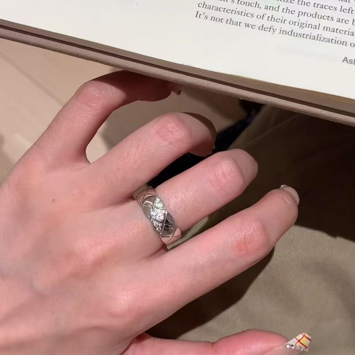 纯银S925小香风菱格高碳钻戒指小众设计重工菱格闪耀高级轻奢百搭