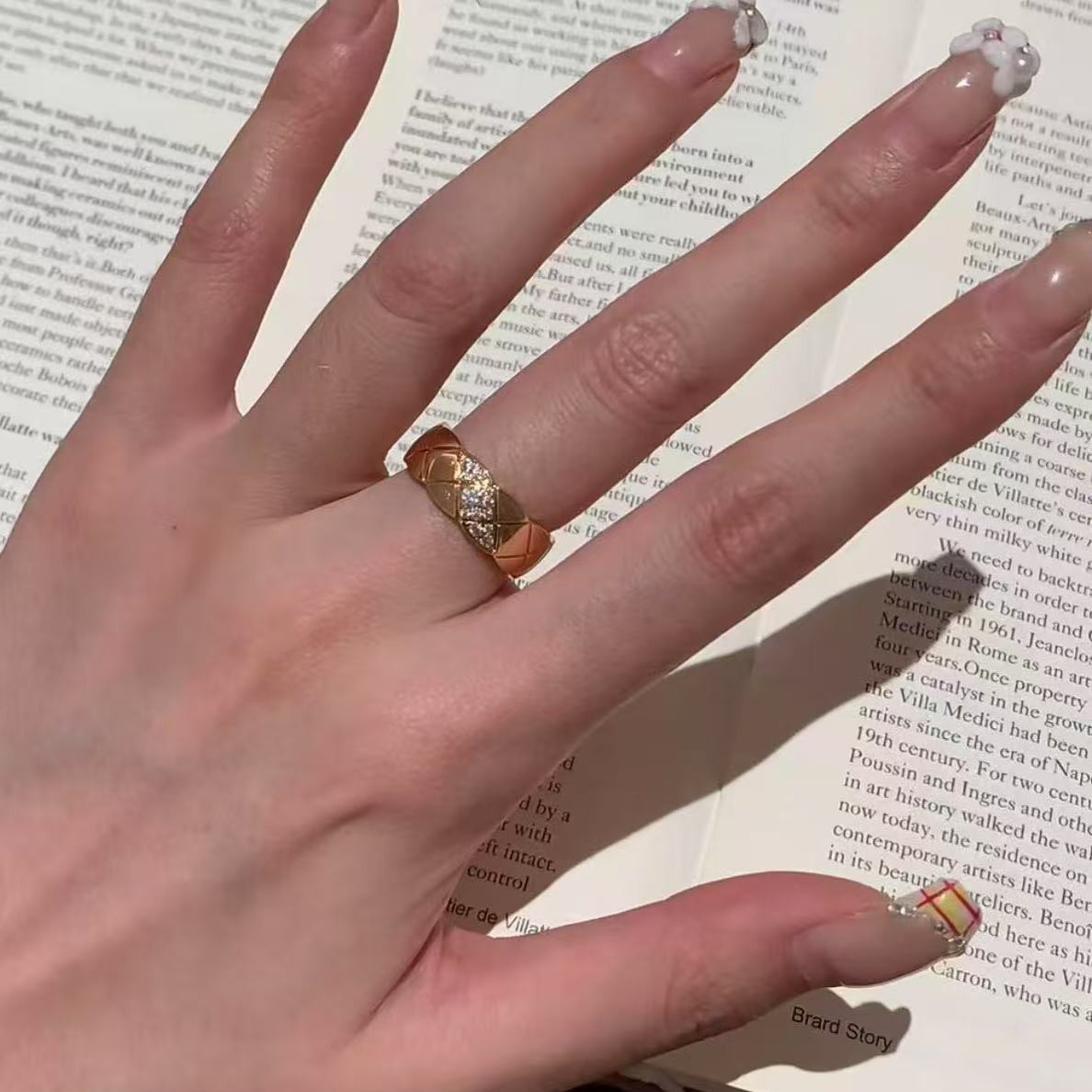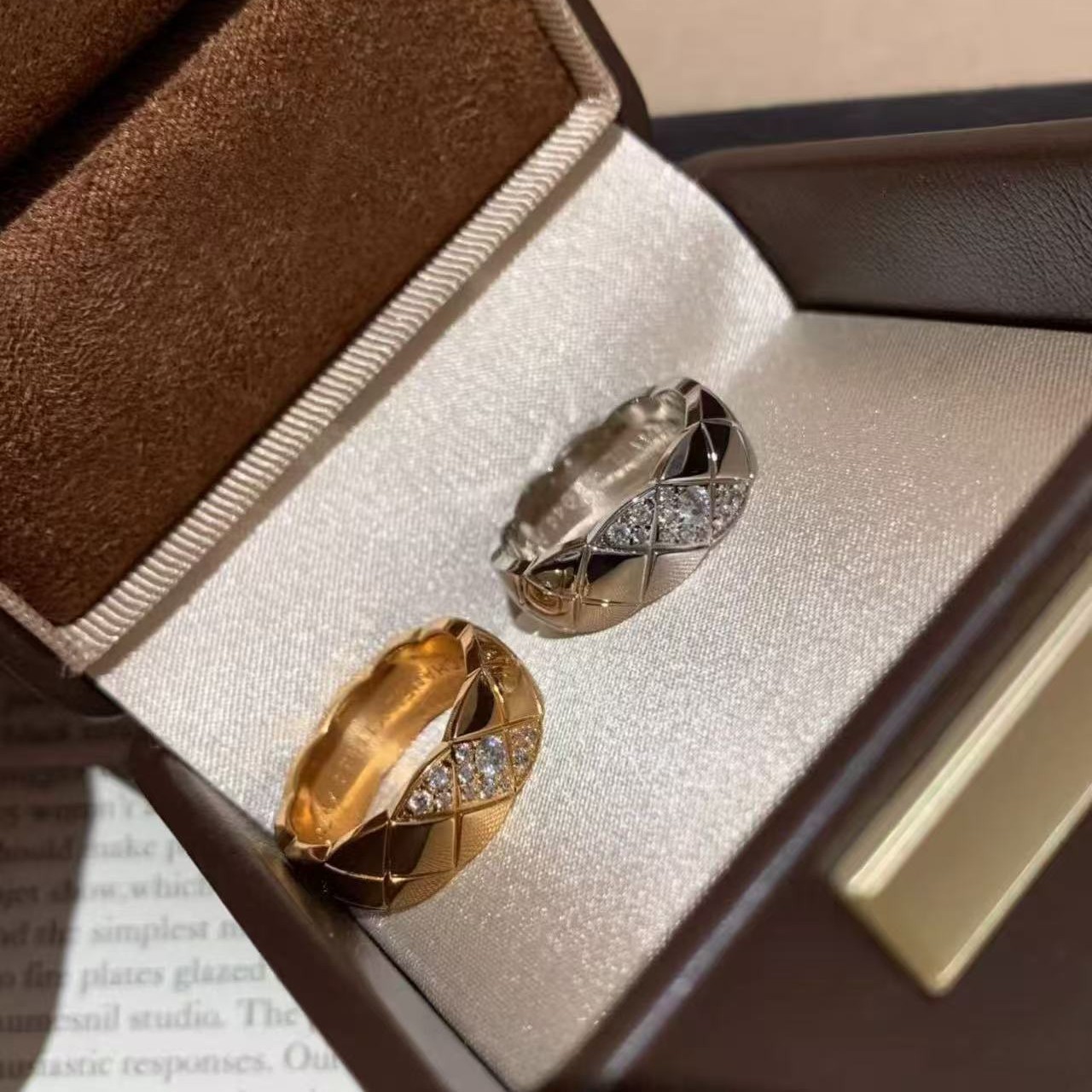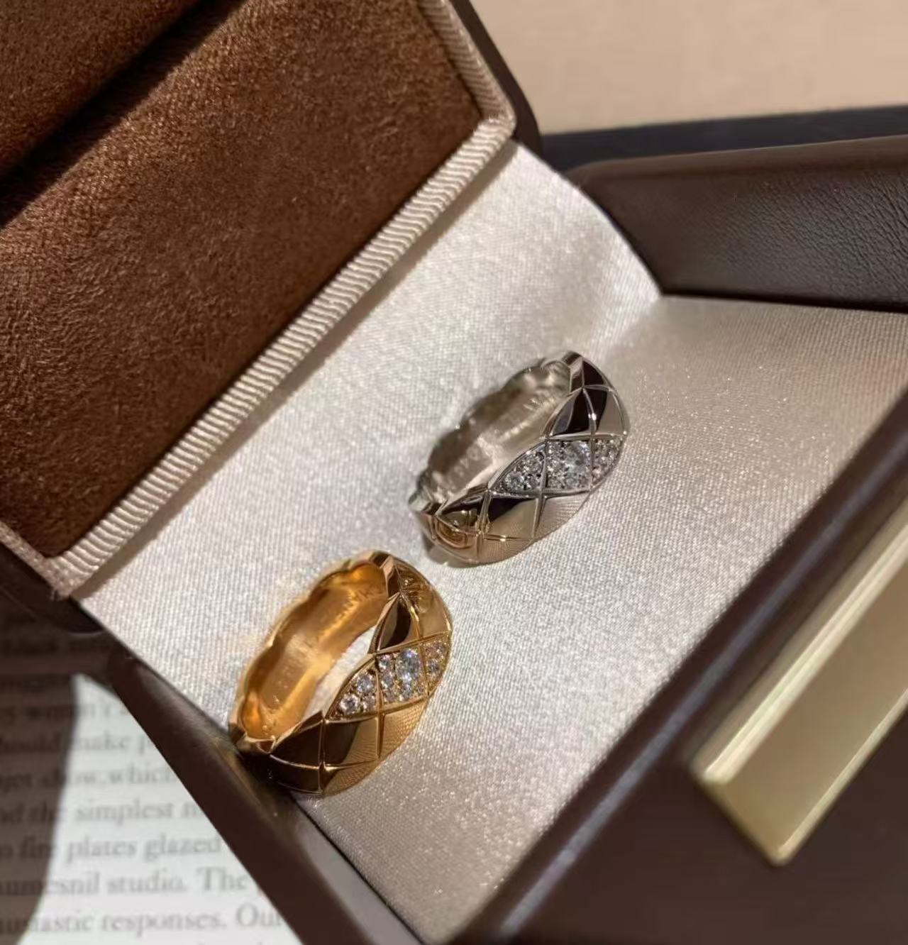 纯银S925小香风菱格高碳钻戒指小众设计重工菱格闪耀高级轻奢百搭