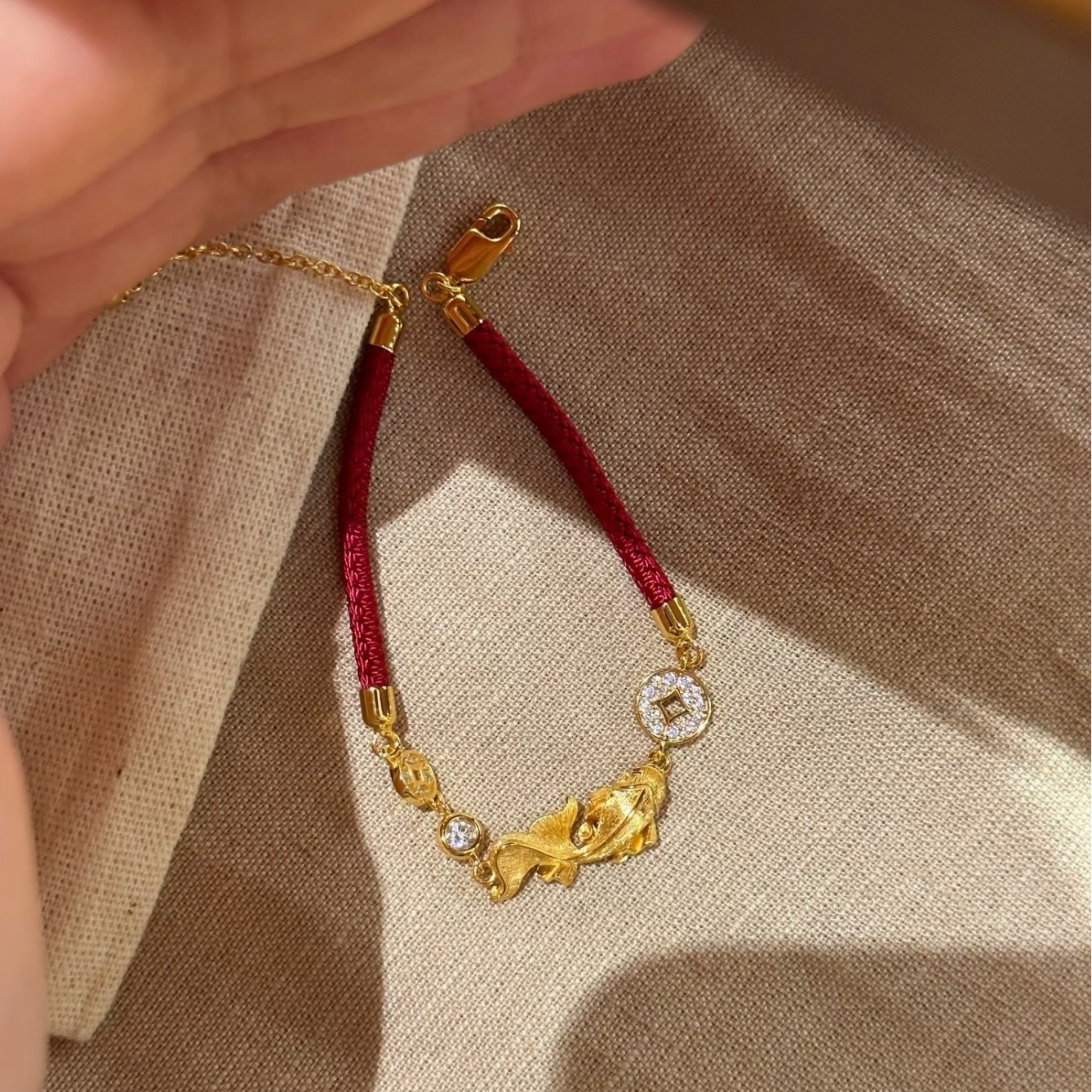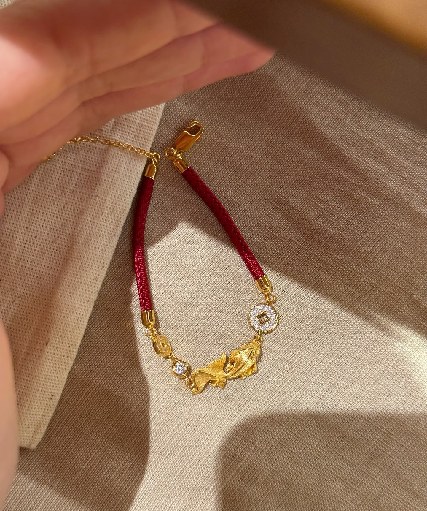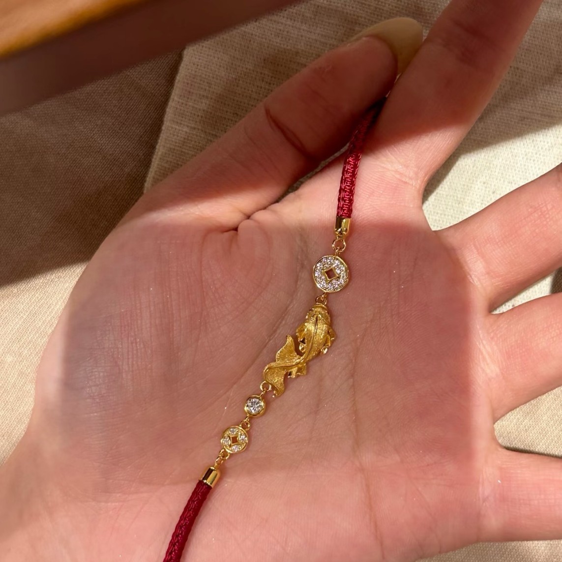 纯银S925拉丝工艺红绳小锦鲤金币手链福禄时尚精致高级感气质手链