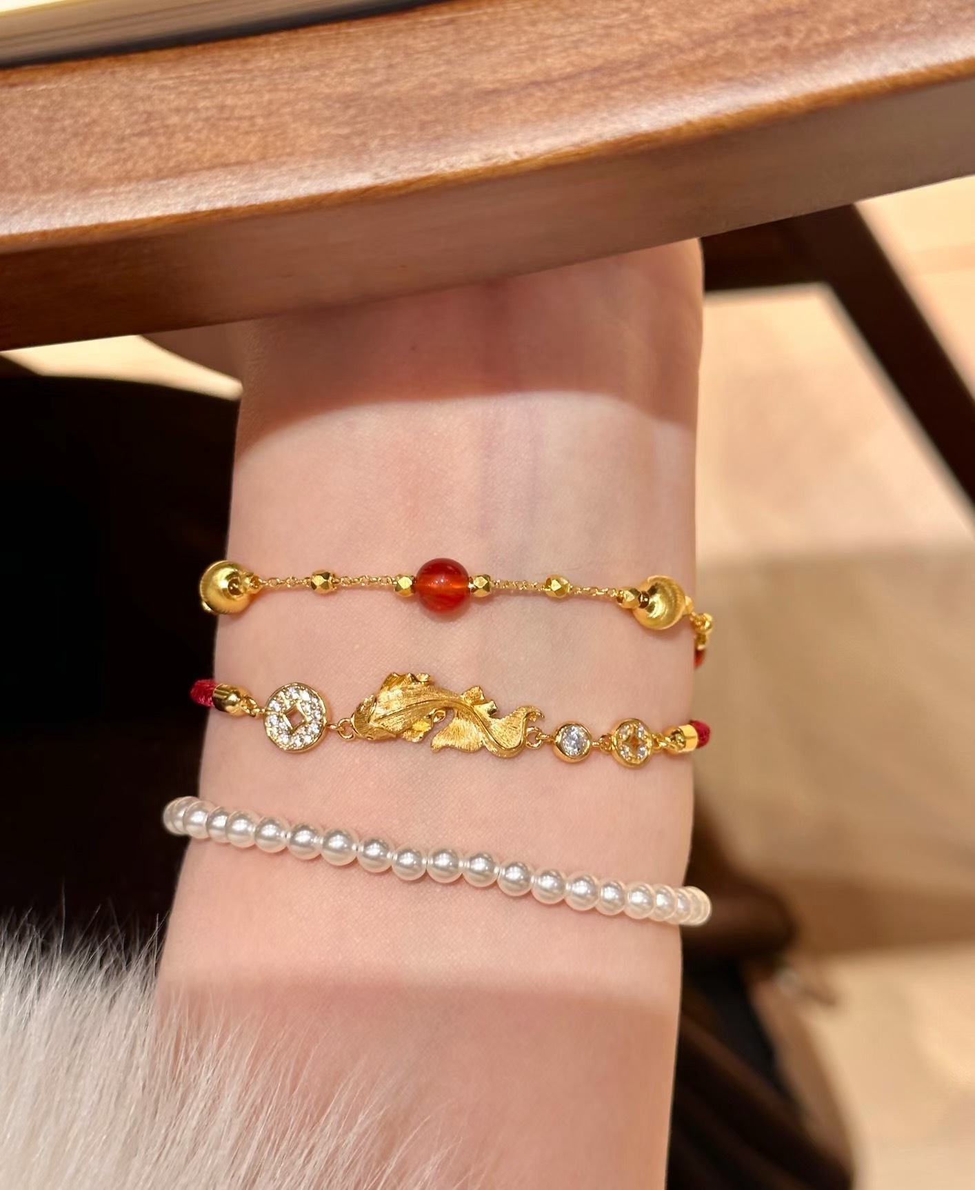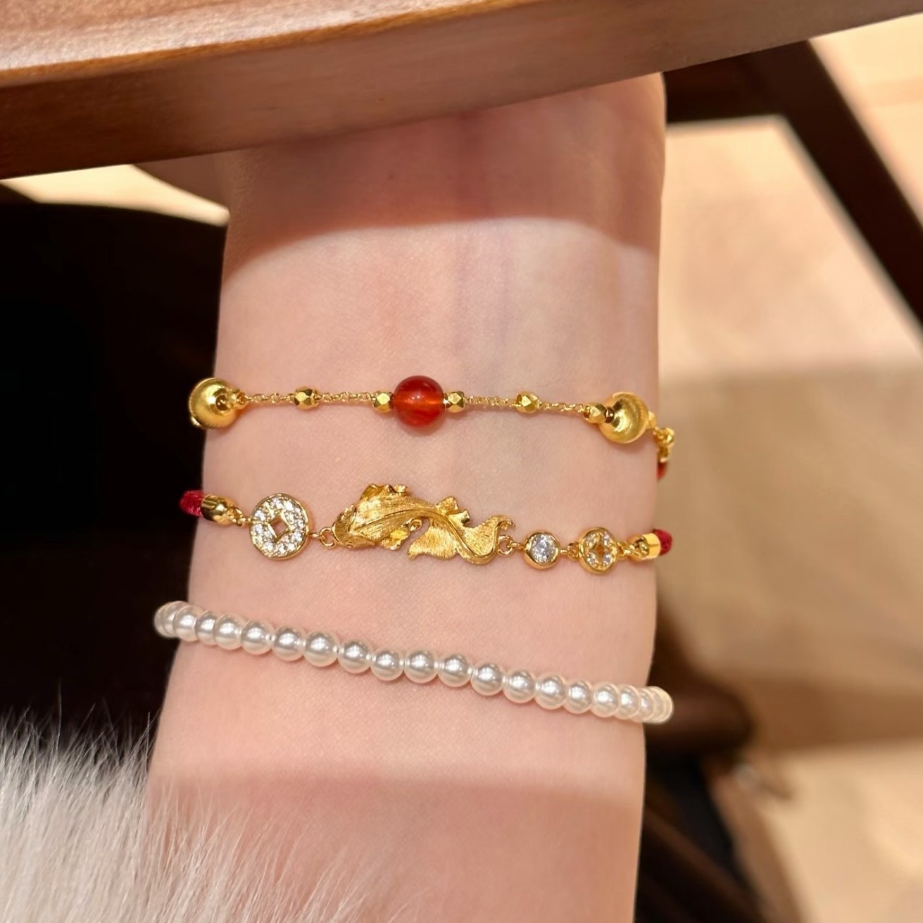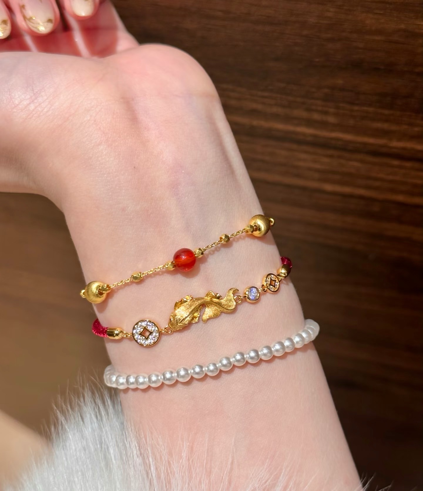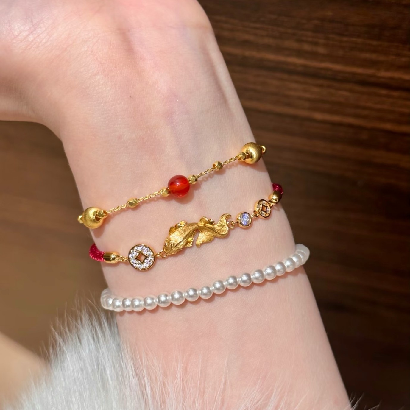 纯银S925拉丝工艺红绳小锦鲤金币手链福禄时尚精致高级感气质手链