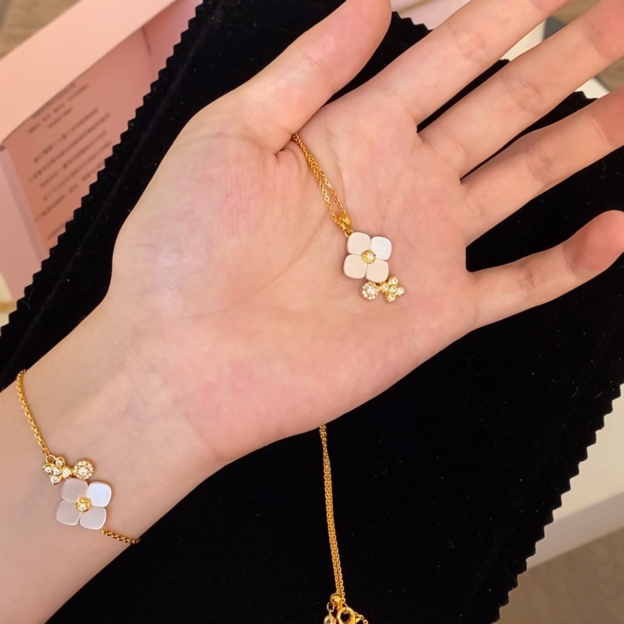 纯银s925龙心同款蝴蝶兰白贝项链手链耳环套装轻奢高级感气质优雅