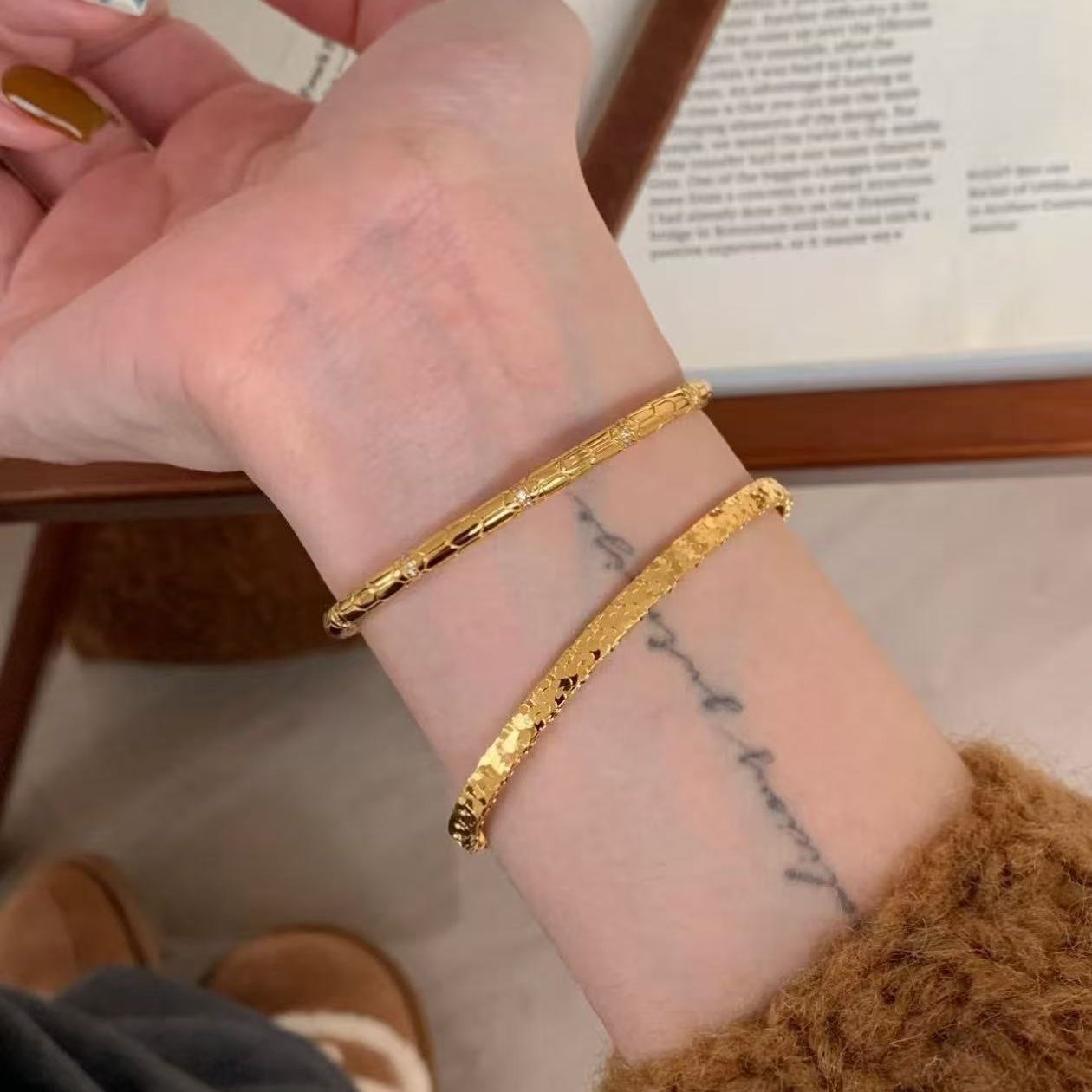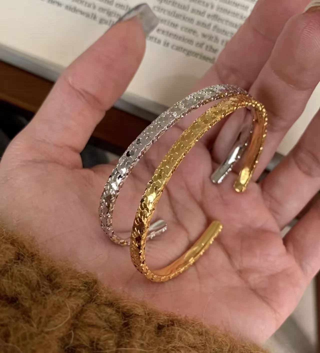 纯银S925CNC工艺碎冰冰金龙麟开口手镯轻奢高级精致百搭气质手饰