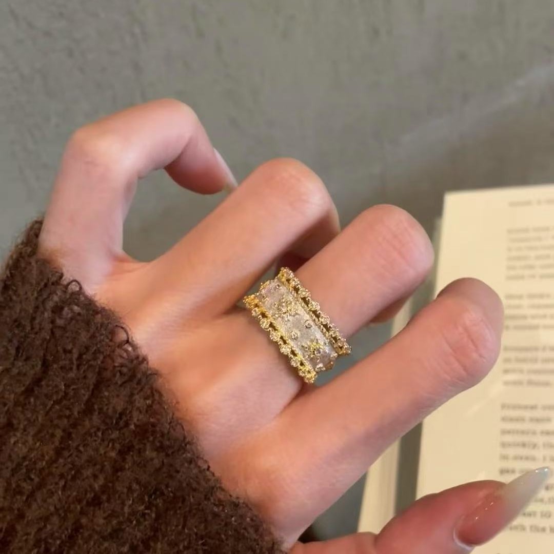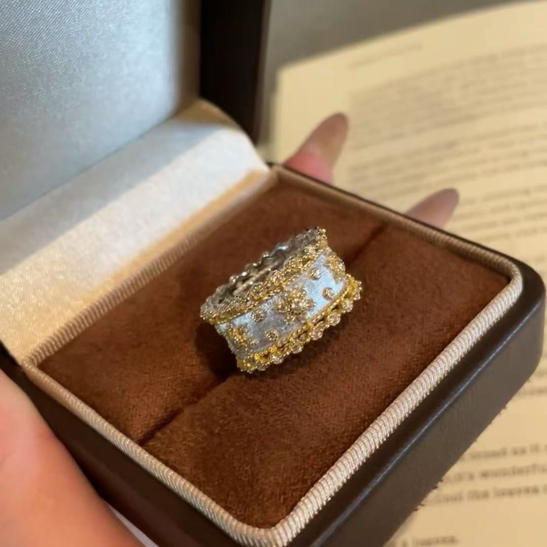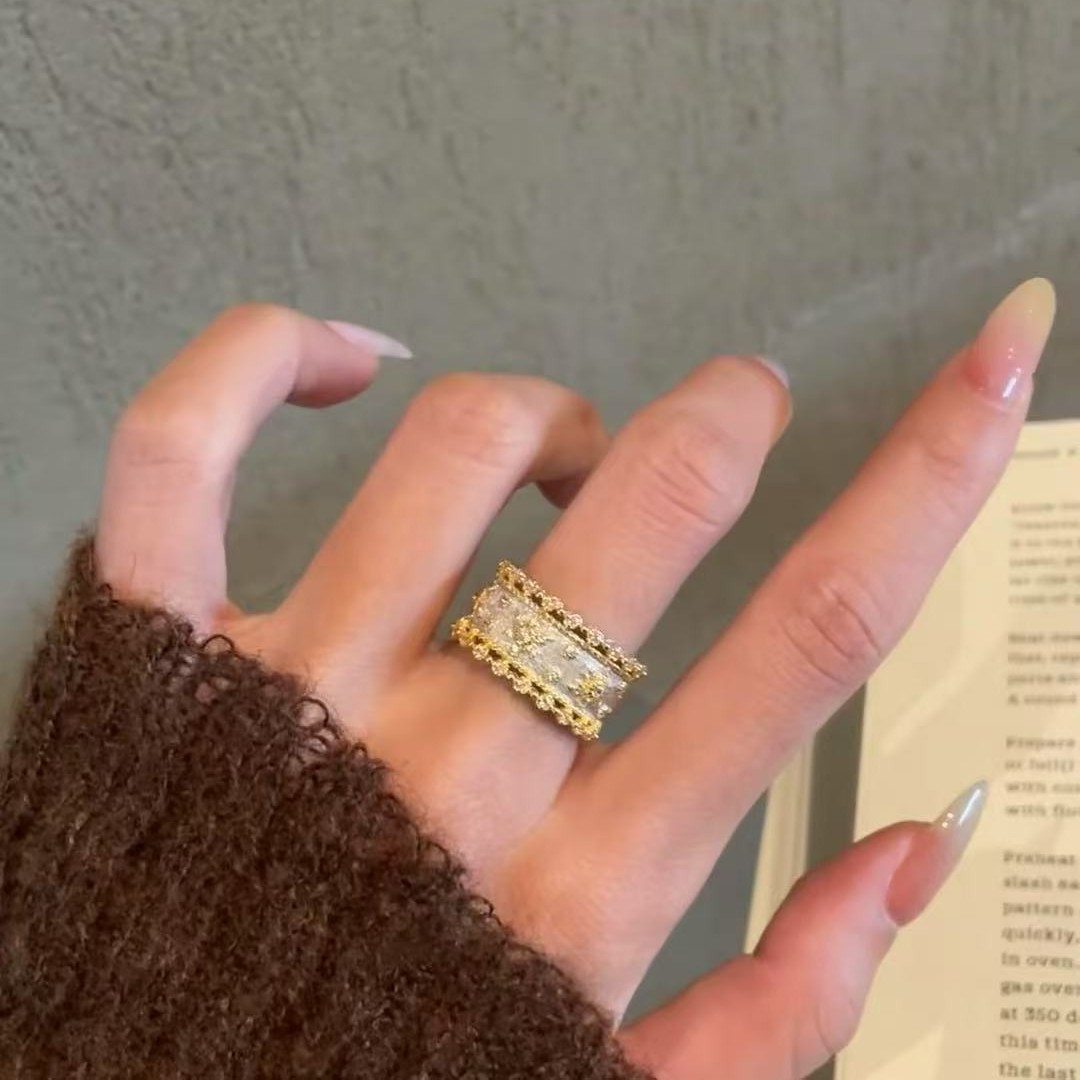 拉丝工艺分色电镀四叶草戒指精致轻奢高级感小众百搭