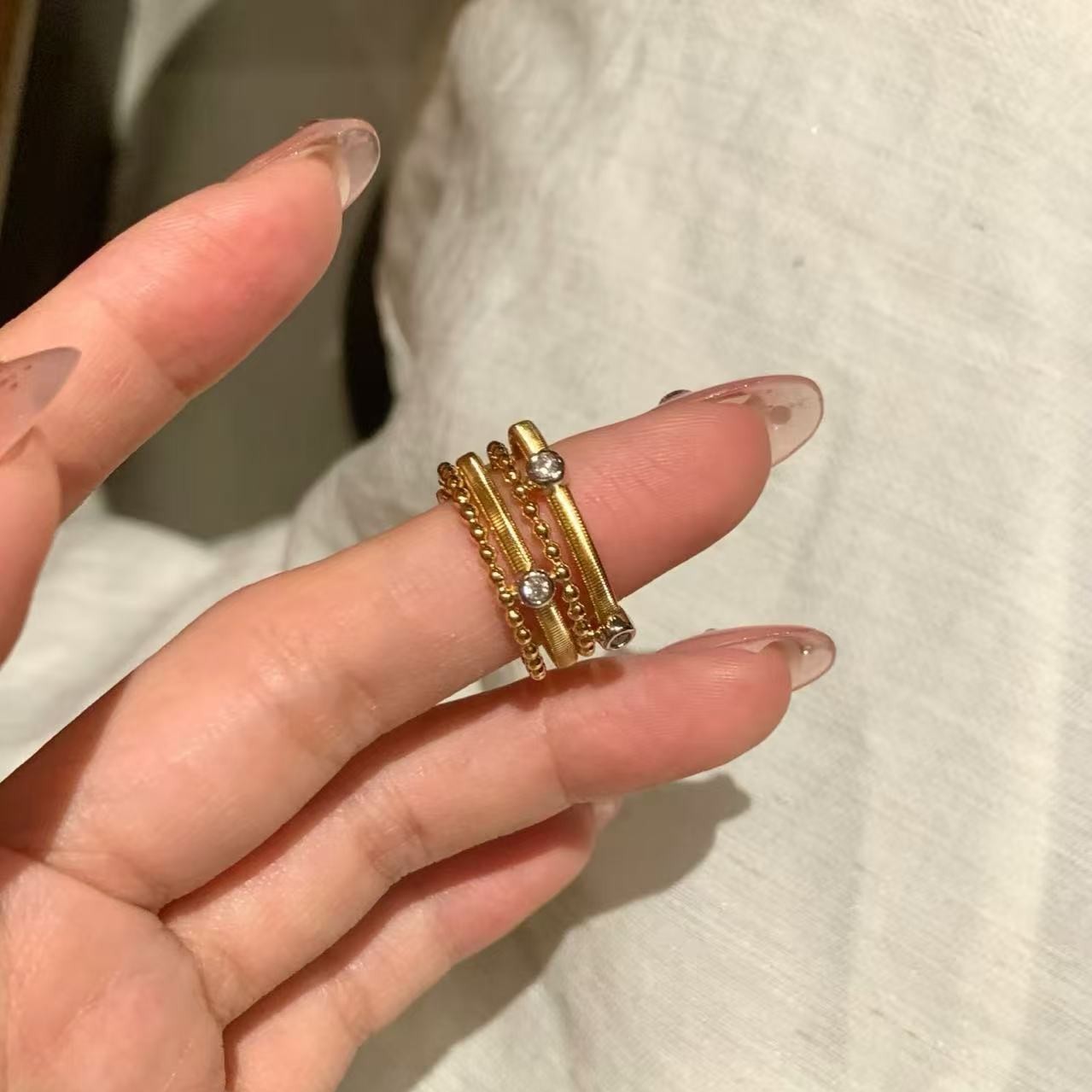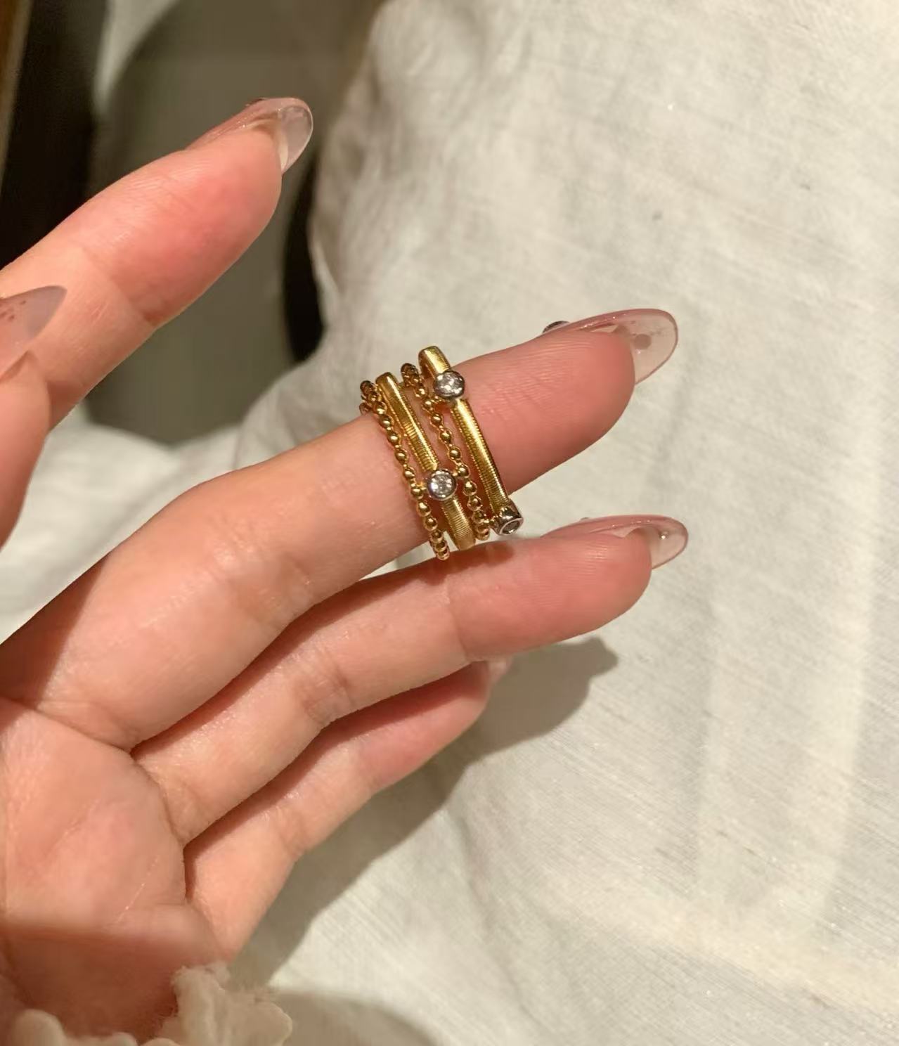 纯银S925意大利精工多层叠带复古高级感气质重工轻奢小众设计指环