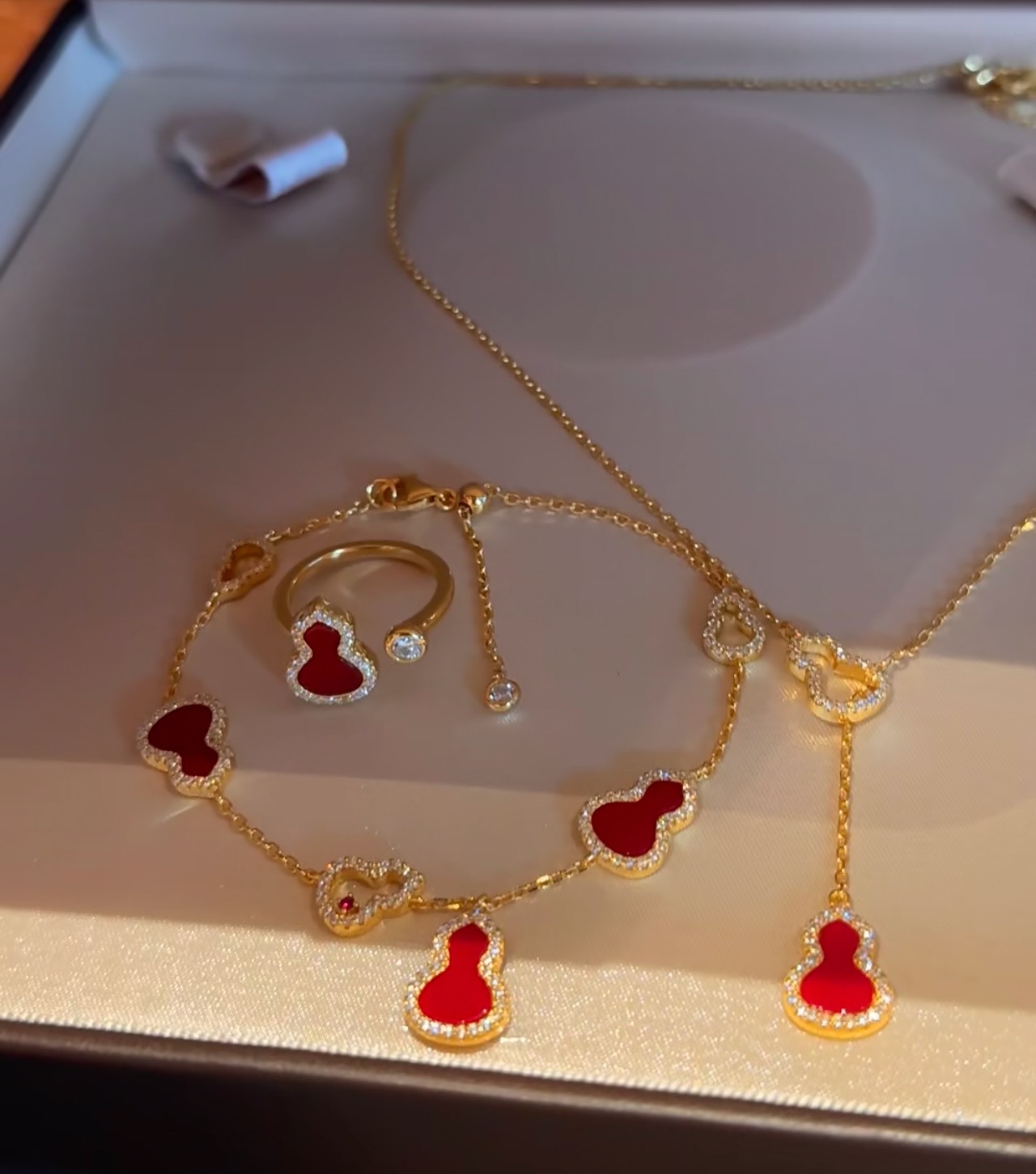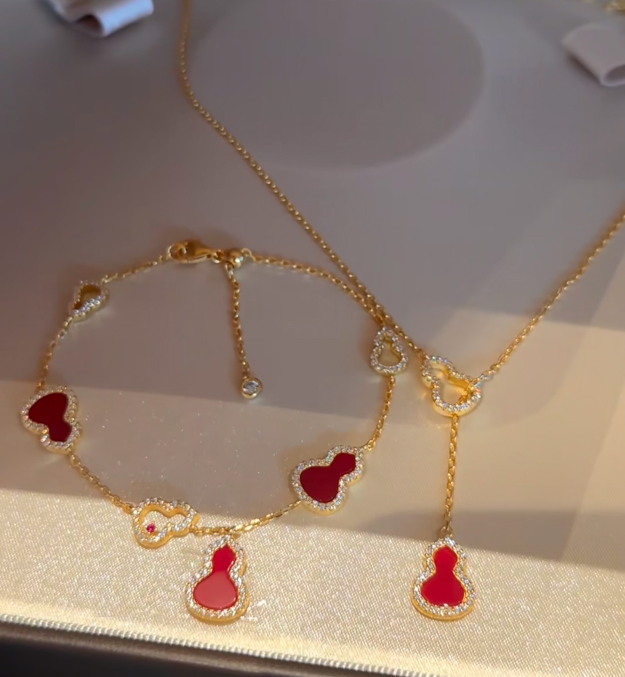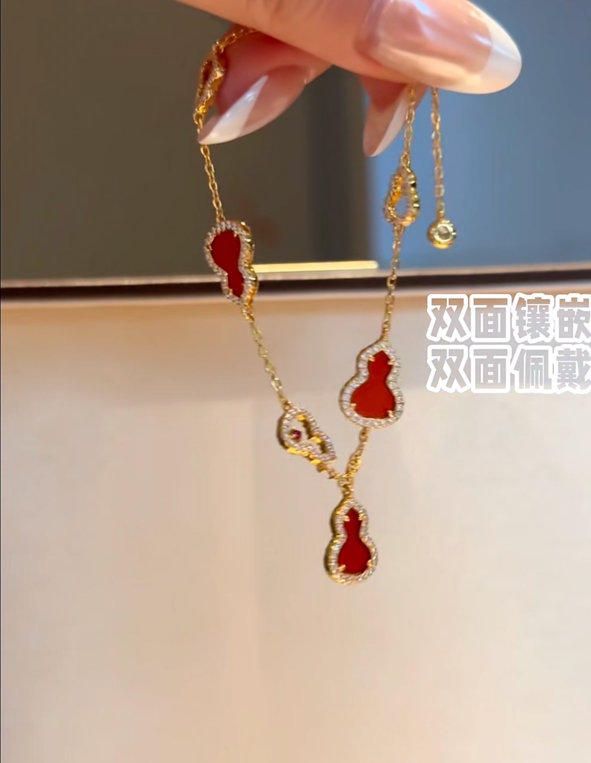 纯银S925天然红玉髓双面佩戴手链项链套装轻奢精致高级感显白配饰